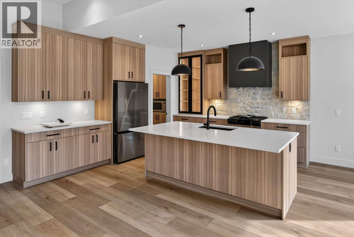 *** For more information, please click Brochure button. *** Welcome to 2125 Montenegro Drive—an exceptionally designed walk-out home in Kirschner Mountain, one of Kelowna’s emerging hillside communities surrounded by nature and scenic trails. Built by Stability Management and move-in ready, this brand-new residence blends warm, modern design with thoughtful functionality. The main level is bright and open, anchored by a beautifully curated kitchen with natural wood cabinetry, quartz countertops, oversized island, gas range, and a full-height stone backsplash. Matte black accents and custom detailing add contrast, while large windows bring in natural light. The living area is centred around a gas fireplace with herringbone tile interior and wood mantle. With 4 bedrooms and 4 bathrooms across 2,928 sq ft, the layout offers excellent flexibility. The primary suite features a spa-inspired ensuite with freestanding tub and glass shower. The lower level includes an additional bedroom, bathroom, and functional living space; plus a 1-bedroom legal suite with private entrance, luxurious finishes, separate laundry, heating, and A/C. Complete with a bright double garage, forced air heating, and central air, this home offers modern comfort just minutes from schools, parks, golf, UBCO, and the airport. GST applicable. (id:6769)
