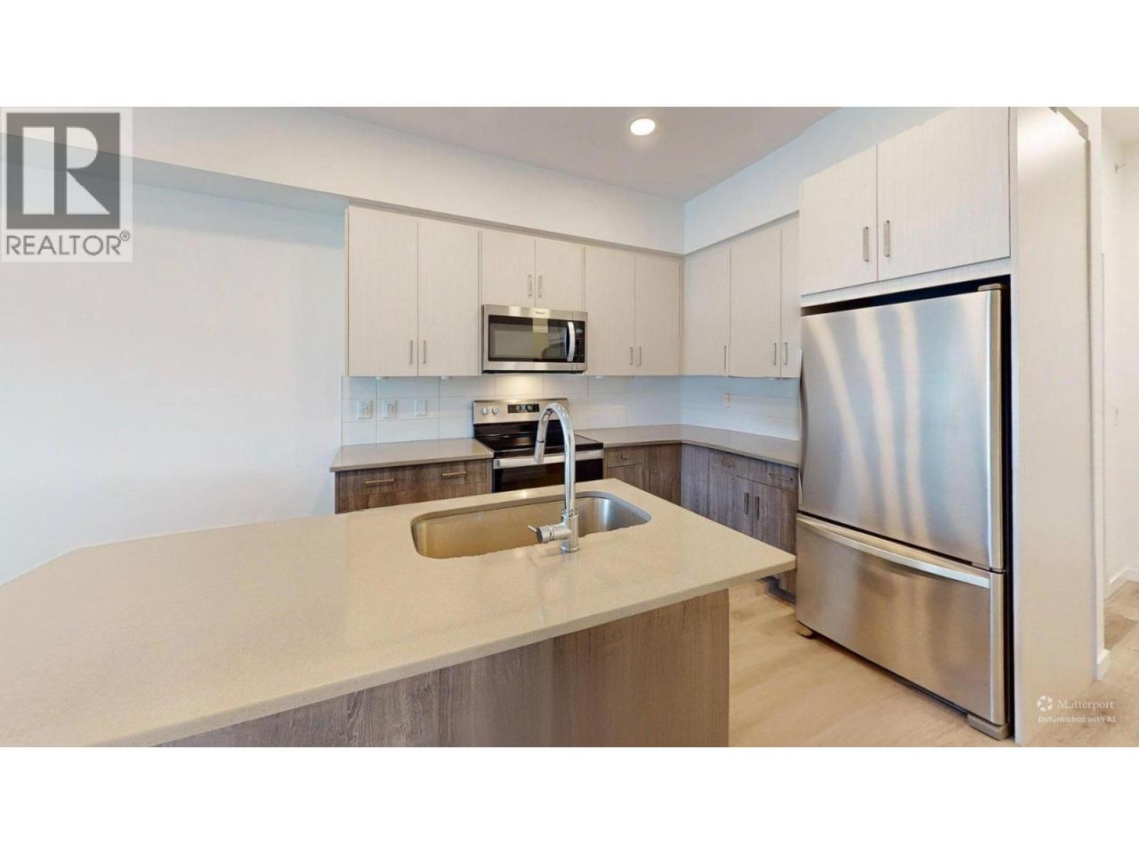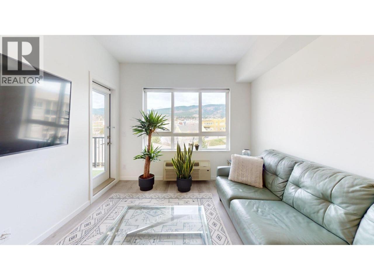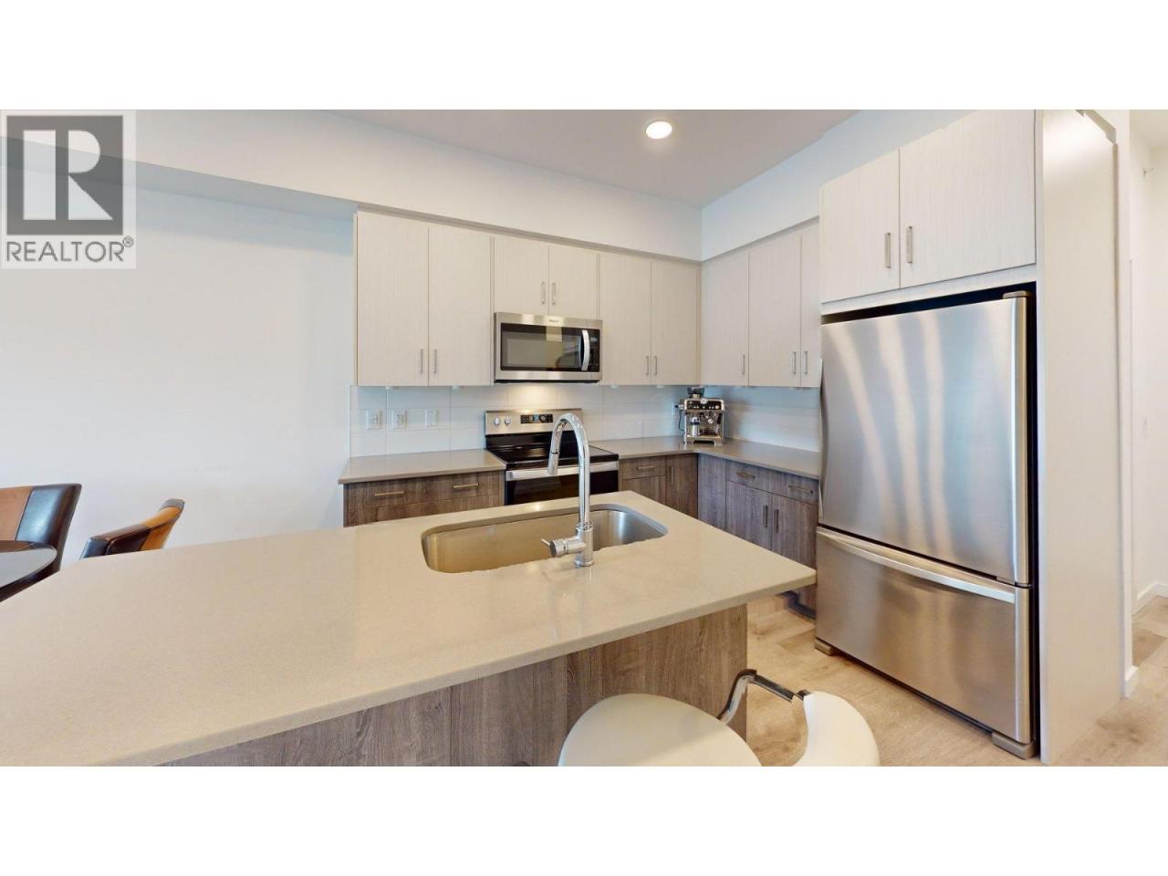 Top-floor living with stunning mountain views. Home 421 has an amazing floorplan, 1 bedroom plus a den, and large windows bringing the outside in. The kitchen offers sleek cabinetry, stainless steel appliances and a functional island--perfect for entertaining. The spacious bedroom provides a cozy retreat, while the contemporary bathroom and clean finishes throughout give the home a fresh, like new feel. Centro is a newer (2021) freehold building just a short walk to Okanagan Lake! The complex has two elevators, plus access to premium amenities including a fitness room, meeting room, and guest suite—perfect for both everyday living and hosting. Pet lovers will appreciate the rare flexibility: 2 pets allowed with no size restrictions for dogs. Located in a highly walkable neighbourhood with parks, transit, and recreation at your doorstep , this is Okanagan lifestyle at its best—ideal for homeowners, investors, or those seeking low-maintenance living in a vibrant community. Quick Occupancy Possible! (id:6769)