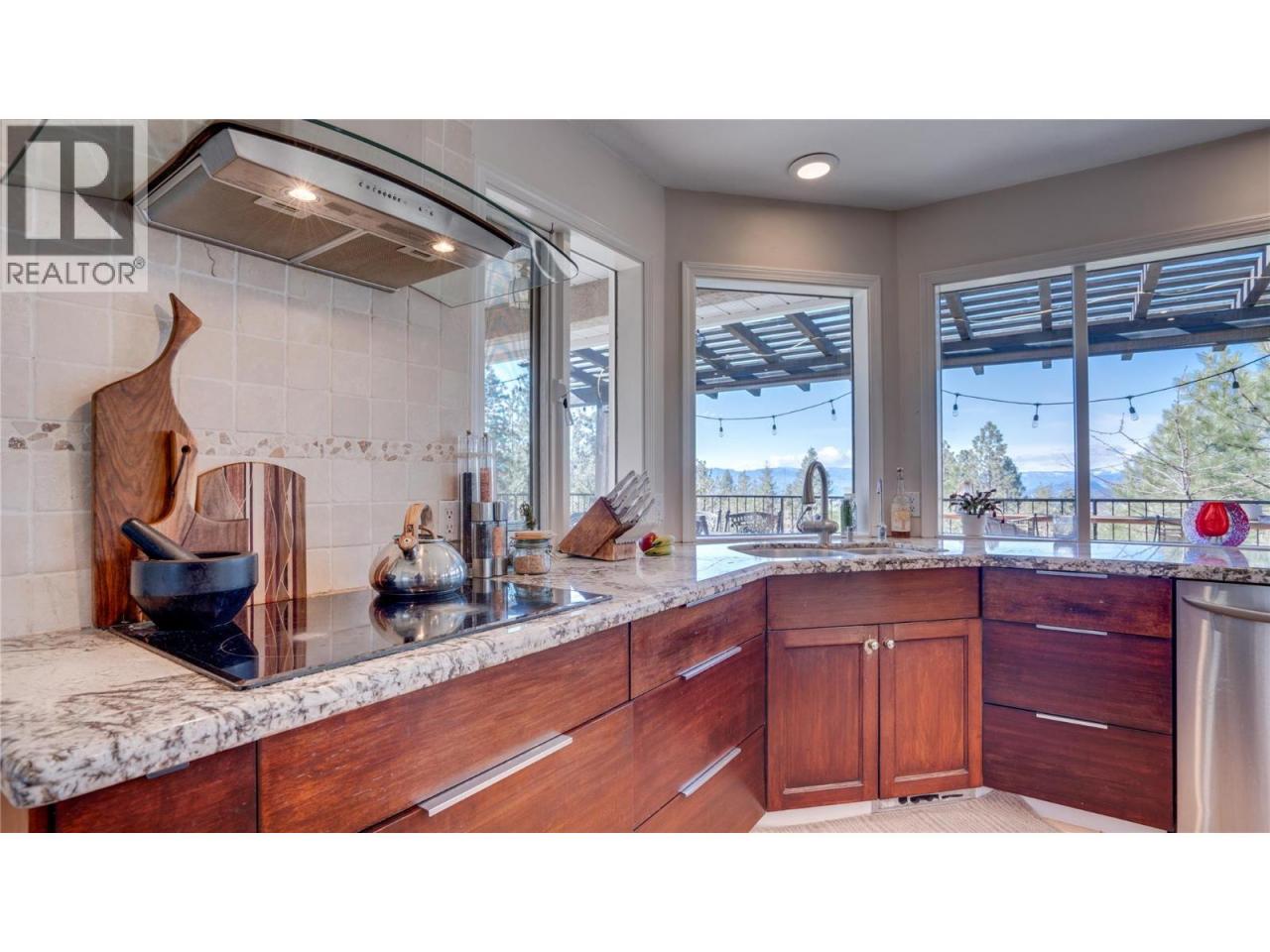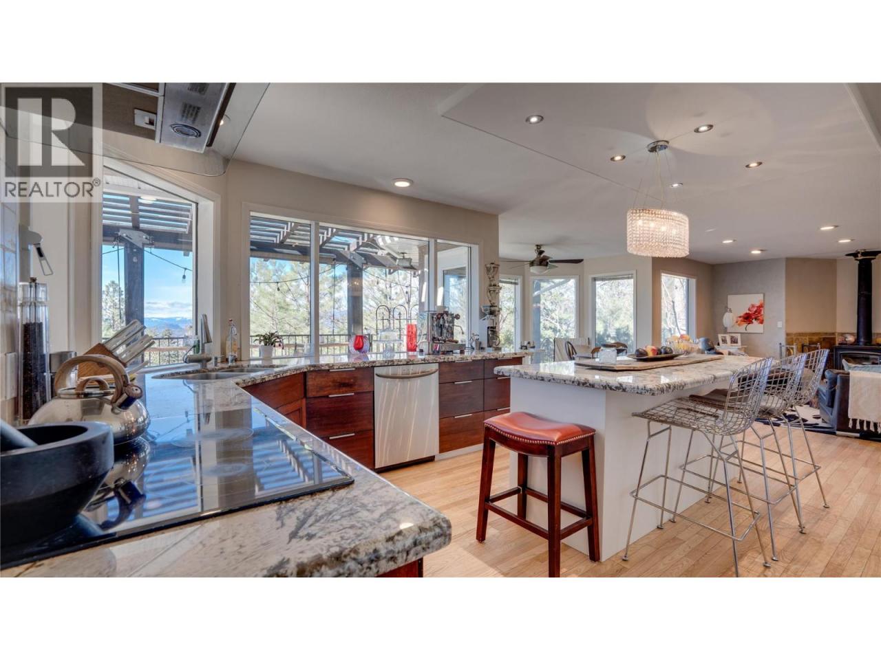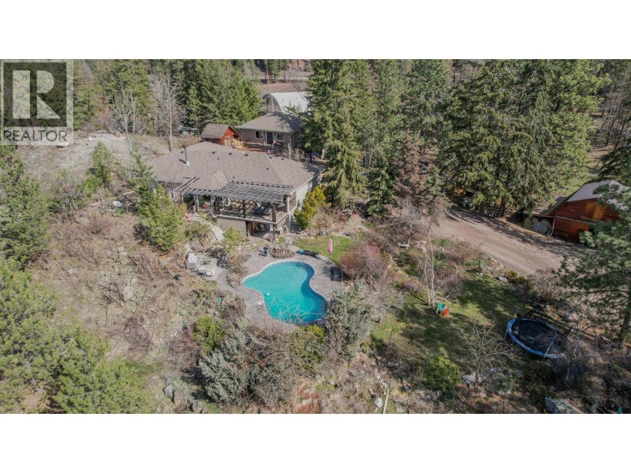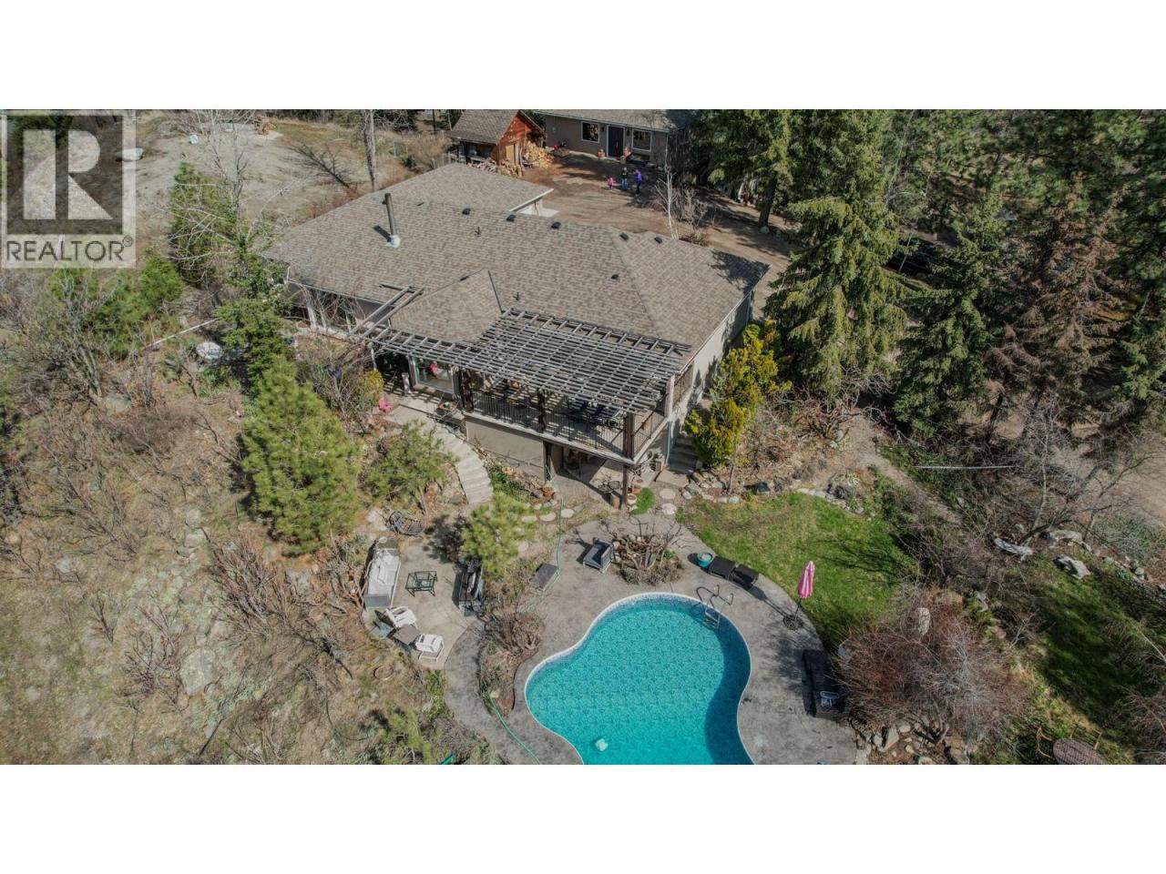 10.499 Acres in Ellison area of Kelowna. Private Acreage Living with Excellent Infrastructure & Shop Space in a executive neighbourhood with supreme views of the Okanagan valley and Lakes while still being private. The property features three producing drilled wells for reliable water supply. An excellent horse property set up with fenced pasture and paddocks and a heated automatic Ritchie water bowl near the barn which has hay storage and a tack room. Hay barn has lean too storage and room to put in stalls. There is a gate out the back and you can ride for miles right from your property on to the riding trails up Batta or Postill. You can drive right up to James Lake. The shop is fully serviced with power and in-floor heat from the boiler system. Above the shop is additional space that could be suited to a variety of uses. There is walk-in freezer in the garage with wired in backup generator that can be included in the sale if desired. Stunning Kafeo in ground pool – with new vinyl liner in 2025. The home is beautifully updated with a gleaming quartz island and updated cabinetry. Hardwood flooring leads up to the floor to ceiling windows and the partially covered view deck. The master bedroom and ensuite are magazine worthy with a dual sinks soaker tuba nd a walk in closet. 2 additional bedrooms a full bath and mudroom round off the mainfloor. Downstairs would be easily suited with a separate entrance to a living room bedroom and full bathroom. Not in the ALR. (id:6769)