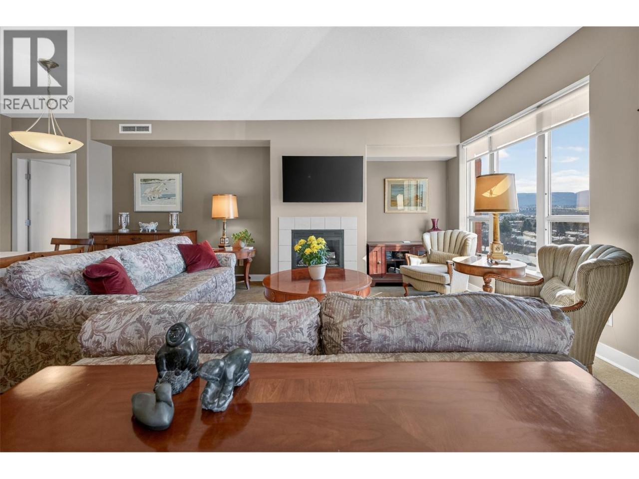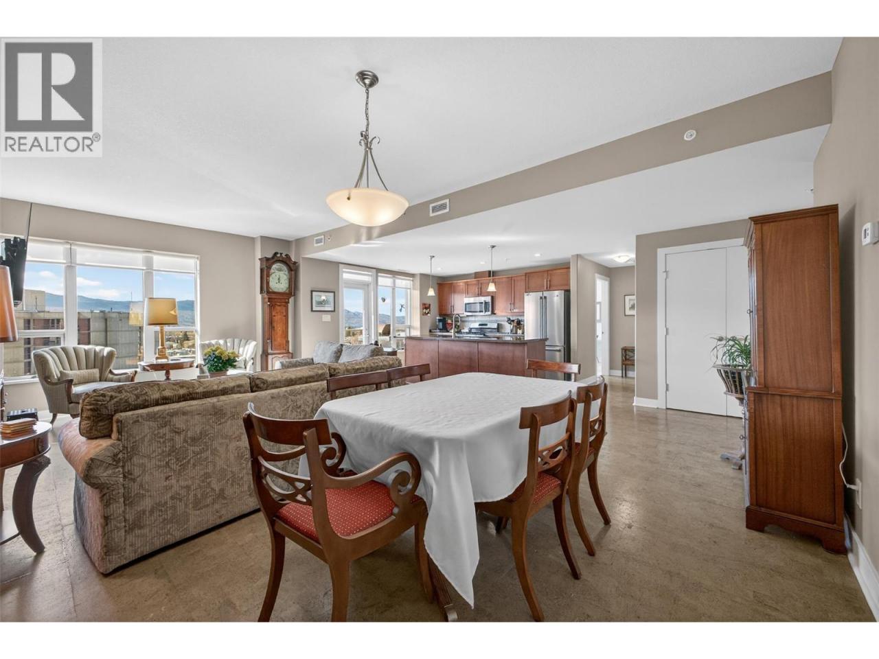 There’s nothing quite like the high standard of condo living that Centuria offers in the heart of Kelowna! This 11th-floor corner suite captures a 180-degree southwest view over the lake, city, and mountains, with natural light pouring in from multiple exposures throughout the day. With nearly 1,500 sq ft, the layout is open and functional, featuring 2 bedrooms with huge walk-in closets, a functional den, and 2 full bathrooms. The kitchen is designed for everyday ease and entertaining, with granite countertops, a large sit-up island, and newer stainless steel appliances. The main living area features cork flooring, with carpet in the bedrooms and tile in the bathrooms for a balanced, comfortable finish. Located just minutes to all the amenities one needs: a grocery store downstairs, downtown dining, shops and entertainment - everything is within easy reach whether you walk, bike, or drive. Residents enjoy access to an outdoor pool, hot tub, sauna, and a fitness facility. This home also includes two secured underground parking stalls and the building is pet friendly! (id:6769)