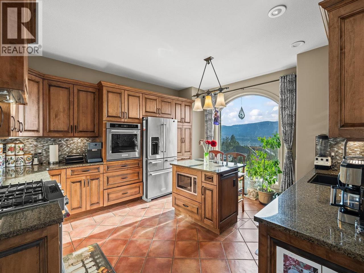 Welcome to 2376 Nahanni Court, an ideal home in the sought-after Dilworth Mountain Community of the Okanagan. This beautiful, custom-built estate blends classic Tuscan architectural style with contemporary luxury. It features 6 large bedrooms and 4 bathrooms, including a gourmet kitchen with high-end stainless steel appliances, a gas range, a built-in oven, custom cabinets, and granite countertops. Vaulted ceilings, skylights, warm hardwood floors, and detailed custom finishes create an elegant ambiance. The primary suite provides a quiet sanctuary with stunning mountain views, a walk-in closet, and a private bath with a distinctive slipper tub. Multiple living areas, such as cozy spaces with gas fireplaces and a full bar, are perfect for entertaining. Outside, enjoy a private backyard oasis with a saltwater pool, a hot tub under the stars, a built-in BBQ station, an apple tree, and plenty of patio space. With easy access to trails, parks, schools, shopping, and the cultural district, this licensed B&B-ready property offers a perfect mix of peaceful living and modern amenities. Discover the timeless luxury of this Okanagan dream home today! (id:6769)
