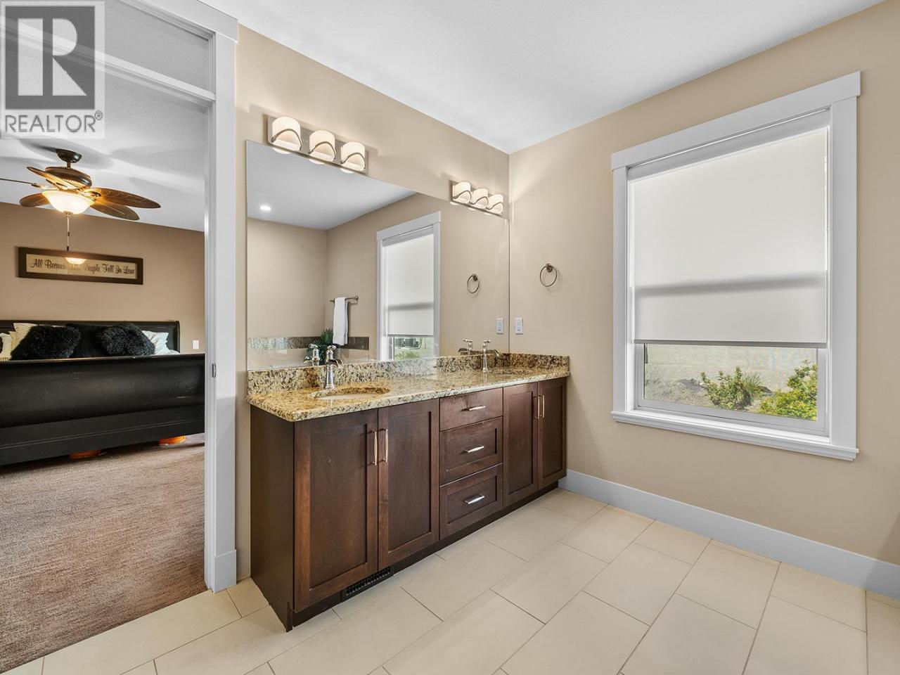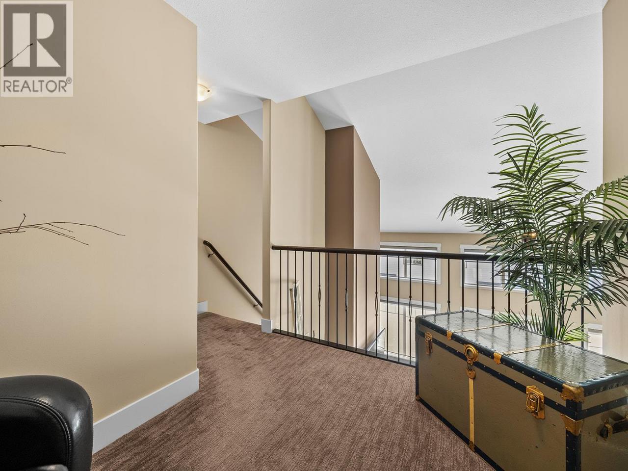 This former show home at Tesoro Arca stands out as one of the largest units in the complex. The RV sized heated garage stretches nearly 50 ft long with 14 ft ceilings, complete with epoxy flooring, a 30 amp RV plug in, sani-dump (a rare feature), RV water hookup, full workshop, bathroom & a mezzanine for an office or man cave (can be removed!). Inside, the home features an elevator servicing all three levels, vaulted ceilings, engineered hardwood flooring & a gas fireplace anchoring the open living space. The deck extends your living area outdoors and is equipped with water & gas hookups, along with wiring for a hot tub. The kitchen offers a wider layout than typically found in the complex, highlighted by an oversized island with bar style seating, soft close cabinetry, granite countertops, stainless steel appliances & a walk in pantry. The main floor also includes a bedroom, full bathroom, and a dedicated laundry room. Upstairs, the spacious primary bedroom is easily accessed by the elevator and features a generous walk in closet and a well appointed ensuite with granite countertops, dual sinks, a water closet, heated floors & a tiled walk in shower. Additional highlights include ample storage throughout, a prepaid lease & no Property Transfer Tax! Wider units like this are rarely available. Own one of the larger homes at Tesoro Arca with space to accommodate a 45 ft RV or boat. Ideally located just minutes from shopping, Two Eagles Golf Course & the shores of Okanagan Lake (id:6769)
