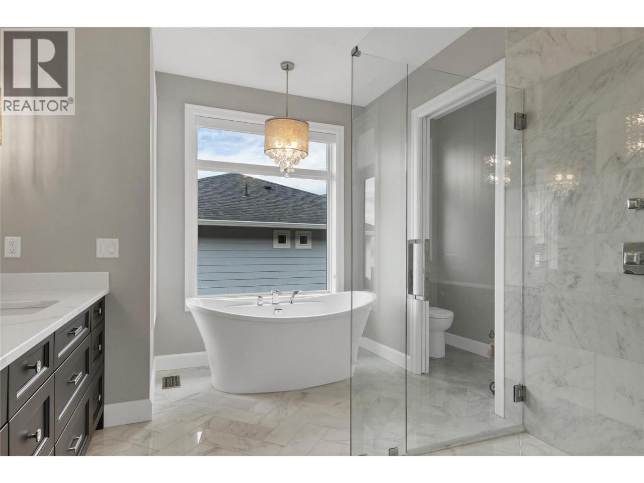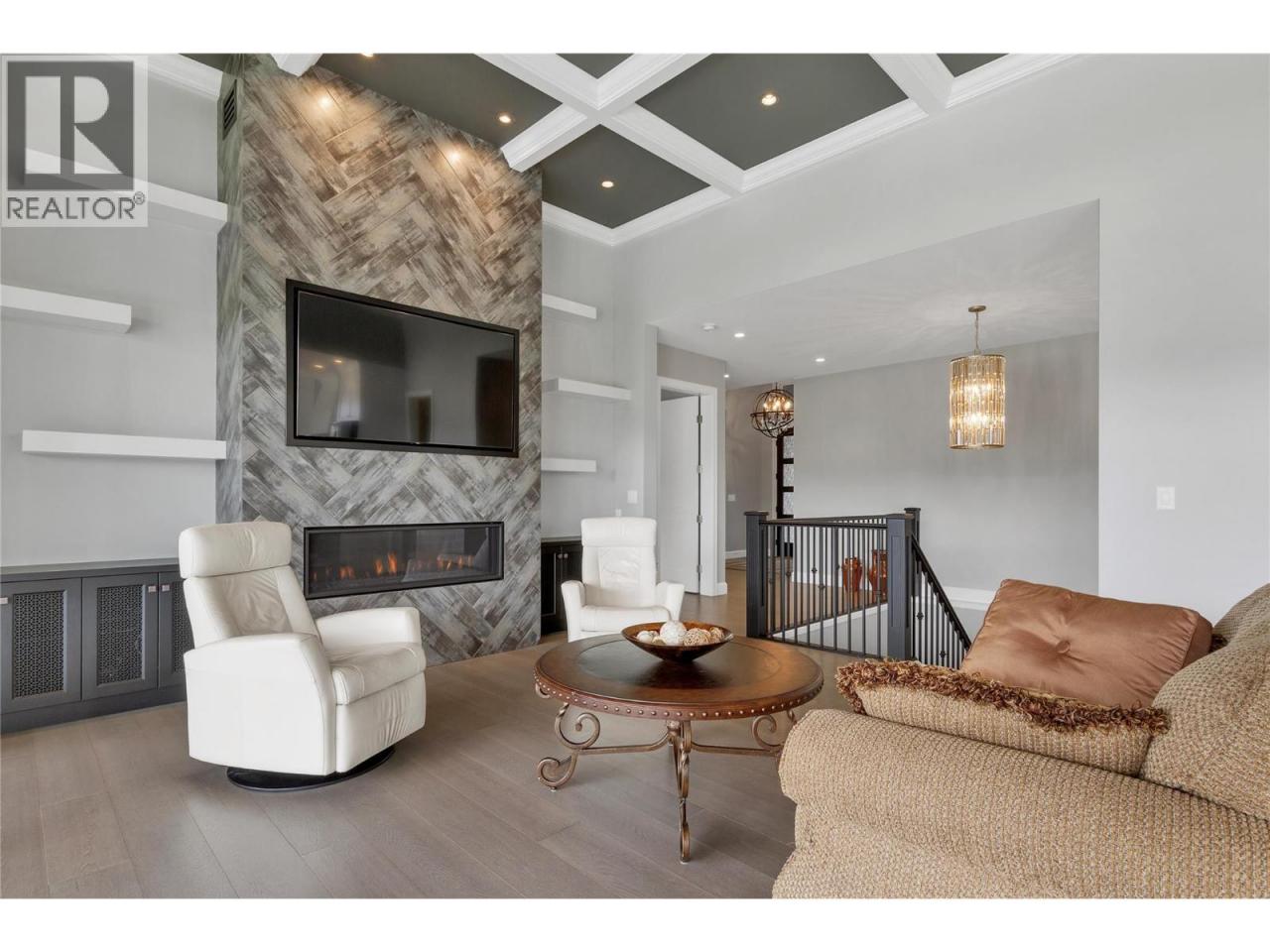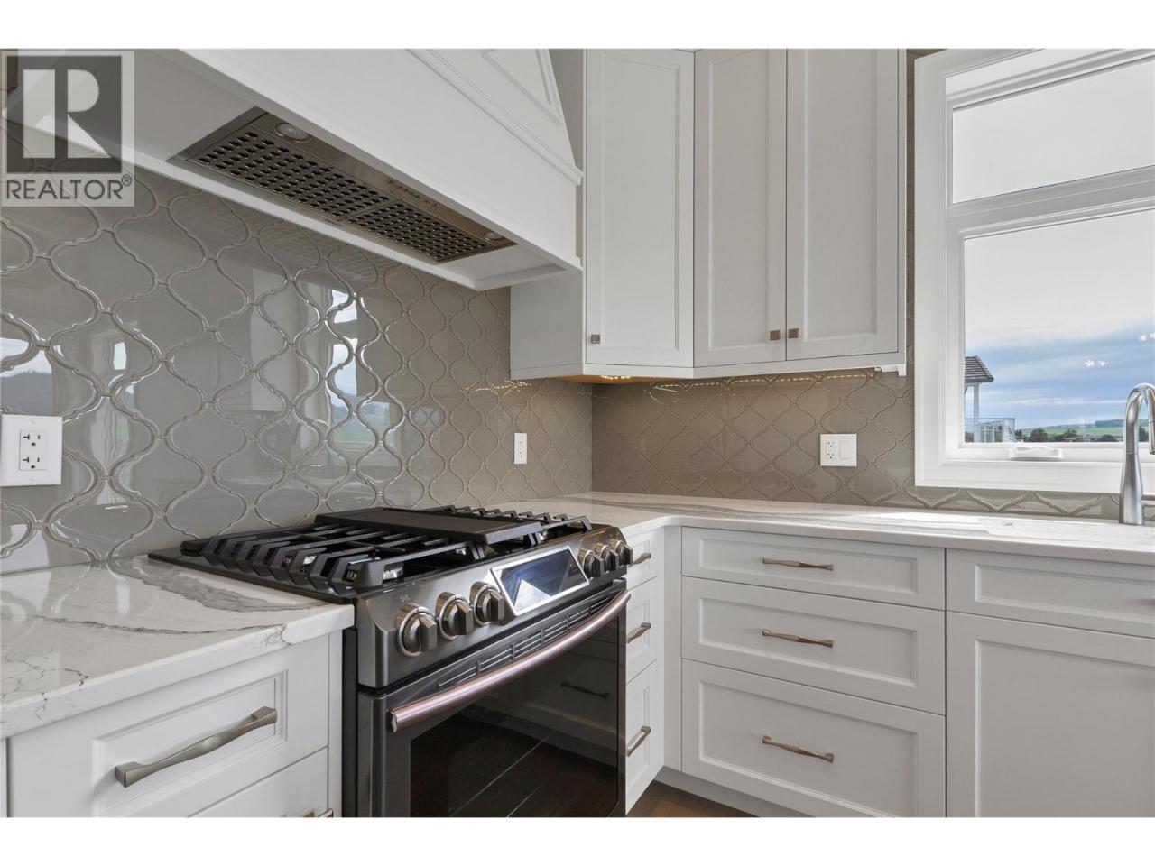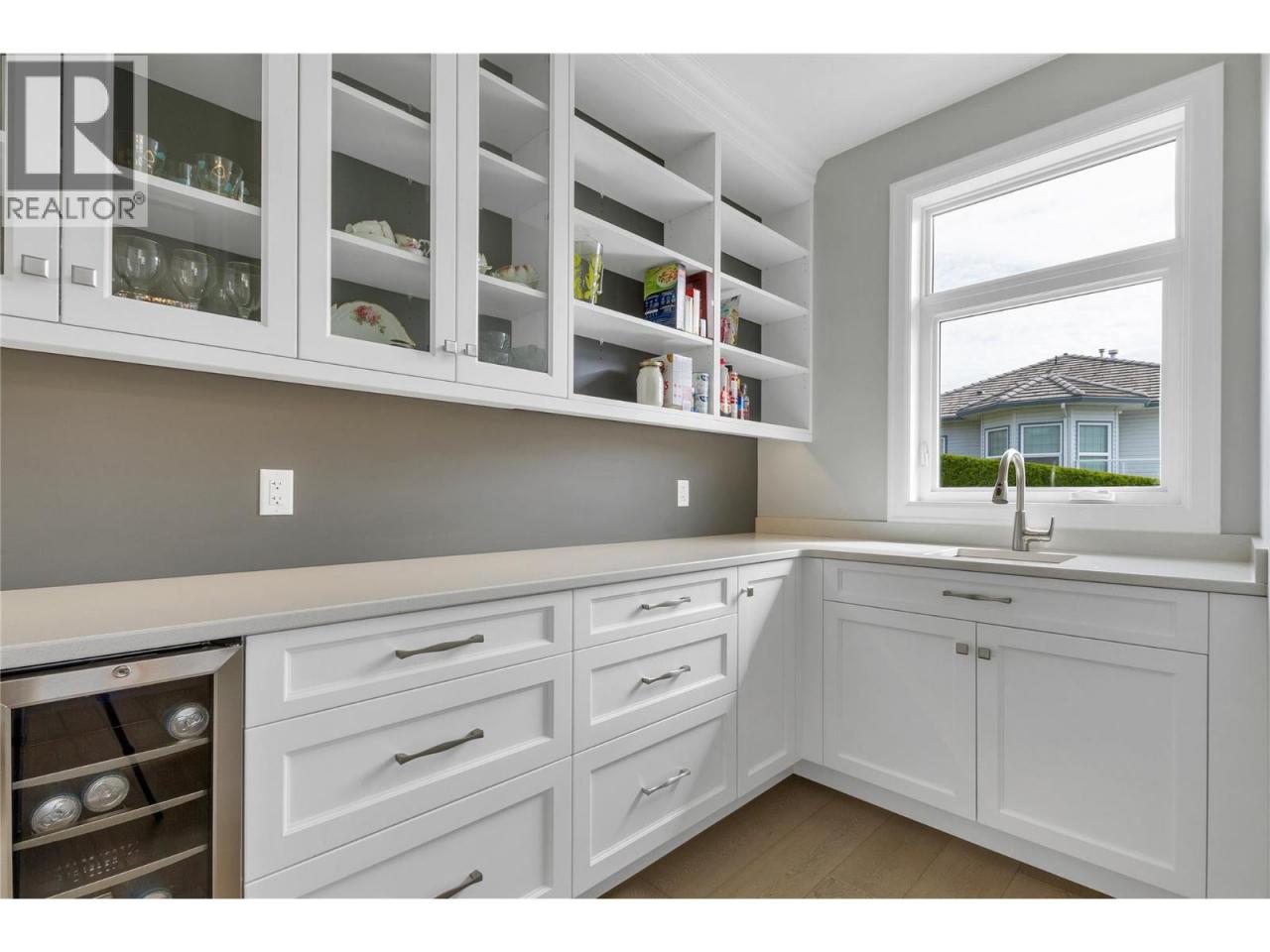 Welcome to a true masterpiece! Situated above the shores of Okanagan Lake in sought-after Lakeridge Estates, this 3700sq/ft, 5 bed Heartwood Homes crafted Rancher w/ walkout basement is sure to please those looking for luxury, practicality, & maintenance-free living. Stepping through 9’ tall double door entrance, you’ll immediately notice extraordinary attention to detail. From the elevated living room ceiling w/ beam detail to the sleek tiled fireplace surround; hand-selected quartz kitchen countertops w/ extra-deep edge; tiling perfection throughout the spa-like ensuite; epoxy finished garage floors; stamped concrete on spacious upper deck; even round handcrafted cabinetry in walk-in closet! It’s not only QUALITY that draws one to this lovely property, it’s also DESIGN, emphasizing easy flow from one living space to the next. Whether entertaining in the welcoming living room, preparing & enjoying meals in the kitchen w/ convenient butler’s pantry & dining room w/ floor-to-ceiling windows, or stepping out through double glass patio doors incorporating your huge covered deck area into the living space, where you can take in scenic lake &valley views. And finally, w/ a large 3 car garage for toy and car storage; EV power; a legal self-contained one-bedroom suite; extra RV parking w/ sewer, water & power; low-maintenance, easy-access yard; & tons of parking space, its all here. Looking for a high-quality, well-appointed, easy living home, this is one for you! (id:6769)