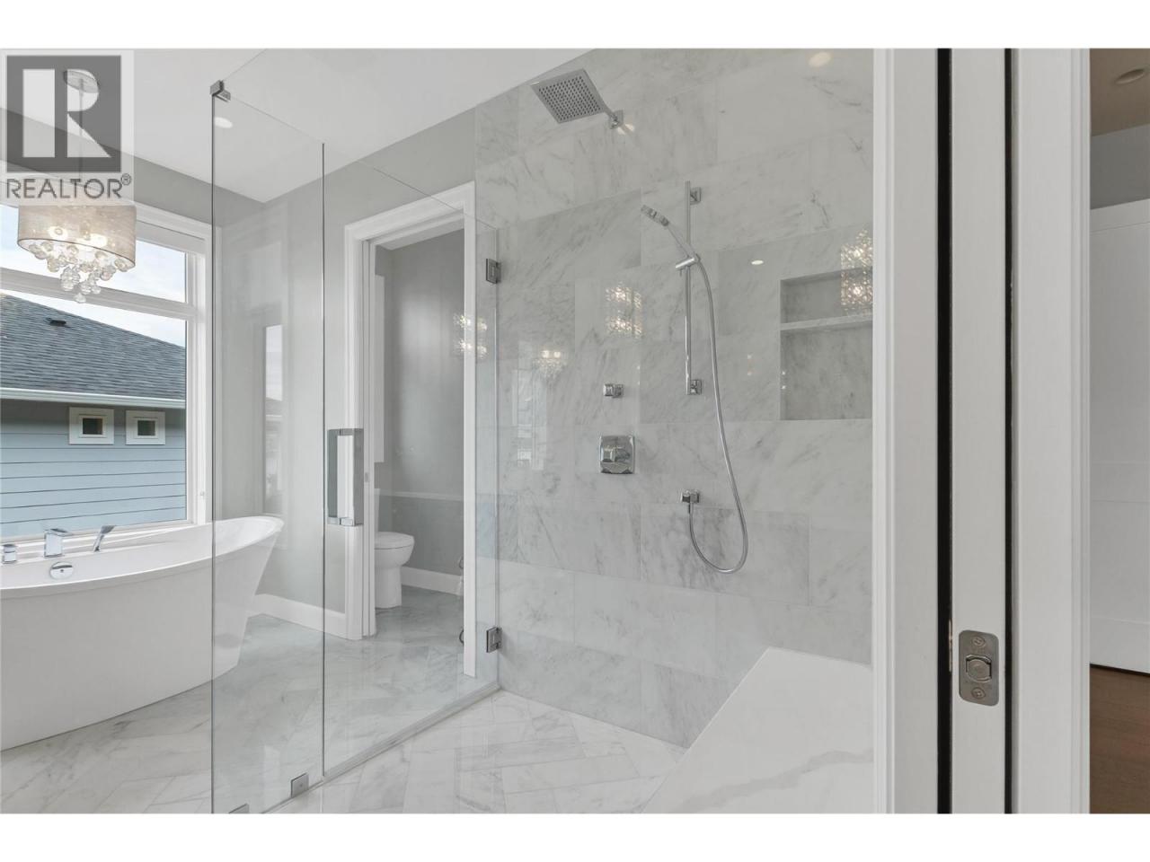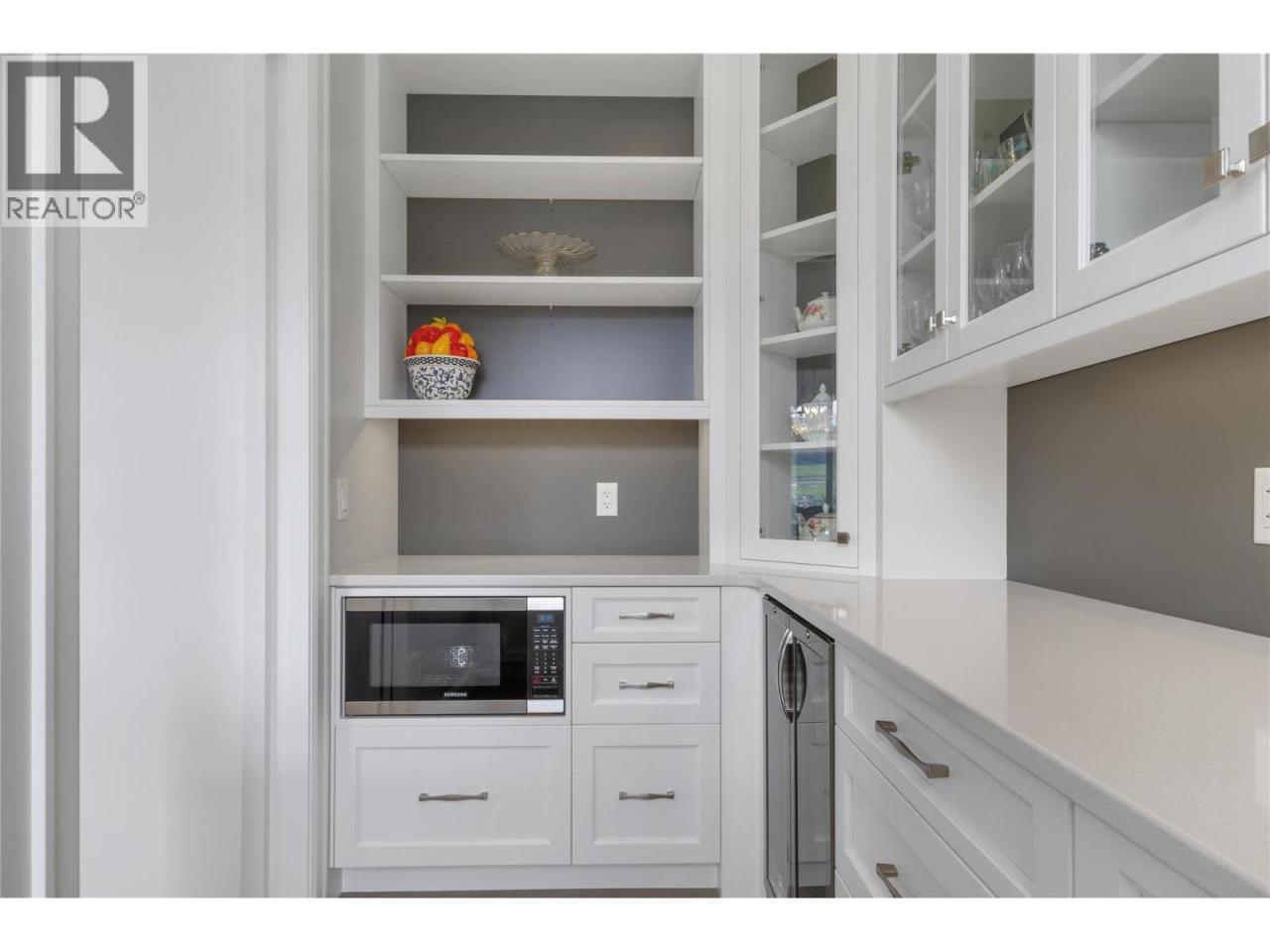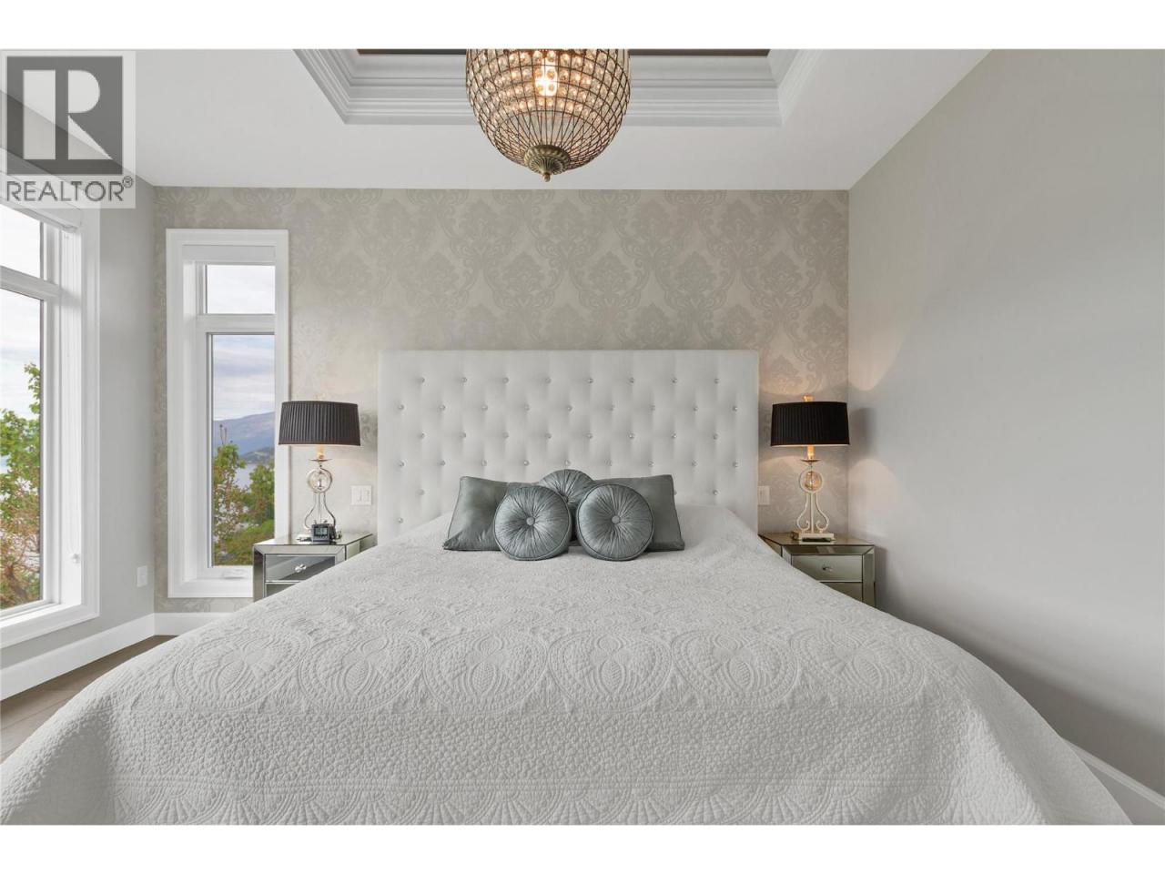 Welcome to a true masterpiece! Situated above the shores of Okanagan Lake in sought-after Lakeridge Estates, this 3700sq/ft, 5 bed Heartwood Homes crafted Rancher w/ walkout basement is sure to please those looking for luxury, practicality, & maintenance-free living. Stepping through 9’ tall double door entrance, you’ll immediately notice extraordinary attention to detail. From the elevated living room ceiling w/ beam detail to the sleek tiled fireplace surround; hand-selected quartz kitchen countertops w/ extra-deep edge; tiling perfection throughout the spa-like ensuite; epoxy finished garage floors; stamped concrete on spacious upper deck; even round handcrafted cabinetry in walk-in closet! It’s not only QUALITY that draws one to this lovely property, it’s also DESIGN, emphasizing easy flow from one living space to the next. Whether entertaining in the welcoming living room, preparing & enjoying meals in the kitchen w/ convenient butler’s pantry & dining room w/ floor-to-ceiling windows, or stepping out through double glass patio doors incorporating your huge covered deck area into the living space, where you can take in scenic lake &valley views. And finally, w/ a large 3 car garage for toy and car storage; EV power; a legal self-contained one-bedroom suite; extra RV parking w/ sewer, water & power; low-maintenance, easy-access yard; & tons of parking space, its all here. Looking for a high-quality, well-appointed, easy living home, this is one for you! (id:6769)