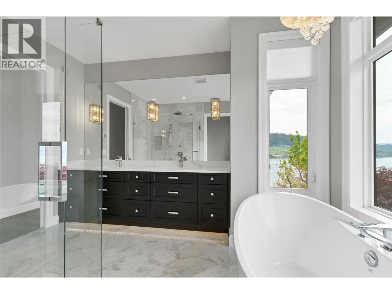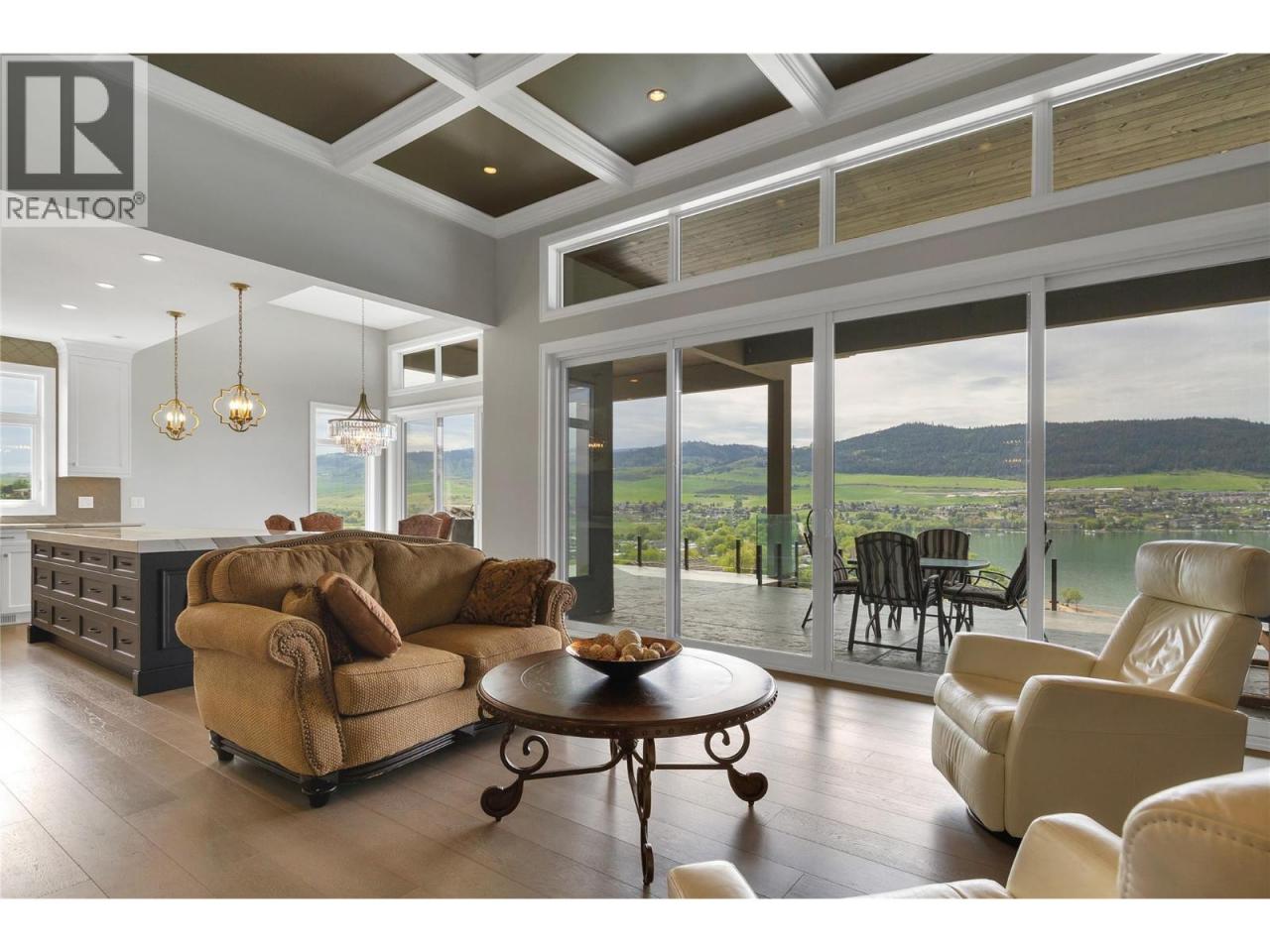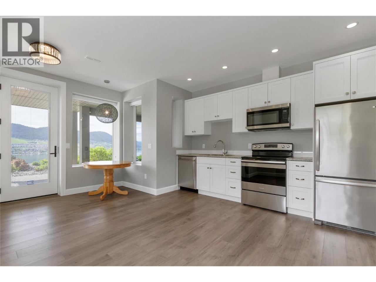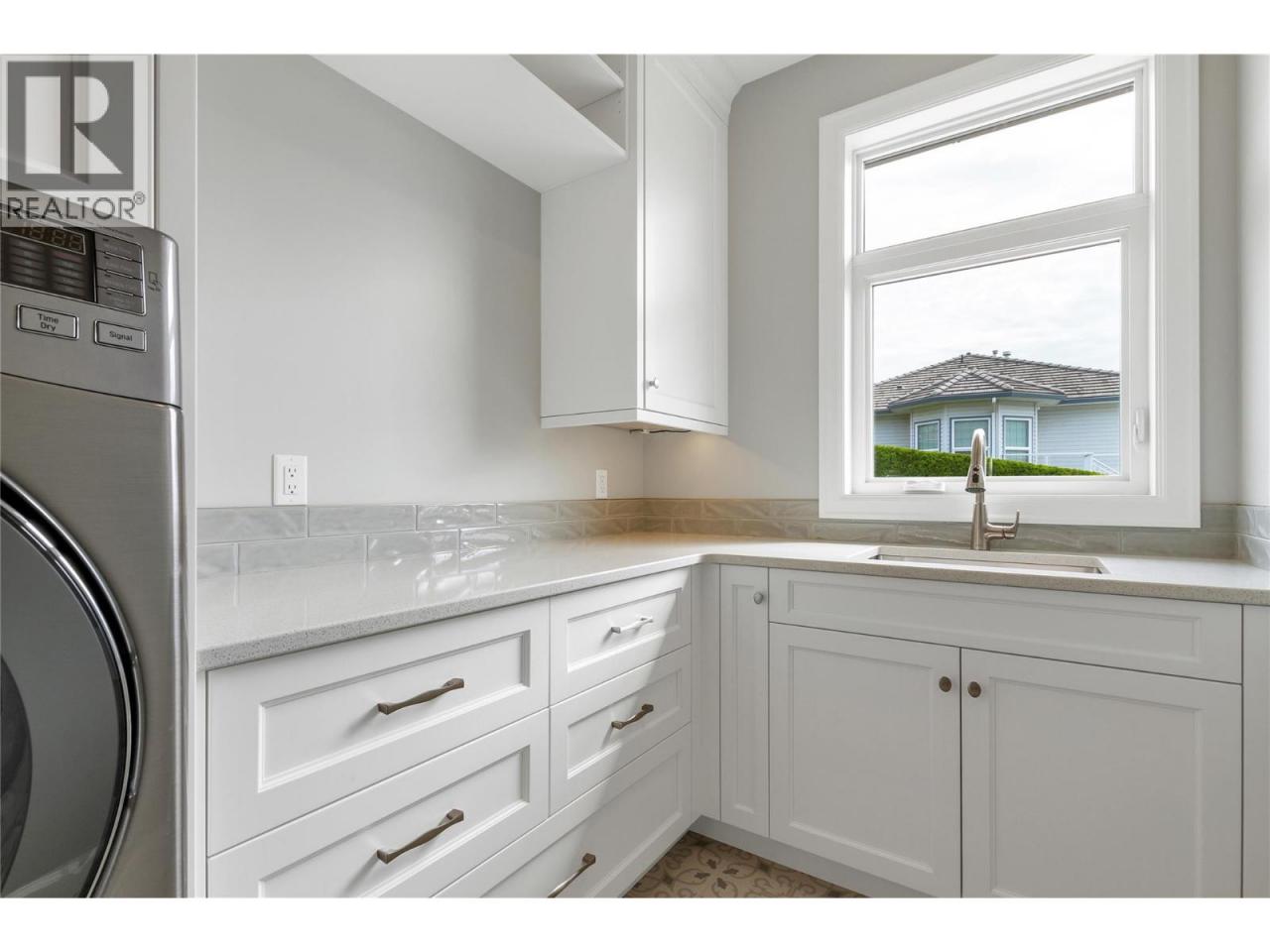 Welcome to a true masterpiece! Situated above the shores of Okanagan Lake in sought-after Lakeridge Estates, this 3700sq/ft, 5 bed Heartwood Homes crafted Rancher w/ walkout basement is sure to please those looking for luxury, practicality, & maintenance-free living. Stepping through 9’ tall double door entrance, you’ll immediately notice extraordinary attention to detail. From the elevated living room ceiling w/ beam detail to the sleek tiled fireplace surround; hand-selected quartz kitchen countertops w/ extra-deep edge; tiling perfection throughout the spa-like ensuite; epoxy finished garage floors; stamped concrete on spacious upper deck; even round handcrafted cabinetry in walk-in closet! It’s not only QUALITY that draws one to this lovely property, it’s also DESIGN, emphasizing easy flow from one living space to the next. Whether entertaining in the welcoming living room, preparing & enjoying meals in the kitchen w/ convenient butler’s pantry & dining room w/ floor-to-ceiling windows, or stepping out through double glass patio doors incorporating your huge covered deck area into the living space, where you can take in scenic lake &valley views. And finally, w/ a large 3 car garage for toy and car storage; EV power; a legal self-contained one-bedroom suite; extra RV parking w/ sewer, water & power; low-maintenance, easy-access yard; & tons of parking space, its all here. Looking for a high-quality, well-appointed, easy living home, this is one for you! (id:6769)