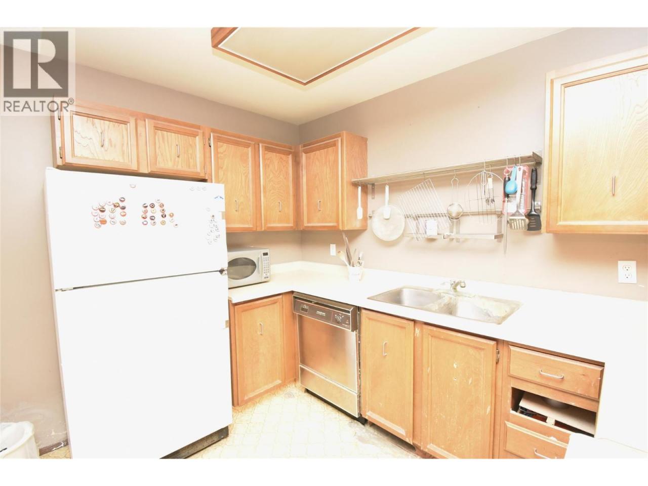 Priced Below Assessed Value! Welcome to Unit #524 in the desirable Centre Point complex offering exceptional value & endless potential. This well-designed 2-bed, 2-bath apartment is located in a quiet neighbourhood & presents a fantastic opportunity for first-time buyers or investors. Being sold as is, this home is truly a blank canvas, bring your ideas & transform it into your ideal living space. The primary bedroom features a walk-thru closet & 3-pc ensuite. A versatile 2nd bedroom is perfect for guests, a home office, or hobby space.You’ll also appreciate the bonus of a large w/i pantry or storage space.The kitchen offers ample cabinetry & flows into the dining area, while the living room is filled with natural light from overhead skylights creating an inviting space for relaxing or entertaining.Enjoy the convenience of in-suite laundry, no age restrictions, & rental-friendly policies.The monthly strata fee of $567.56 adds tremendous value, covering heat, hot water, garbage, sewer, grounds maintenance, & management.Residents & guests also have access to a guest suite. Building amenities include secure entry, elevator access, bike storage, & a common sauna.This unit comes with 1 covered parking stall.Centrally located in Vernon, you’re just a short easy walk to all amenities, Natures Fare, FreshCo, Drug Store/Post Office, coffee shops, & a short drive to Silver Star Ski Resort.Don’t miss this incredible opportunity to own in a well-maintained complex at an unbeatable price! (id:6769)