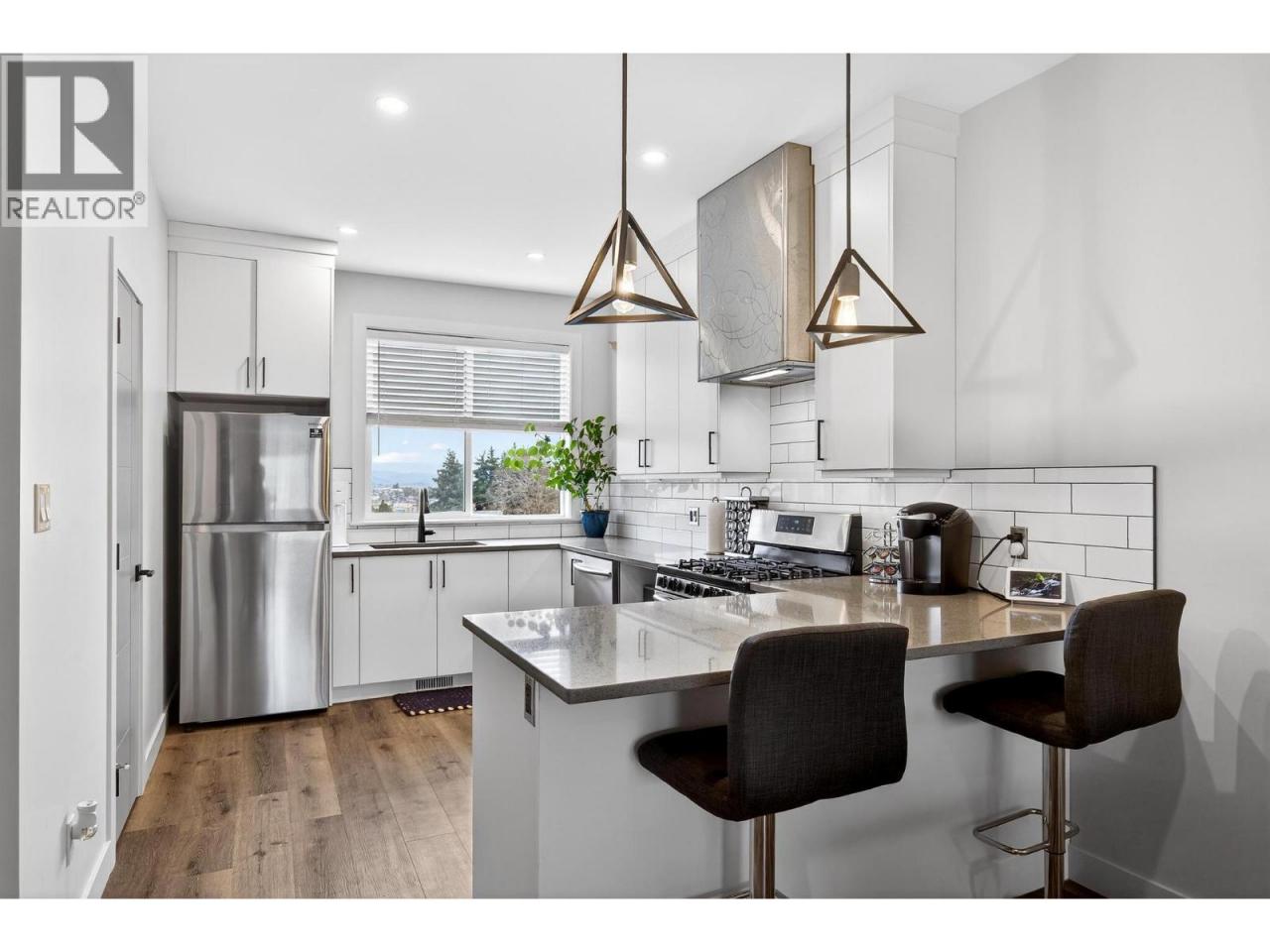 Welcome to this beautifully maintained 3 bedroom, 3 bathroom townhome located in a quiet, well-kept community. Only a few years old and still feeling like new, this home offers a fantastic opportunity to move in and enjoy without the need for updates or renovations. The thoughtfully designed layout features a bright and modern main floor with stylish finishes and contemporary colors throughout. The kitchen truly shines with SS appliances, crisp white cabinetry, and a window above the sink that fills the space with natural light. The open-concept living and dining areas create a comfortable and functional space for everyday living and entertaining. Upstairs you will find 3 bedrooms, including a spacious primary retreat complete with a walk-in closet and a full ensuite with shower and dual sinks. The tandem garage provides plenty of room for parking, storage, or recreational gear, plus there is additional parking available. Enjoy the private, fully fenced, no-maintenance backyard, perfect for relaxing or for pet owners looking for a secure outdoor space. And this location is hard to beat - conveniently situated close to lakes, hiking trails, Okanagan College, Vernon Jubilee Hospital, and downtown Vernon, offering easy access to recreation, amenities, and everyday essentials. An excellent opportunity offering modern living, great value, and a move-in ready lifestyle, ideal for first-time buyers, investors, or anyone seeking a low-maintenance home in a fantastic location. (id:6769)