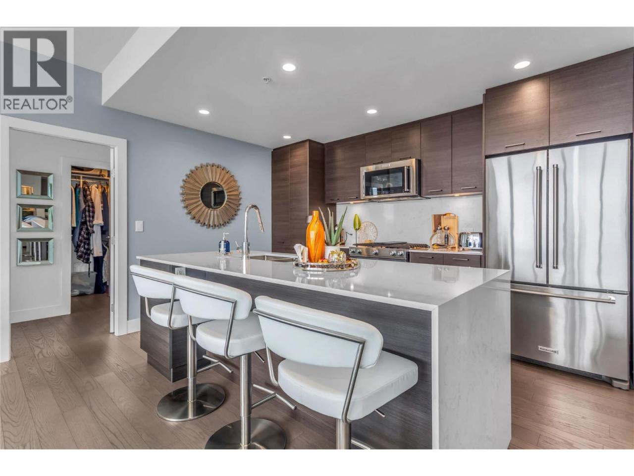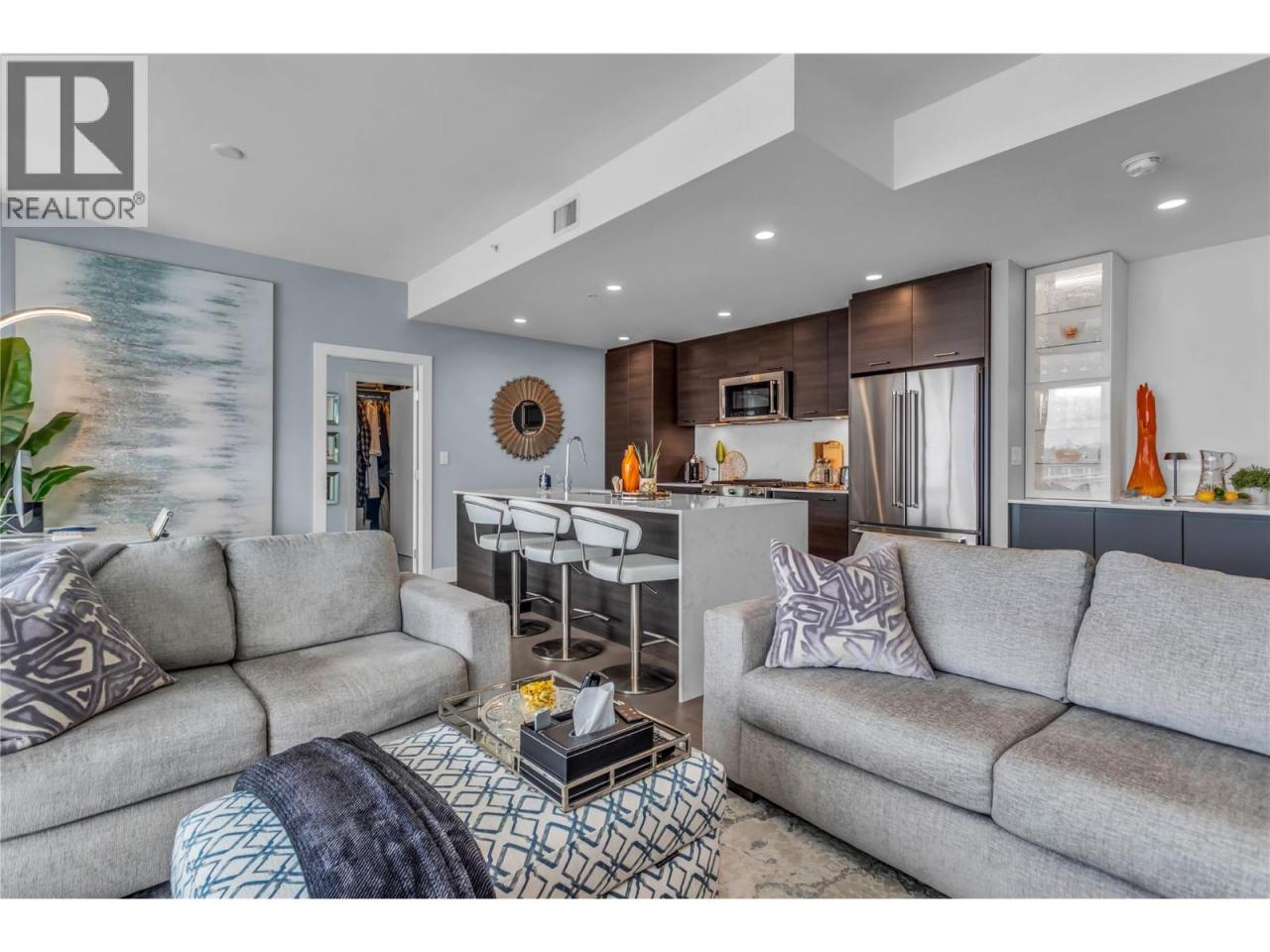 Not your average One Water Street apartment! UNOBSTRUCTED lake, city and mountain viewsfrom every window. HUGE deck. Lovingly maintained two bedroom unit with split floor plan. Bright island kitchen with built in coffee bar/ hutch, stainless steel appliances and loads of cabinets finished with pantry style pull out shelves. Spacious king accommodating primary suite with floor to ceiling windows, 5 piece ensuite and walk-in closet. Beautifully finished throughout. The 20th floor offers a view that is not so high you can't enjoy the view but high enough to be above any obstructions. One Water Street offers a 1.3-acre oasis of resort-style amenities. Residents enjoy access to two outdoor pools, inviting lounge areas with fire pits, a state-of-the-art fitness center with a yoga studio, an entertainment space, a business center, a pickleball court, and guest suites. The building's prime location places residents within easy reach of on-site restaurants and coffee shops, and within walking distance of the beach, the lake, downtown Kelowna, and the yacht club. To enhance convenience, the residence includes a dedicated parking stall and storage locker. This One Water Street condo is more than a home; it's a lifestyle, offering unparalleled views and a wealth of amenities in a prime location. (id:6769)