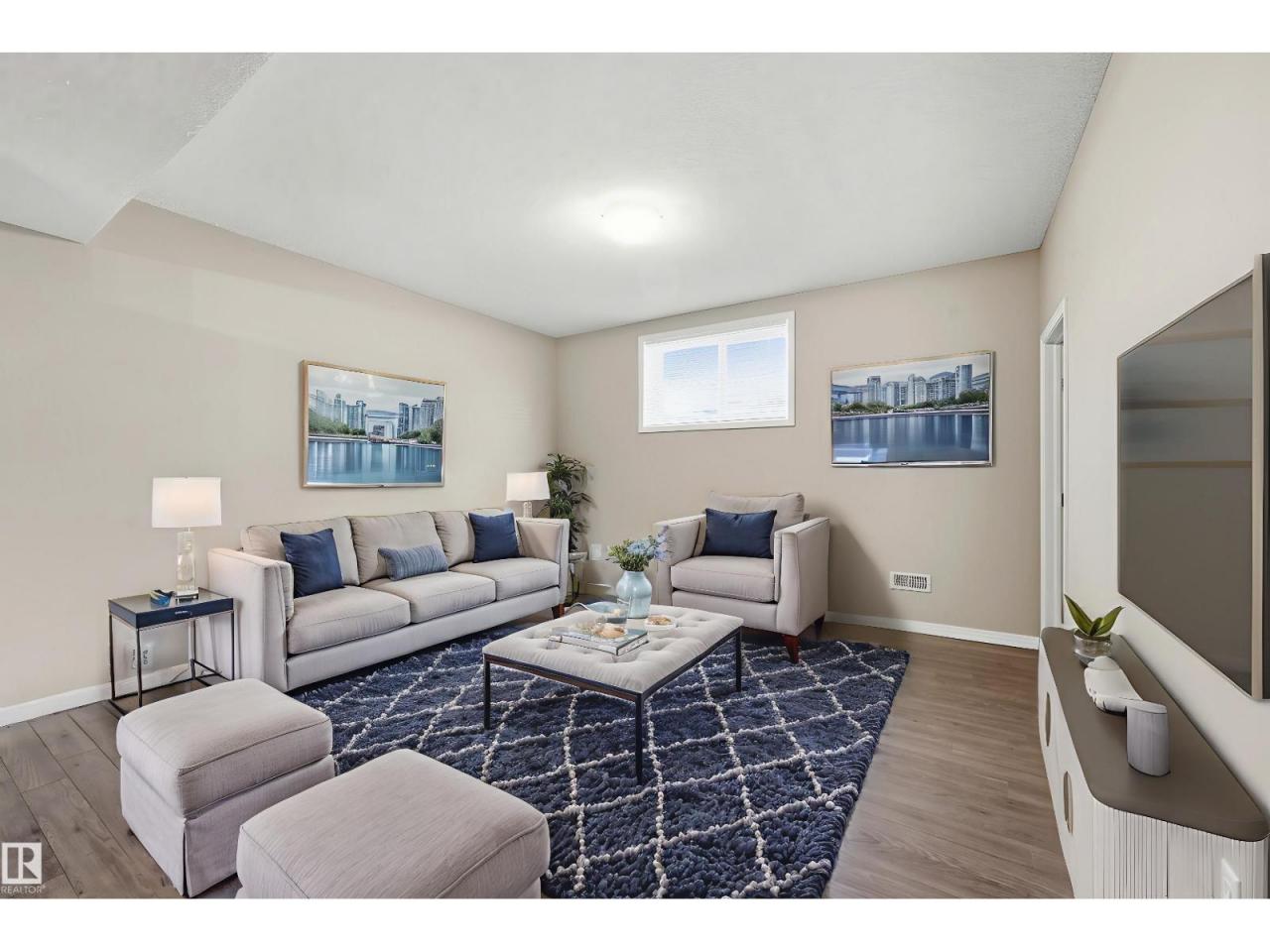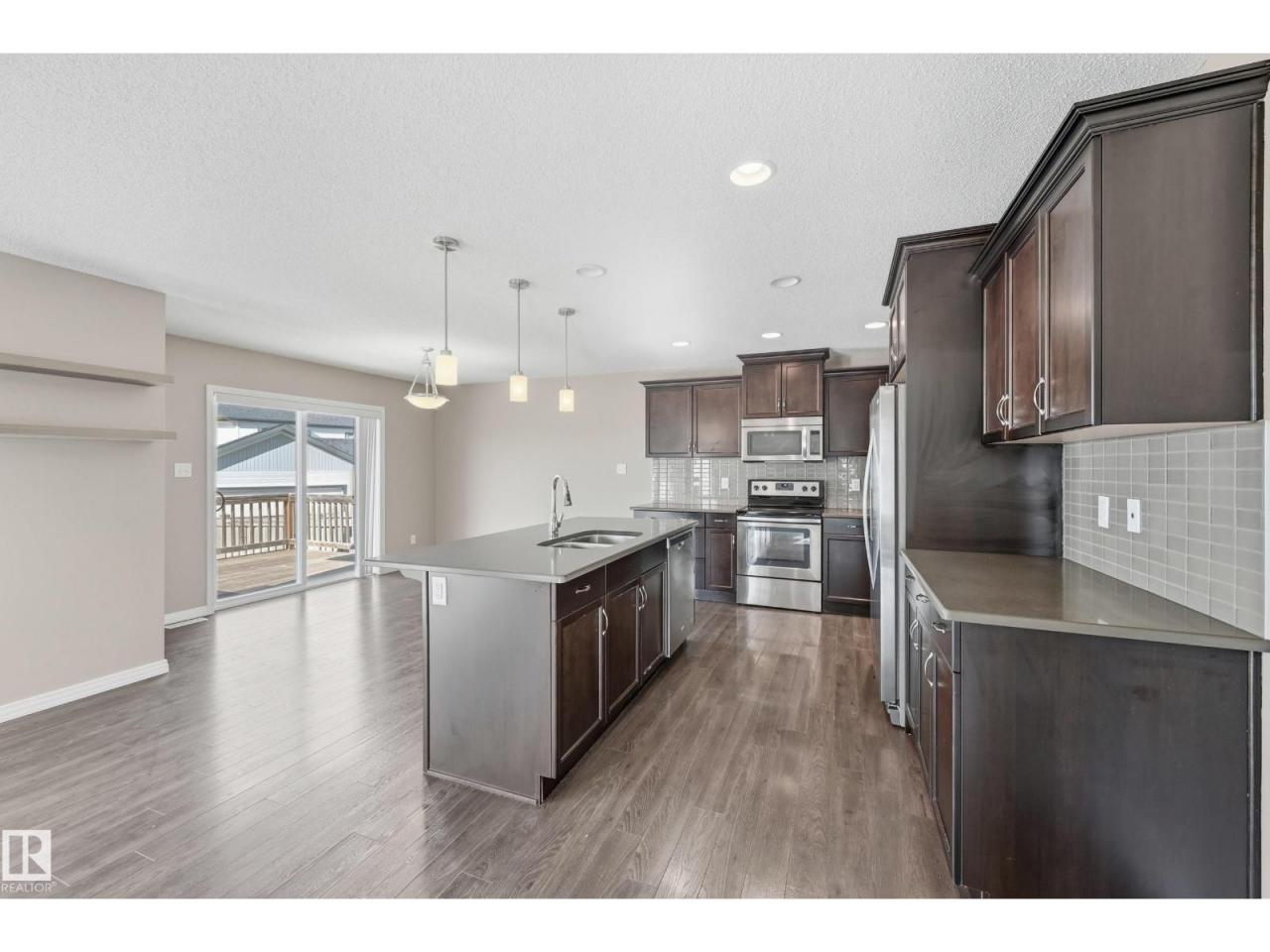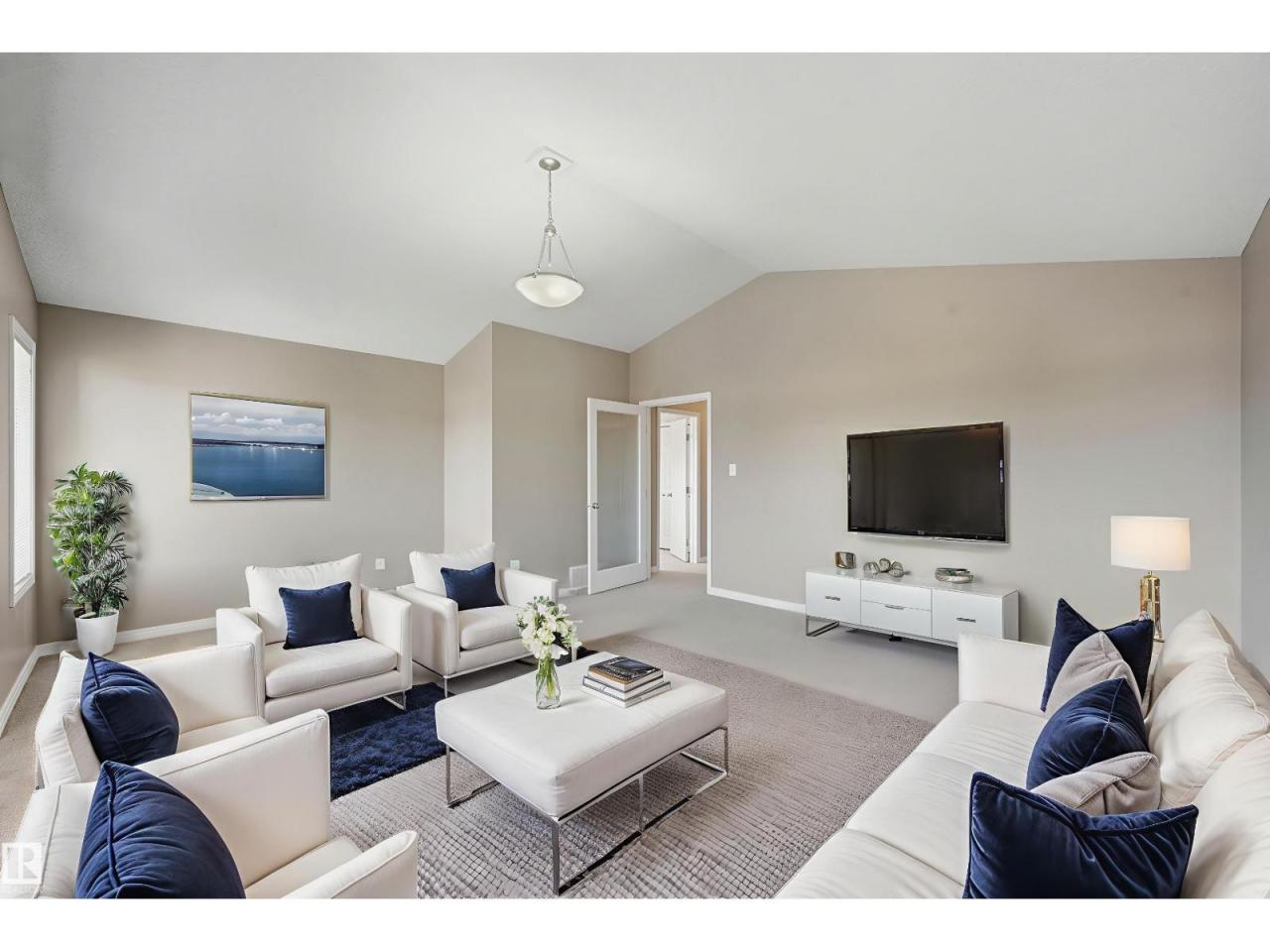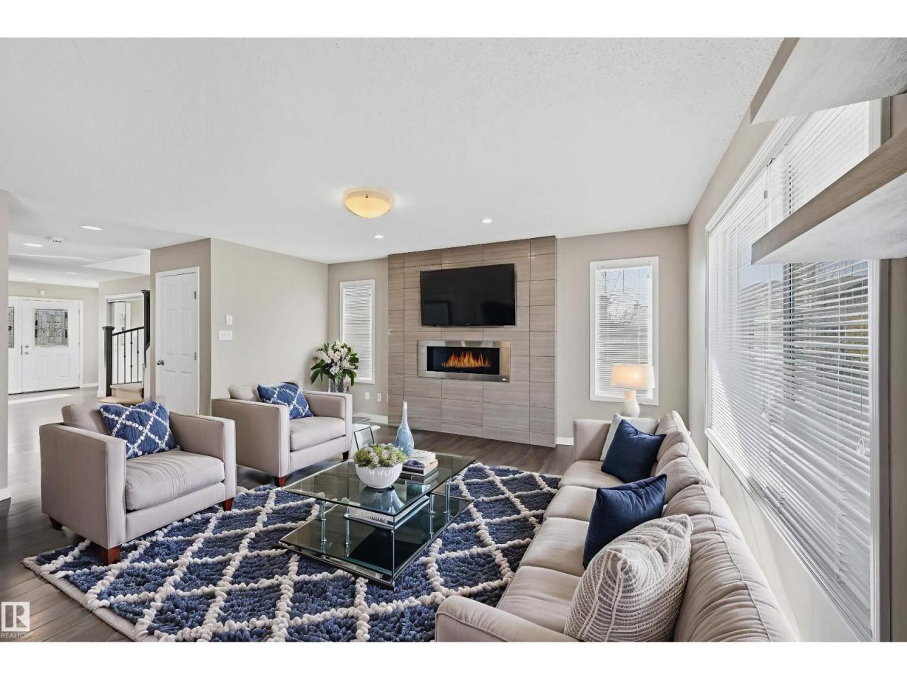 Unique well functioning layout for multi-generational families or investment income offset. Turn key ready, complete w/2 bedroom legal suite. The Madrid model by Bedrock Homes offers a naturally lit, open floorplan w/approx 3300sf of total living space on a 6912sf corner pie lot w/parking for 6+vehicles. 3 living areas, 5 bedrooms, 4 bathrooms, 2 full kitchens, 2 sets of laundry & separate entrance. Great room highlights a modern feature wall w/linear gas fireplace & overlooking a spacious kitchen w/plenty of storage & prep space. Dining nook provides direct access to deck for evening bbqs & landscaped yard. Upper level boasts a vaulted bonus room for family movie nights. Oversized primary bedroom complete with 5pc ensuite & walk in closet. 2 additional bedrooms & 4pc bathroom for a growing family. Lower level separate entrance leads to a private 2 bedroom legal suite. Within catchment of 4schools. Enjoy countless indoor/outdoor recreational amenities Chapelle has to offer. (some virtually staged rooms). (id:6769)