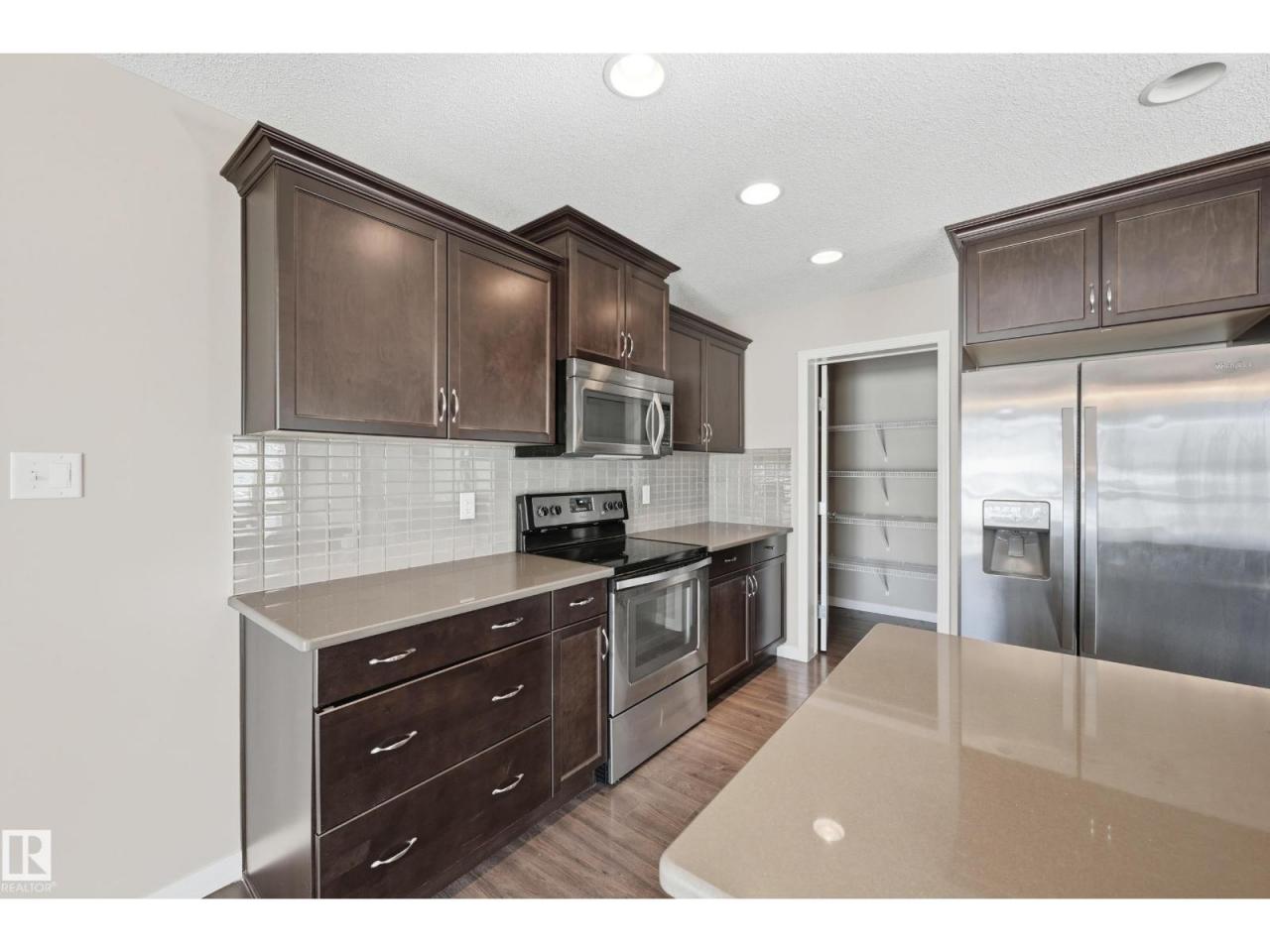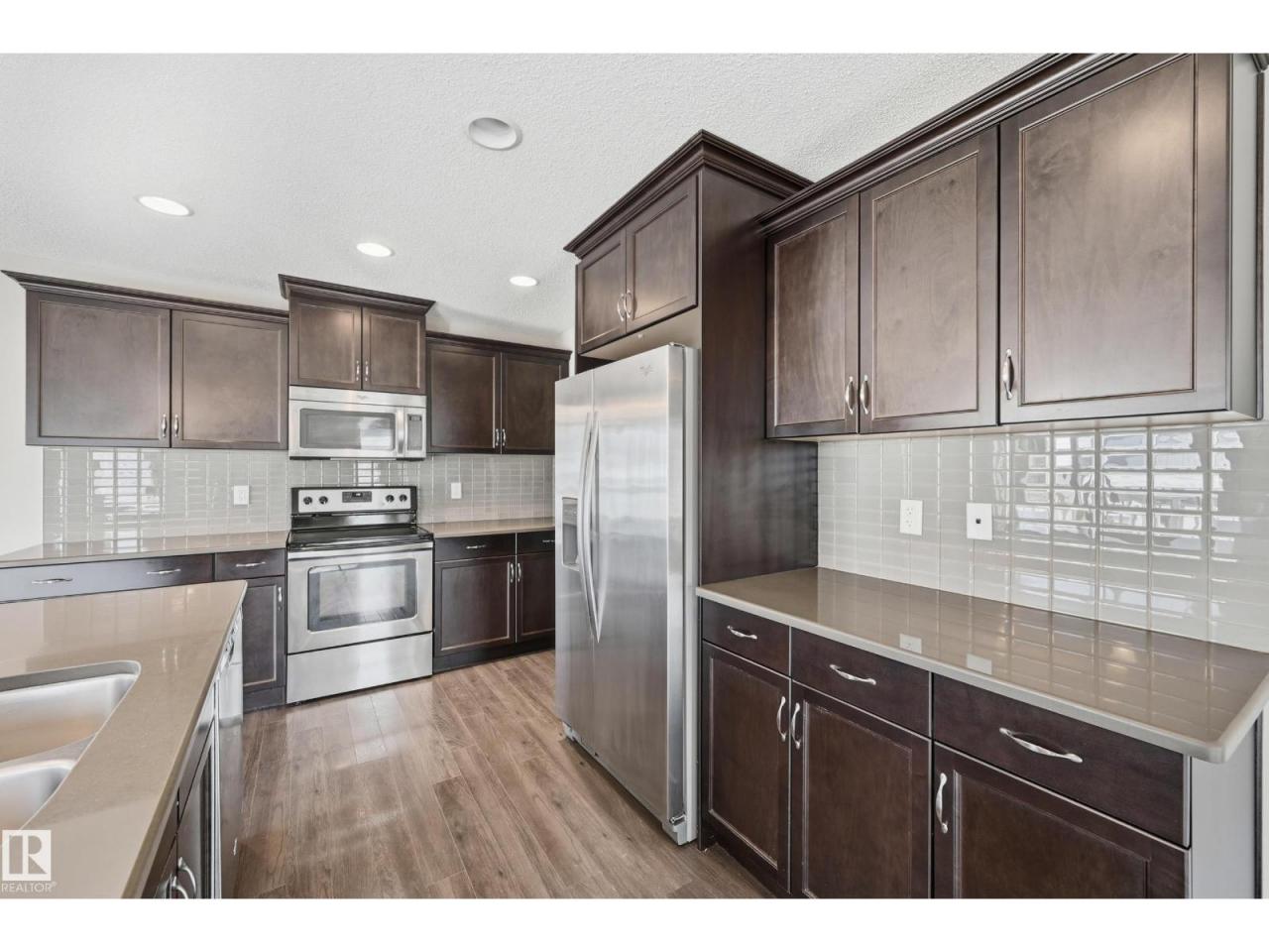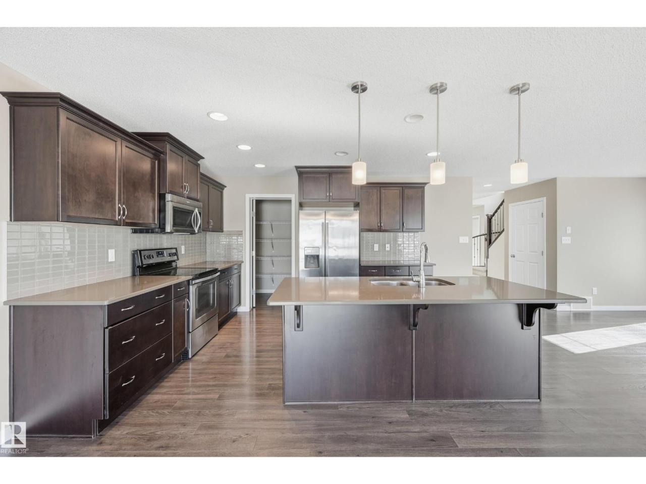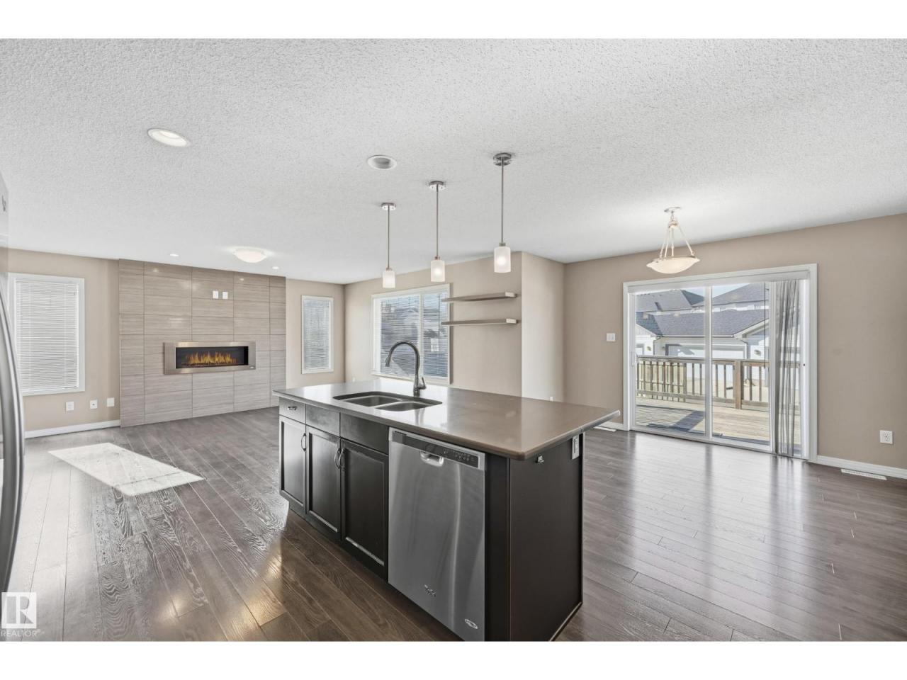 Unique well functioning layout for multi-generational families or investment income offset. Turn key ready, complete w/2 bedroom legal suite. The Madrid model by Bedrock Homes offers a naturally lit, open floorplan w/approx 3300sf of total living space on a 6912sf corner pie lot w/parking for 6+vehicles. 3 living areas, 5 bedrooms, 4 bathrooms, 2 full kitchens, 2 sets of laundry & separate entrance. Great room highlights a modern feature wall w/linear gas fireplace & overlooking a spacious kitchen w/plenty of storage & prep space. Dining nook provides direct access to deck for evening bbqs & landscaped yard. Upper level boasts a vaulted bonus room for family movie nights. Oversized primary bedroom complete with 5pc ensuite & walk in closet. 2 additional bedrooms & 4pc bathroom for a growing family. Lower level separate entrance leads to a private 2 bedroom legal suite. Within catchment of 4schools. Enjoy countless indoor/outdoor recreational amenities Chapelle has to offer. (some virtually staged rooms). (id:6769)