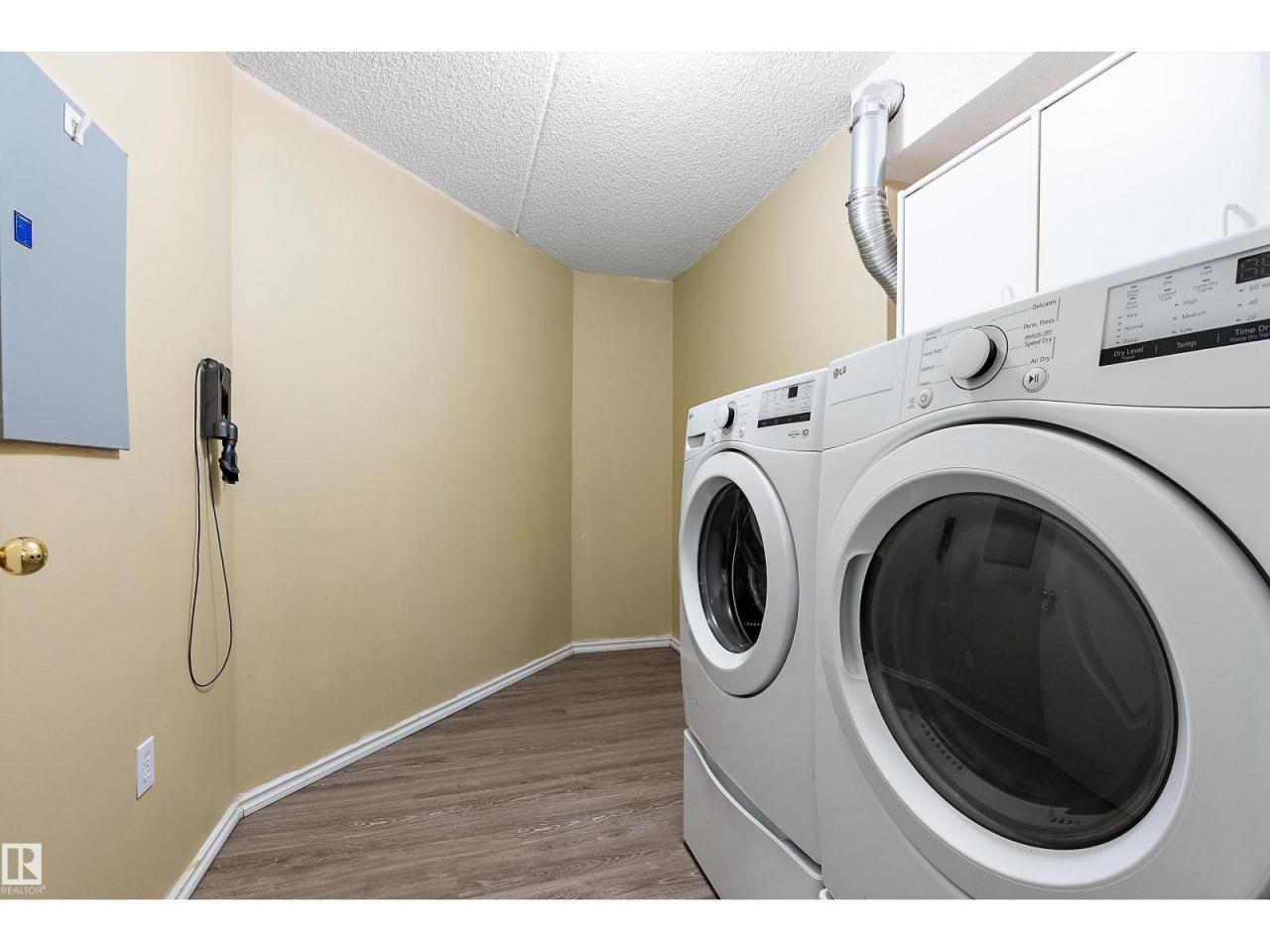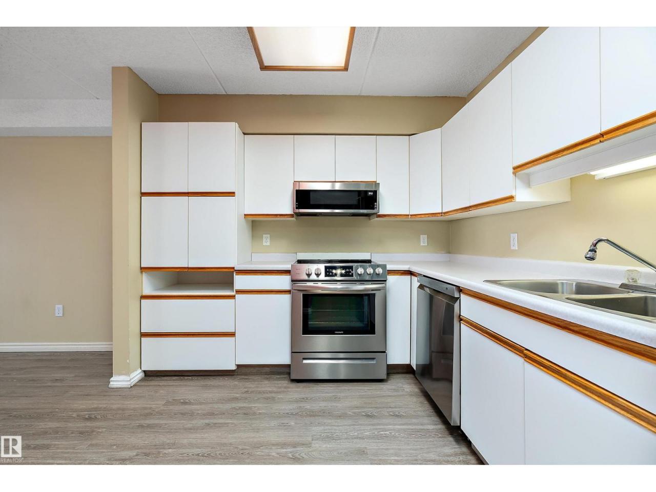 PERFECT OPPORTUNITY to own an ADULT CONDO (55+) offering rare CONCRETE CONSTRUCTION & in suite AIR CONDITIONING in CENTRAL LEDUC close to the Hospital, Library. shopping, theatre, restaurants plus all the amenities the area has to offer! This second floor unit offers 874 square feet of living area featuring IN SUITE LAUNDRY (with newer washer & dryer) a 4 piece bathroom, a SPACIOUS PRIMARY bedroom plus a lovely DEN/BEDROOM with FRENCH DOORS off of the GREAT ROOM STYLE living area. The kitchen features plenty of cabinetry with NEWER STAINLESS APPLIANCES & the entire suite had professionally installed luxury vinyl plank flooring throughout in 2023. The COVERED SOUTH BALCONY allows for plenty of NATURAL LIGHT into the home. Lots of storage throughout the suite and an INDOOR PARKADE STALL will be assigned on possession! Come home to this WELCOMING & WELL MANAGED ADULT COMMUNITY perfectly located in the HEART OF LEDUC! (id:6769)