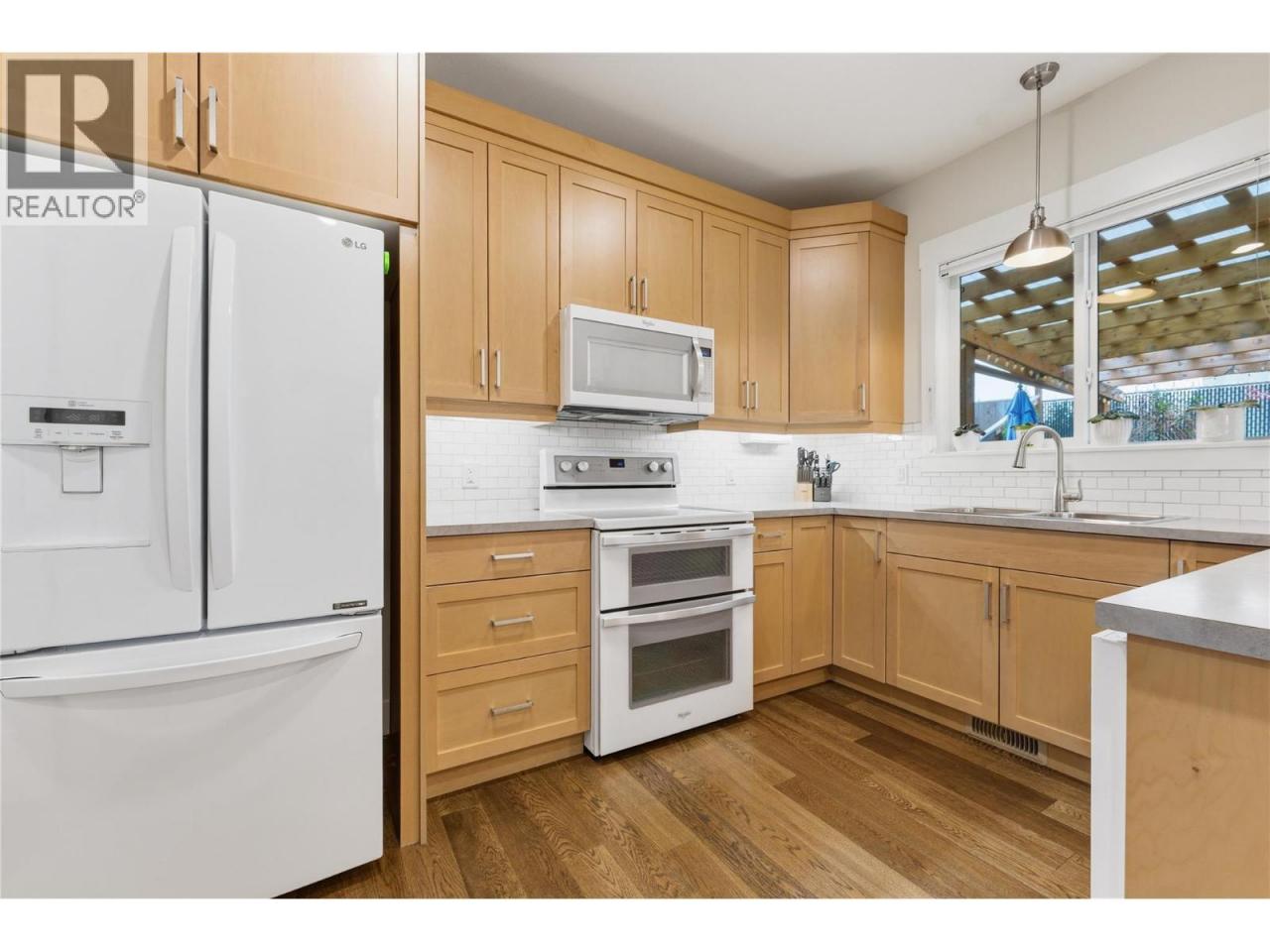 Beautifully maintained and thoughtfully designed, this two-storey home offers 3 bedrooms and 2.5 bathrooms, perfectly positioned on a spacious lot backing onto BX Creek and its scenic walking trail. The main level features an inviting open-concept great room with vaulted ceilings, expansive windows, rich hardwood flooring, and a fireplace, creating a bright and welcoming space for everyday living. The generously sized dining area opens through double doors to a large patio and a beautifully landscaped, private backyard with extended cover deck and Hot Tub, ideal for entertaining or relaxing outdoors. The south-facing kitchen is both functional and stylish, complete with maple cabinetry and an eating bar. Just off the kitchen, you’ll find a butler pantry with direct access to a spacious mudroom/laundry area and entry to the attached double garage. A front foyer with a coat closet and a convenient powder room completes the main floor. Upstairs, the open staircase leads to a charming primary bedroom featuring a walk-in closet and a 3-piece ensuite. Two additional bedrooms are also located on this level, one with its own walk-in closet, along with a well-appointed main bathroom. The upstairs also features brand new carpets. Set on an oversized lot bordering the BX Creek walkway, this home offers the perfect blend of nature and convenience; just a short 5-minute walk to everyday amenities and only 20 minutes to year-round recreation at SilverStar Mountain Resort and nearby lakes. (id:6769)