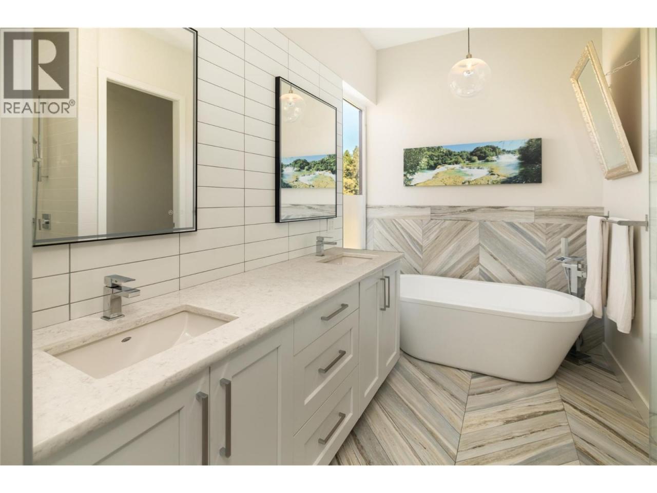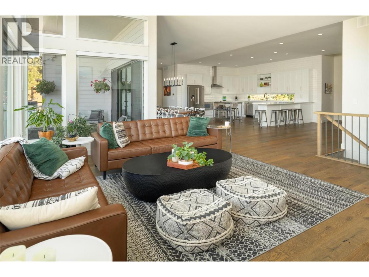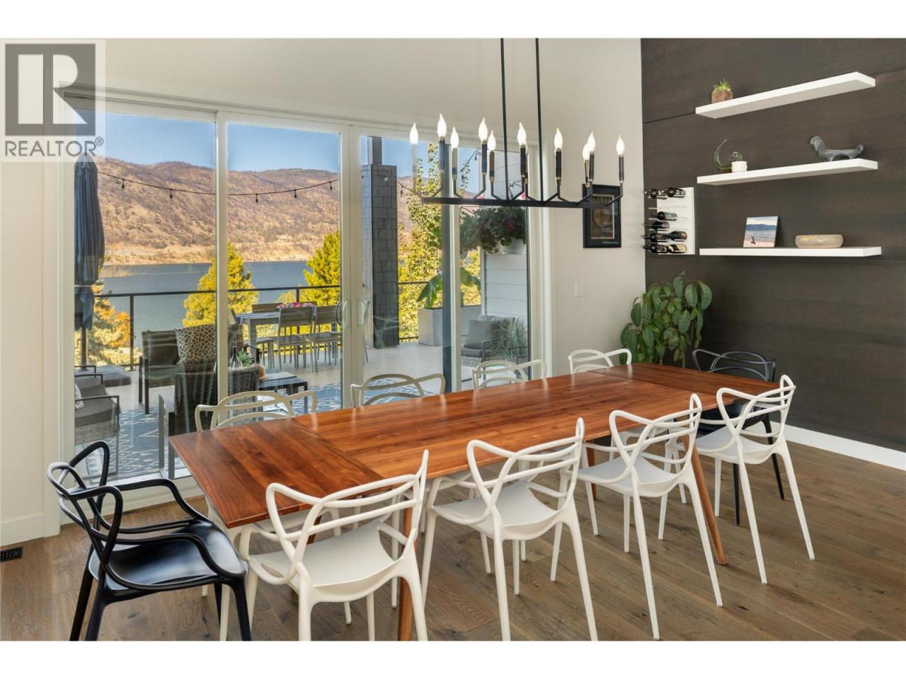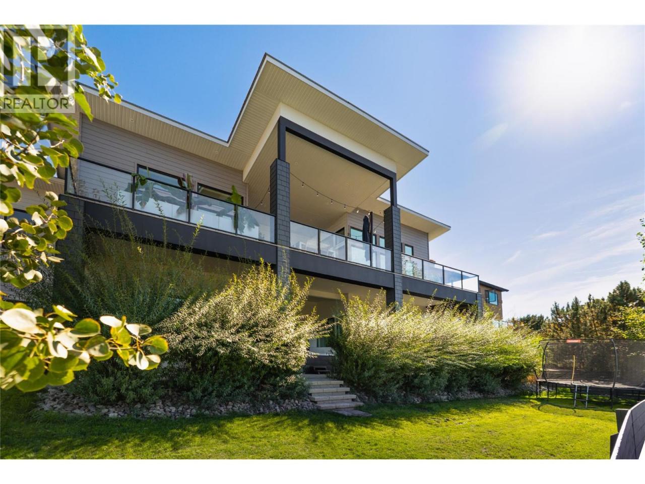 Perfectly positioned to showcase Okanagan Lake views within a mature, private neighbourhood, this nearly new custom residence embodies modern yet timeless living. Designed to maximize both comfort and style, the home is filled with natural light and showcases sweeping lake and mountain views from nearly every room. The main level highlights soaring ceilings, expansive windows, and an open-concept layout that seamlessly connects the kitchen, dining, and living areas. An oversized 8x12 ft sliding door opens to a vaulted covered patio, creating a striking indoor-outdoor flow perfect for entertaining or unwinding against the lakeview backdrop. The lower level offers exceptional versatility with 14-ft ceilings, oversized doors, and expansive spaces that include a recreation area, family room, office, gym, and a flexible kitchenette rough-in. Notable features include 31 solar panels & a two-car garage with EV charger and high ceilings that can accommodate a lift. Outdoors, the landscaped yard is graced with fruit trees and offers potential for a future swim spa with plenty of room for kids to run and play, plus easy accommodation for RV or boat parking. Blending refined design with everyday function, this property offers unmatched privacy, remarkable views, and a coveted location—just minutes from Aberdeen, UBCO, the lake, schools, shops, and recreation with no amenity fees! (id:6769)