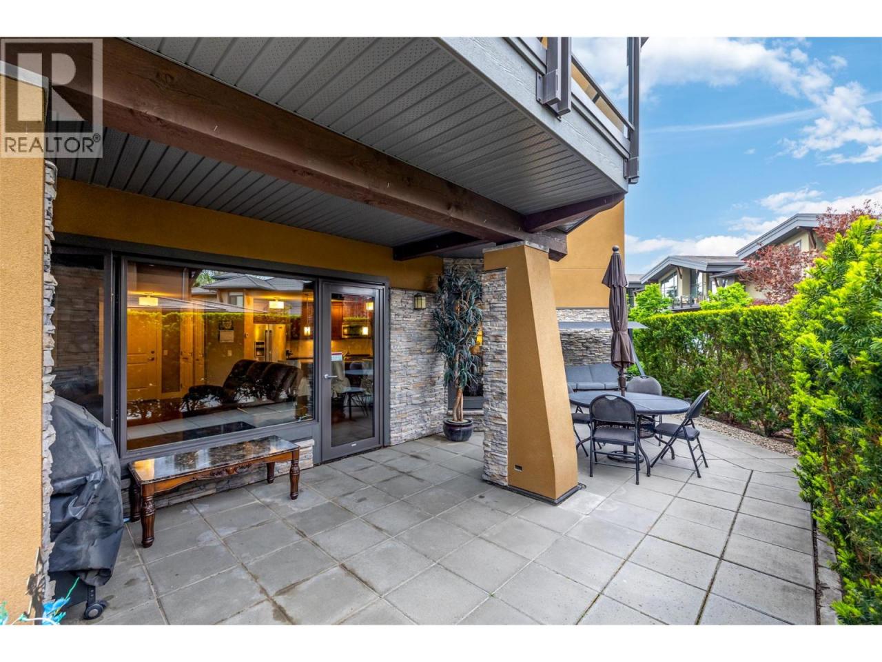 This beautifully designed Southwind at Sarsons 2 Bedrooms + Den, 2 Baths unit, located in one of Kelowna’s most sought-after communities offers style, comfort, and convenience. The kitchen features a full stainless steel appliance package with gas range, granite countertops, and sleek wood-finish cabinetry. An open-concept layout connects the kitchen, dining, and living areas, creating a bright, flowing space ideal for both everyday living and entertaining. The spacious primary bedroom includes a luxurious 5-piece ensuite and a large walk-in closet, while the second bedroom is set on the opposite side of the unit, ensuring excellent privacy with no shared walls between them. Comfort is maintained year-round with efficient geothermal heating and cooling. Step outside to a generous patio, thoughtfully screened by mature landscaping for added seclusion. The unit comes with 2 secure parking stalls and a storage locker. Resort-style amenities include an indoor pool, hot tub, fitness center, resident lounge, beautifully maintained gardens, and a peaceful water feature. Located just a short walk from Kelowna Newest Community Park on DeHart. Sarsons Beach is only a few minutes walk away. Driving to shopping, dining, and everyday essentials is only a few minutes. Newer laundry machines and fridge. Strata covers Geothermal Heating and Cooling. Some furniture and kitchenware negotiable and may be included in the sale. (id:6769)