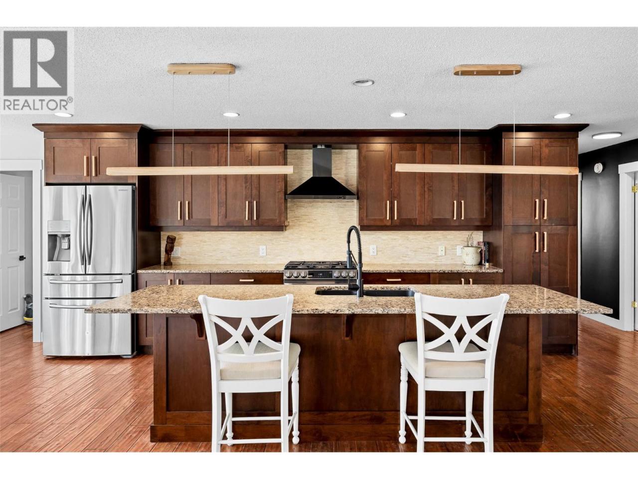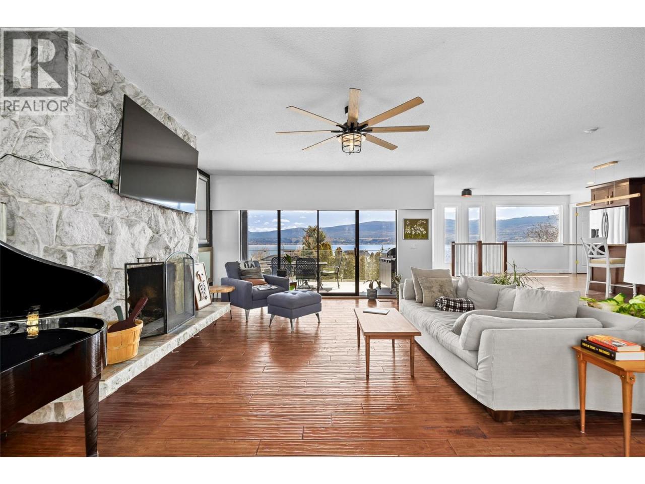 BEAUTIFUL LAKE VIEWS IN CASA LOMA! Tucked on a quiet no-through road just minutes from Downtown Kelowna, this 5 bedroom, 3 bathroom walk-out rancher offers the best of Okanagan living just a short walk to numerous beach accesses & Kalamoir Park! With views from both levels of the home, the main floor is built for gathering. An updated kitchen with a large island, gas range, stainless appliances & granite counters opens into a sunken living room centred around a cozy rock fireplace that opens to a covered balcony overlooking the yard & Okanagan Lake. Watch boats pass by, entertain friends & catch sunrise just a stone's throw away from the beach. The main level offers 3 bedrooms, including a primary retreat with lake views & a striking black 4-pc ensuite with dual vanities. A 2nd full bathroom features a soaker tub & a penny-finished floor that’s worth every cent! One bedroom is currently set up with stacker laundry for added flexibility of laundry on the main floor. Downstairs, the walk-out level has a huge rec room with stone fireplace & massive wood beams opening up to the backyard with views! Here you'll find 2 bedrooms, a refreshed 3-pc bathroom, a 2nd laundry & a partial kitchen offering suite potential or the perfect space for in-laws/teenagers. Set on a .22 acre lot with a garage, lots of storage & a fully fenced yard, this home balances privacy, space & access to everything that makes Casa Loma one of the Okanagan's best kept secrets! Fast possession possible! (id:6769)