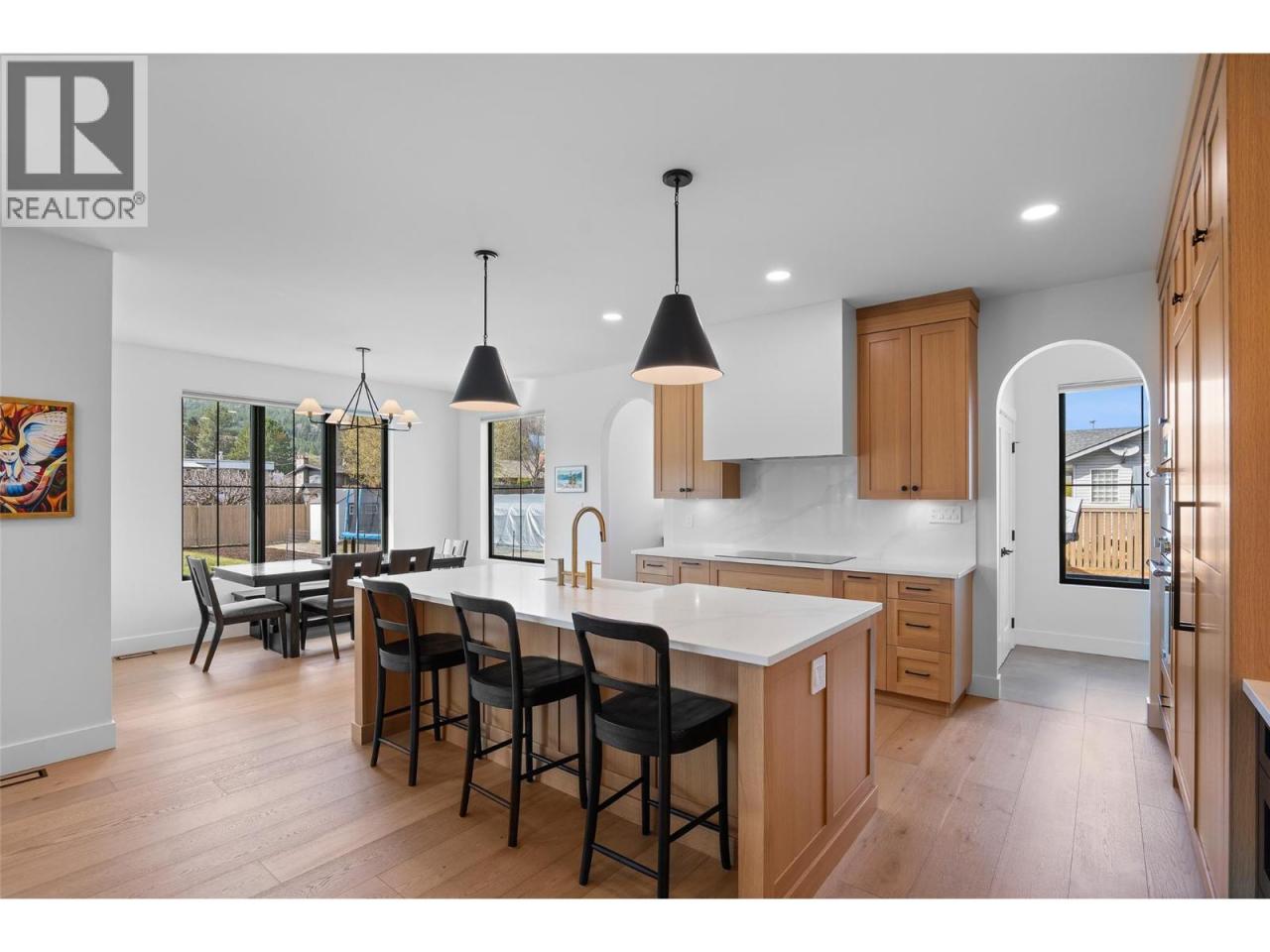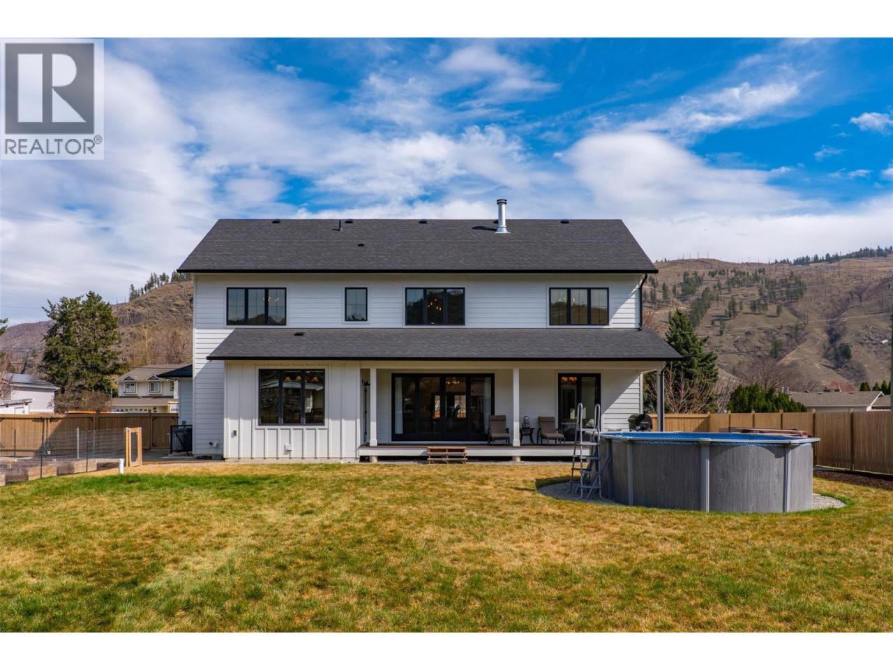 This stunning executive home opens with a grand foyer welcoming you into an open-concept living space featuring high ceilings, expansive windows, and a cozy gas fireplace. The gourmet chef’s kitchen is equipped with Thermador appliances including an integrated fridge and freezer, quartz countertops, an oversized island, a walk-in pantry with a sink, extra cabinetry and counter space, and a dining area. The primary bedroom has a gorgeous ensuite with a double vanity, an oversized glass shower, and a large walk-in closet. Completing the main floor there is a 1/2-bath and a mudroom with a second set of laundry hookups and access to the garage. Upstairs, there are three large bedrooms, a full 5-piece bathroom with a double vanity, a dedicated laundry room with a sink, and two bonus spaces currently utilized as a TV area and an office. The unfinished basement is future-ready with plumbing in place for a full suite, including a kitchen and bathroom, and a separate entrance. Additionally, the future shop area already has a water line run and the ability to hook up to septic. The beautifully landscaped property, completed in 2025, features an expansive covered patio, an above-ground pool, fruit trees, and underground sprinklers. The triple car garage boasts 11-foot ceilings, complemented by a massive driveway with tons of parking. Located on a quiet cul-de-sac in Rayleigh, offering a direct path to the local school and the peace of mind of a home warranty. (id:6769)