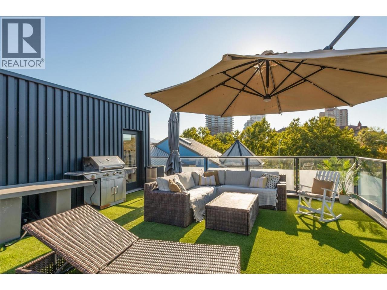 3-Bedroom + Flex Space, 3-Bathroom main home with a legal 2-Bedroom, 2-Bathroom suite. Completely redesigned in 2023, this executive home delivers elevated space, modern finishes, and a prime location. Directly across from the lake, this is refined living in one of the city’s most coveted pockets. Modern design meets warmth with wood accents, custom cabinetry, and built-ins in the living room and under the stairs. The main living space is anchored by a two-tone kitchen with a gas stove, statement beams, and a layout designed for living and entertaining. Upstairs, the primary suite stands out with oversized windows, a wood panel accent wall, and well-appointed ensuite. Two additional bedrooms, a flex space, and a full bathroom complete the upper level. The rooftop patio takes it to another level with synthetic lawn, a hot tub, gas and water hookups, and lake views. The main home includes a large fully fenced yard, and a garage with EV charging. A fully self-contained legal suite features 2 bedrooms, 2 bathrooms, separate laundry and its own large fenced yard. Manhattan Drive, located near waterfront Park in Downtown Kelowna, is one of the city’s most coveted pockets. Beaches, the lake, parks, boardwalks, shops and restaurants are all a short stroll away. With future city plans and development underway, this area continues to evolve and retain its desirability. Future zoning allows for redevelopment potential up to 6 storeys for this property and neighbours. (id:6769)