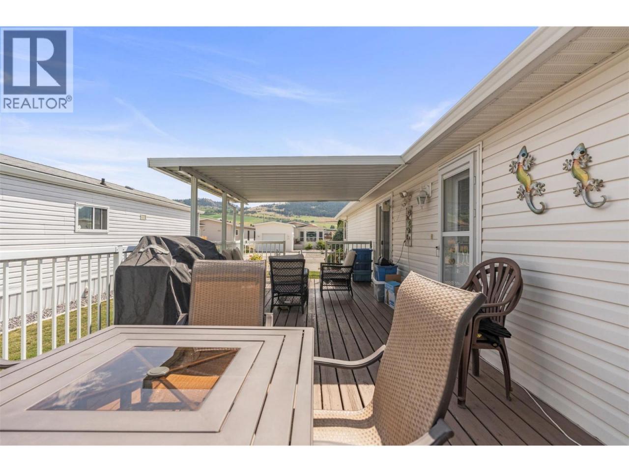 A huge private yard in a 55+ community? Yes—it exists, and it’s right here. Welcome to Lakepointe, one of Vernon’s most desirable and beautifully maintained adult communities. This well-cared-for 3-bedroom, 2-bath home offers comfort, space, and easy living—without sacrificing the outdoor lifestyle you love. Step inside to a bright, welcoming layout with vaulted ceilings that enhance the open feel of the main living area. The kitchen features crisp white cabinetry, ample storage, and a convenient eating bar—perfect for casual meals or entertaining. The primary bedroom includes a full ensuite for added privacy, while the second bedroom offers generous space for guests. The third bedroom, with direct access to the deck, is ideal as a home office, hobby room, or additional guest space. Outside is where this home truly stands out. Enjoy morning coffee on the covered front porch, or simply relax all summer long on the large, partially covered back deck. The fully fenced yard is a rare find in a park setting—offering plenty of room to garden, relax, or simply enjoy the Okanagan sunshine. Two garden sheds provide extra storage for all your tools and toys. With two parking spots, a dedicated laundry room with exterior access, and a peaceful, “lock-and-leave” setting, this home delivers the perfect downsizing opportunity—without compromise. Ready to take a closer look? Schedule your private showing today! (id:6769)
