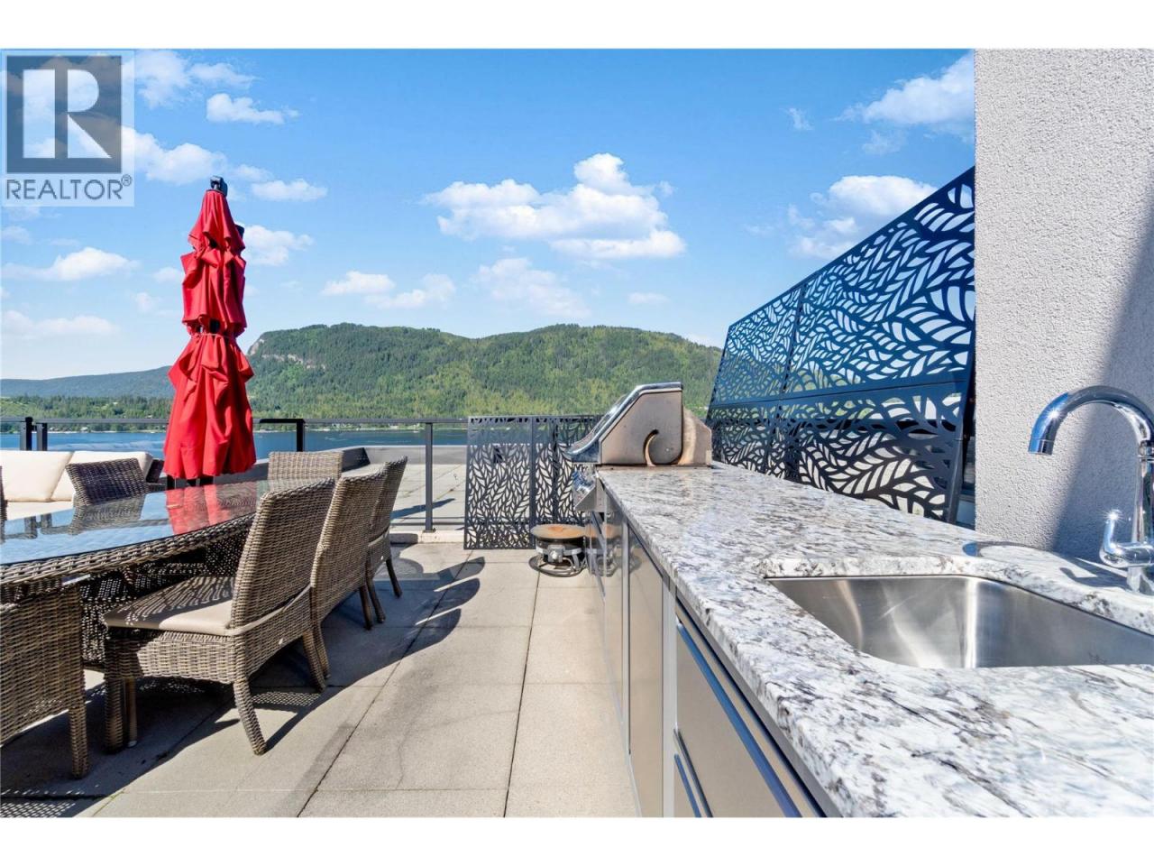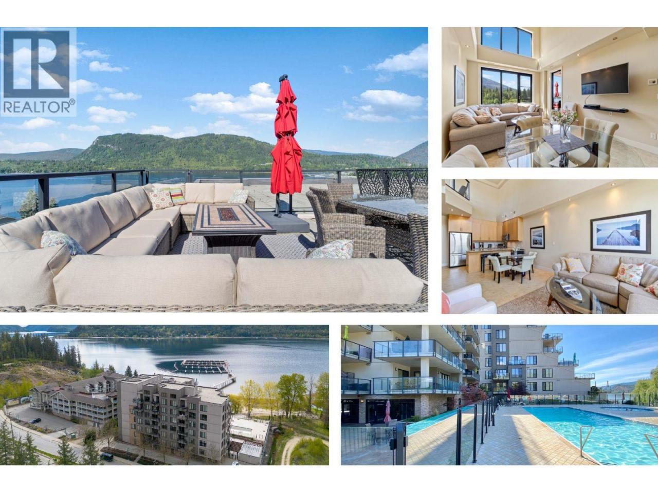This ELITE SUITE with LAKEVIEW has a PREMIUM BOAT SLIP & A 600 SF ROOF-TOP BALCONY. There are just 16 Premium Boat Slips in the Legacy's marina - 26' in length & can accommodate a boat up to 32'. This unit comes with 2 underground parking stalls. You can store your BOAT in your P2 stall (size restrictions apply), which is secure, heated & dry, saving you from trailering your boat home or storing it elsewhere. On 3 levels, each level has a balcony with top-floor views of Mara Lake. One level to dine on, one to read & relax on and then there's the rooftop! It offers incredible privacy, room to relax & has proven to be THE place to rest & entertain when you're not on your boat. Whether you're cooking up a feast in the outdoor kitchen, soaking in the hot tub after an early morning ski, socializing on the sectional, or taking in the orange evening sky, it will become your favorite place too. There are 3 bedrooms & 3 bathrooms, allowing for comfort & privacy whether you have a large family, are thinking of a multi-family purchase or just want to entertain. Features include granite counters, a bonus loft for a desk area & all furniture is included - indoors and out . The grounds are well kept with a beautiful pool & deck, complete with loungers, a sandy beach, as well as a gym. Fees include all heating, cooling, lights, water, sewer, strata management, contingency & building manager. Check out the virtual tour & book a showing, in person or by video, to experience it for yourself. (id:6769)