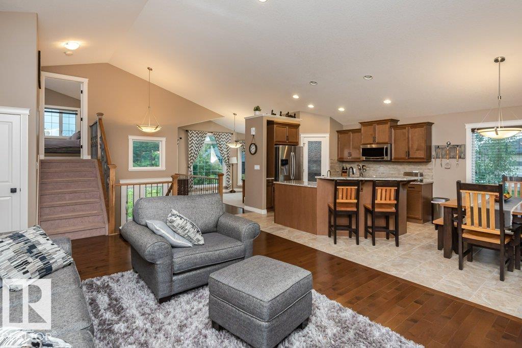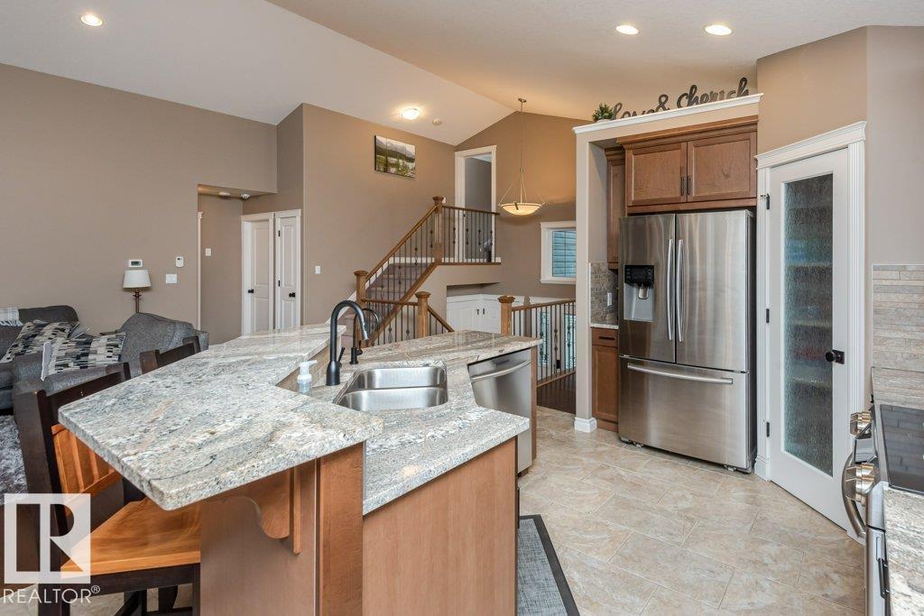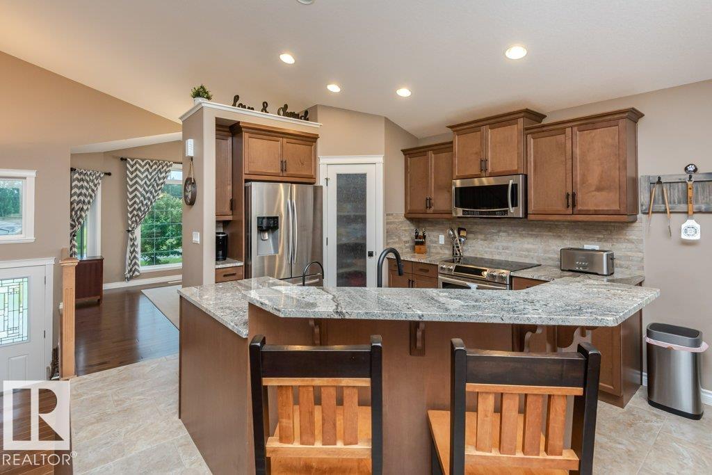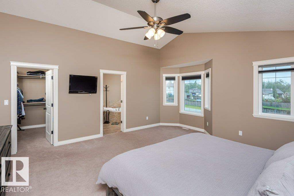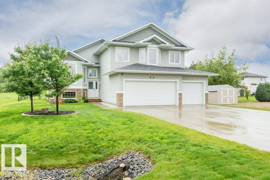 Beautiful bi-level home with a triple-car garage, perfectly situated on a spacious 0.63-acre lot in desirable Landing Trails—backing onto open space with no rear neighbors. Step inside to stunning vaulted ceilings and a bright, open-concept layout. The kitchen features granite countertops and seamlessly connects to the dining and living areas, complete with a cozy gas fireplace. Patio doors lead to a private deck overlooking the fully landscaped backyard—perfect for relaxing or entertaining. The main floor offers two bedrooms, a versatile office/den, and a 4-pc bathroom. Just a few steps up, you’ll find the spacious primary suite with a walk-in closet and a luxurious ensuite featuring a corner jetted tub and separate corner shower.The fully finished basement includes a large rec room, an additional bedroom, a 3-piece bathroom, and a well-equipped laundry room with extra counter space and cabinetry. Additional highlights include RV parking and a heated triple attached garage, with a drive-through third bay (id:6769)