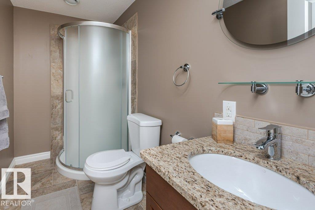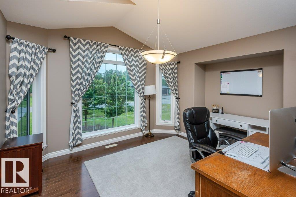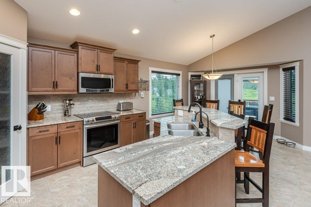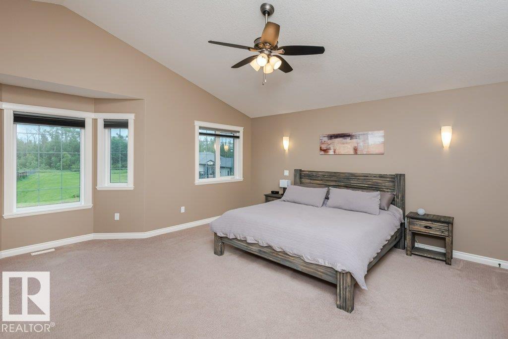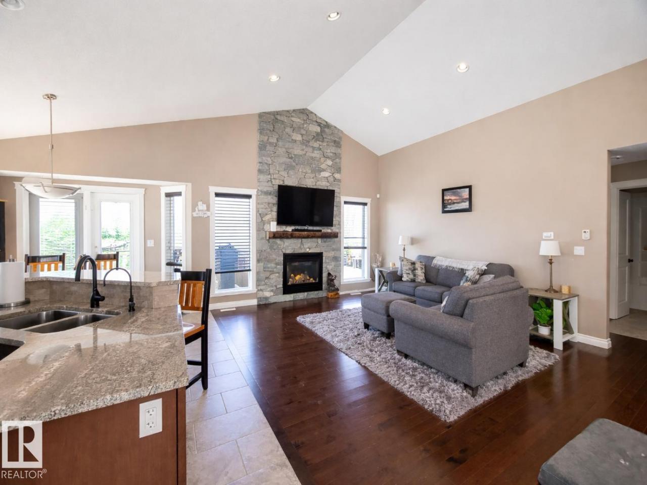 Beautiful bi-level home with a triple-car garage, perfectly situated on a spacious 0.63-acre lot in desirable Landing Trails—backing onto open space with no rear neighbors. Step inside to stunning vaulted ceilings and a bright, open-concept layout. The kitchen features granite countertops and seamlessly connects to the dining and living areas, complete with a cozy gas fireplace. Patio doors lead to a private deck overlooking the fully landscaped backyard—perfect for relaxing or entertaining. The main floor offers two bedrooms, a versatile office/den, and a 4-pc bathroom. Just a few steps up, you’ll find the spacious primary suite with a walk-in closet and a luxurious ensuite featuring a corner jetted tub and separate corner shower.The fully finished basement includes a large rec room, an additional bedroom, a 3-piece bathroom, and a well-equipped laundry room with extra counter space and cabinetry. Additional highlights include RV parking and a heated triple attached garage, with a drive-through third bay (id:6769)