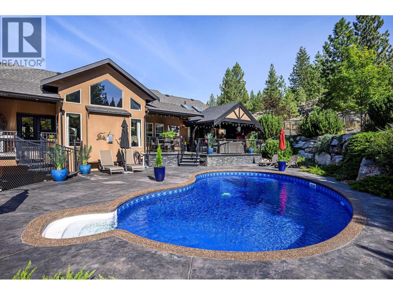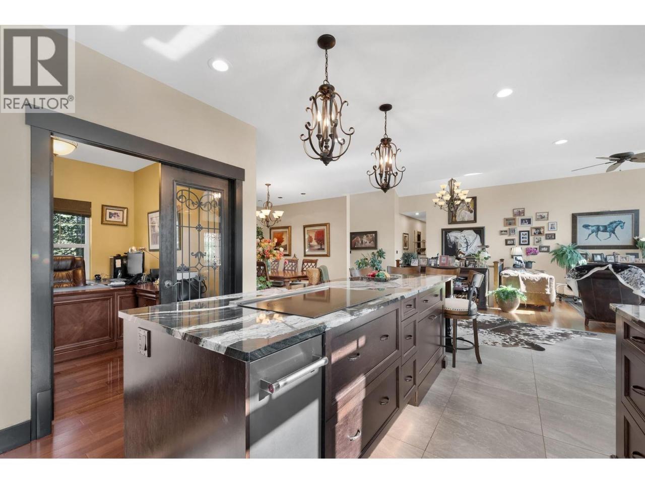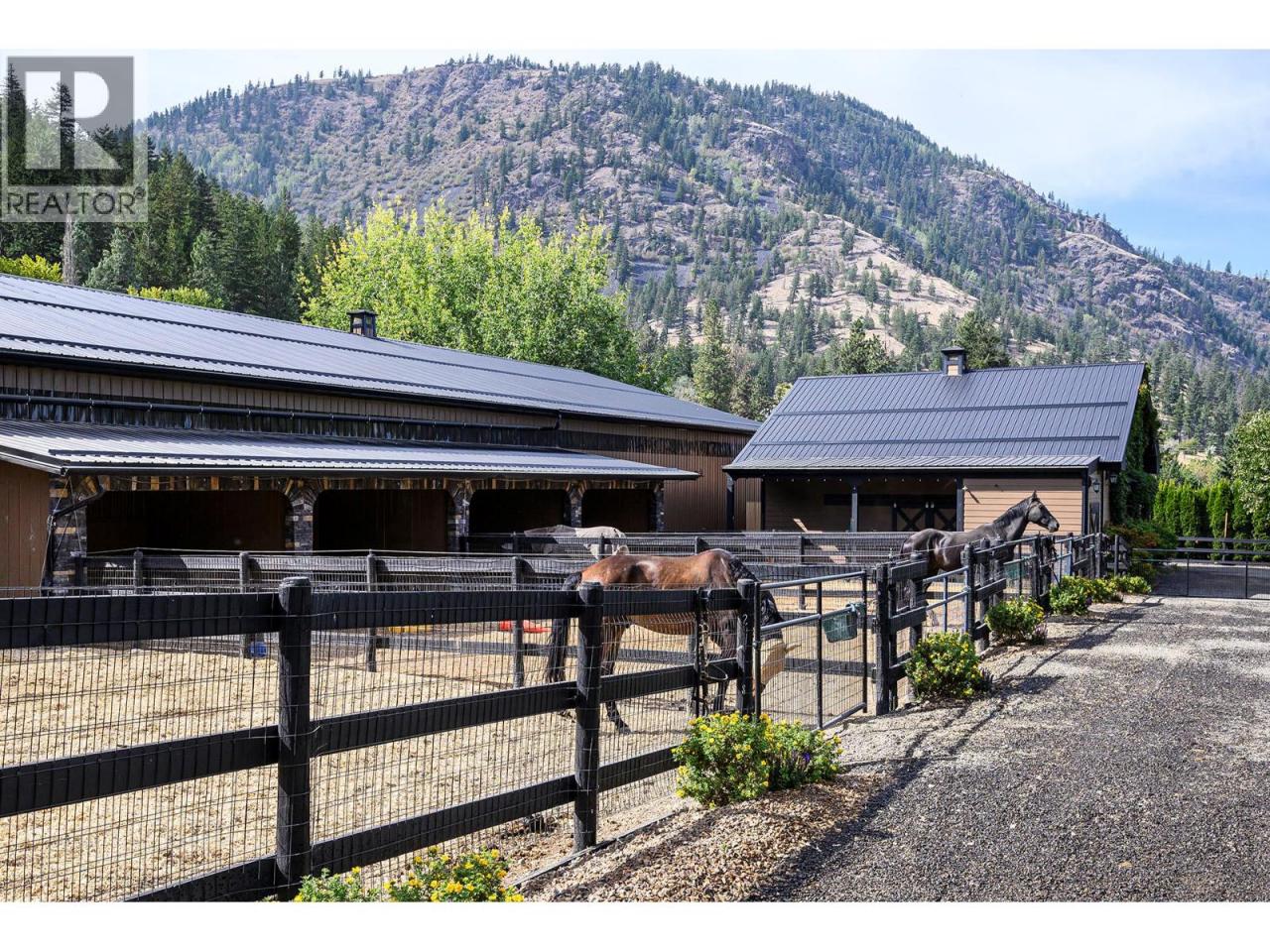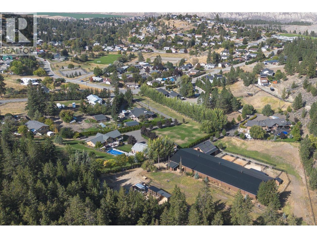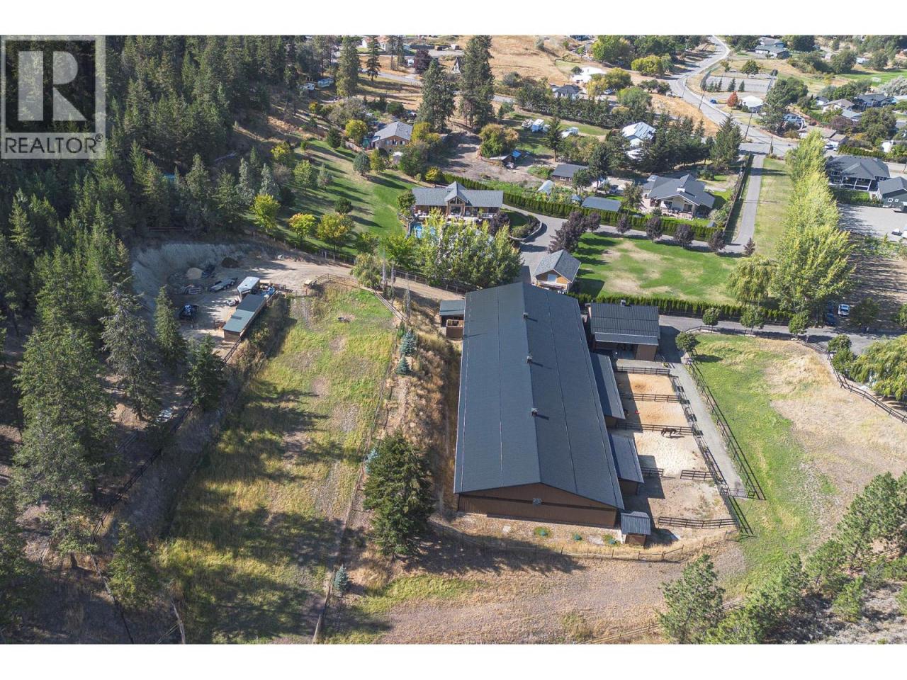 An exceptional opportunity to own a premier equestrian estate offering top-tier living, income potential, and unmatched versatility...all on 16 pristine acres within Kamloops city limits. Designed for both serious equestrian use & lifestyle appeal, the property features a state-of-the-art indoor arena built to competition dressage standards (20m x 60m). The bright, insulated/heated interior offers premium dust-free footing, full-length mirrors, and is ideal for year-round training, clinics, or boarding operations. The thoughtfully designed 3-stall barn includes a spacious foaling stall, insulated/heated interior, rubber flooring with cushioned underlay, and wash rack equipped with advanced red light therapy. Also plans & space for 2 more stalls & arena viewing area from the barn. Above, the loft presents excellent potential for a suite and/or staff quarters, adding flexibility for multi-family accommodation or business use. Fully irrigated & efficiently laid out, the property includes large paddocks with durable, chew-resistant fencing & lush grazing pastures...perfect for maintaining horse health while supporting a professional or boutique equestrian business. The 4,300 sq ft executive home delivers refined comfort with a grand foyer, vaulted ceilings, and an open-concept design. A chef’s kitchen anchors the space, complete with custom cabinetry, granite counters & backsplash, and premium Fisher & Paykel appliances including built-in fridge/freezer, double ovens, double dishwasher, wine cooler, garbage compactor & ice machine. The lower level offers additional value with a spacious family/games room and a self-contained one-bedroom suite...ideal for extended family or on-site staff. Outdoor living is equally impressive, featuring a kidney shaped saltwater pool, expansive patio areas, and beautifully landscaped grounds designed for both relaxation & entertaining. This estate delivers a rare combination of location, infrastructure, & income potential. (id:6769)