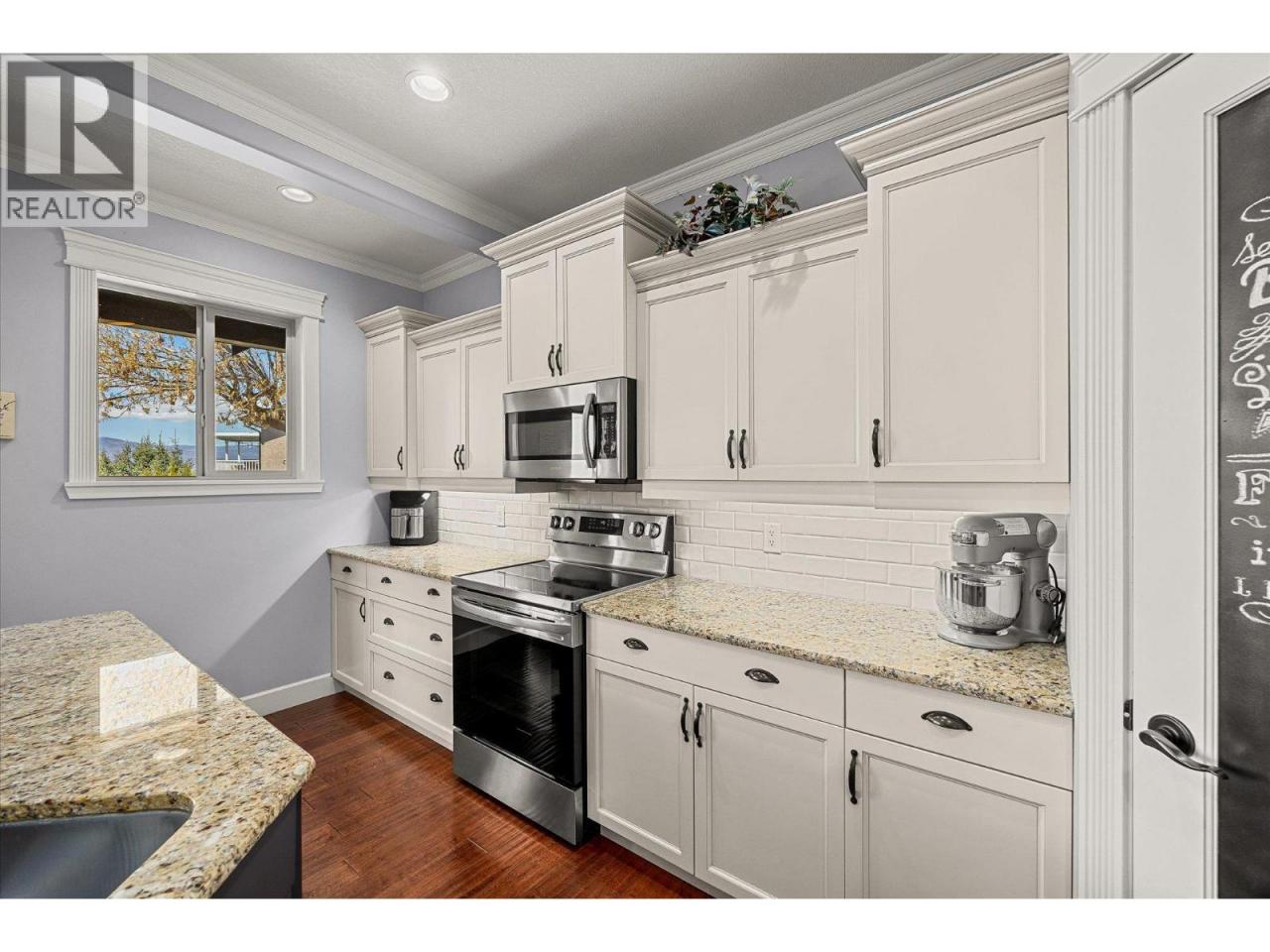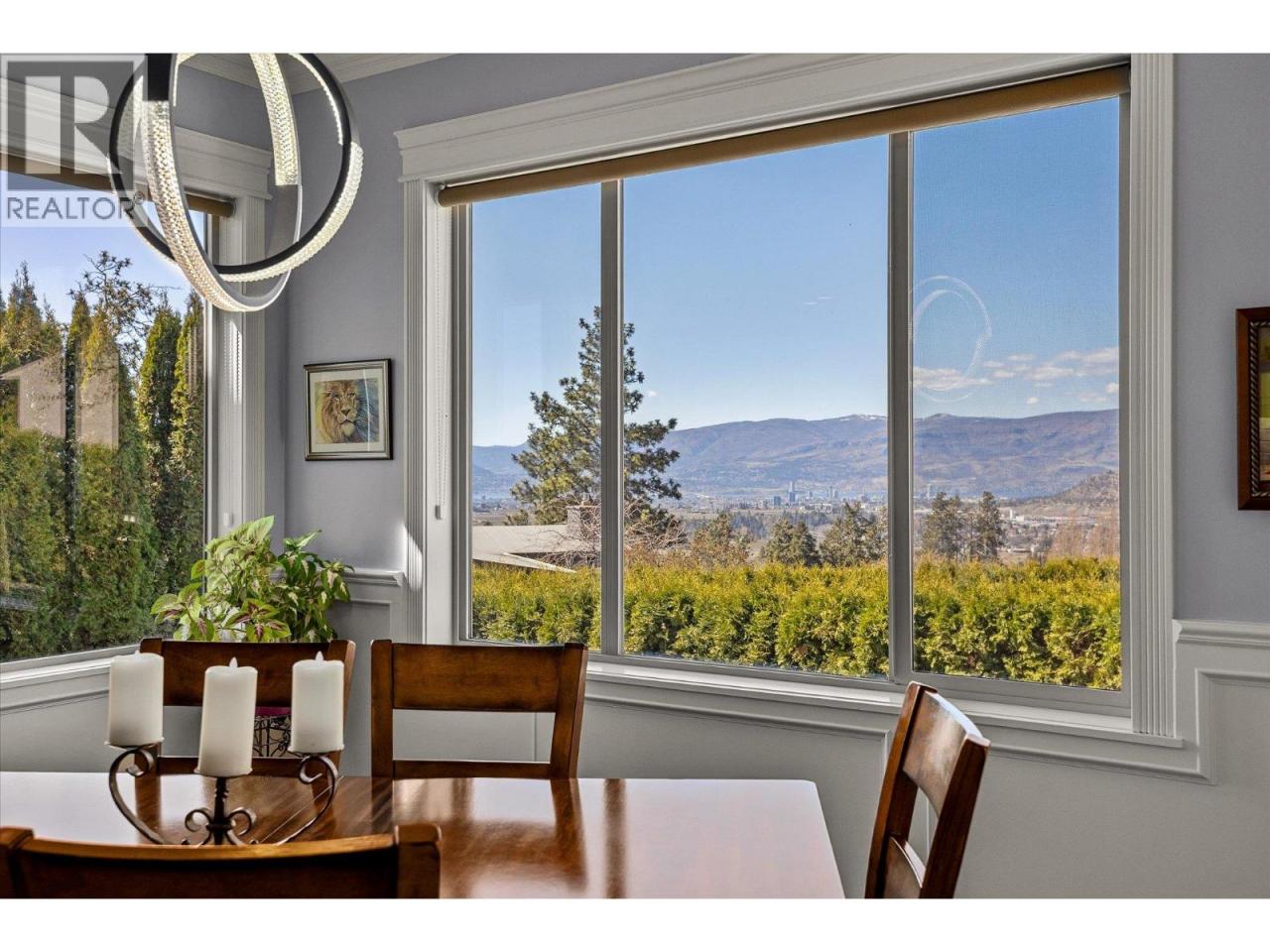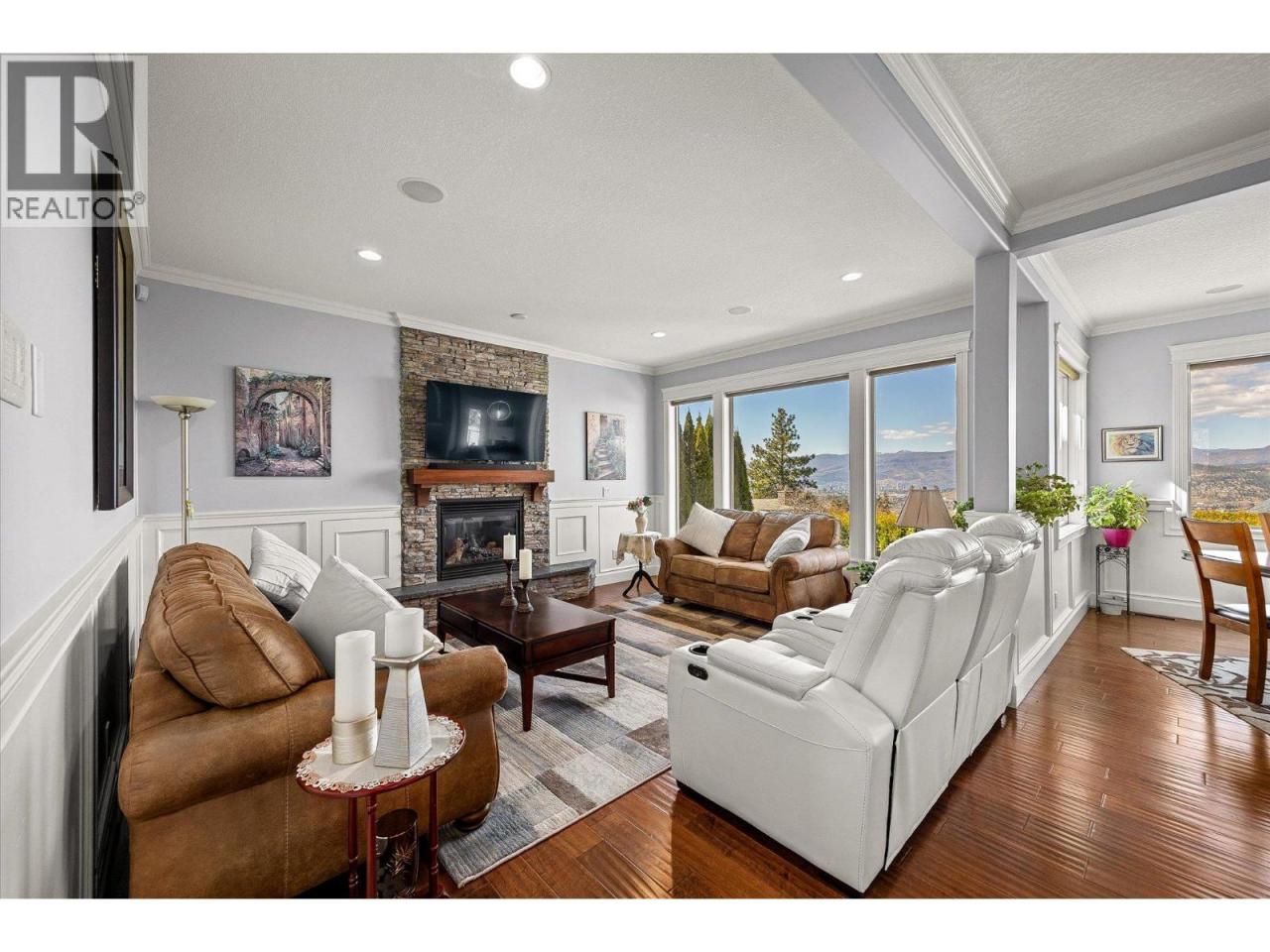 Welcome to this exceptional 4-bedroom + den, 4-bathroom family home, perfectly positioned on a quiet cul-de-sac in the highly sought-after Black Mountain community. Offering a seamless blend of luxury, versatility, and income potential, this property features a beautifully finished 1-bedroom, 1-bathroom in-law suite—ideal for extended family or Airbnb revenue. This home showcases a bright, open-concept layout filled with natural light and big lake views. The inviting living room is anchored by a cozy gas fireplace, while the well-appointed kitchen flows effortlessly into the dining and living areas—perfect for hosting family and friends. The spacious primary suite is a true retreat, complete with a walk-in closet and a luxurious ensuite. Additional bedrooms and a versatile den offer flexibility for growing families. Curb appeal shines with low-maintenance synthetic turf in the front yard. The oversized garage provides ample space for vehicles, tools, and all your Okanagan lifestyle toys. Step out back to your private oasis—featuring a large covered deck, ideal for morning coffee or evening sunsets. The tiered, thoughtfully landscaped backyard offers space to unwind and entertain, and is hot tub ready for year-round enjoyment. Located in a peaceful, family-friendly neighbourhood close to schools, parks, and endless outdoor recreation, this home truly checks all the boxes. Book your private showing today. (id:6769)
