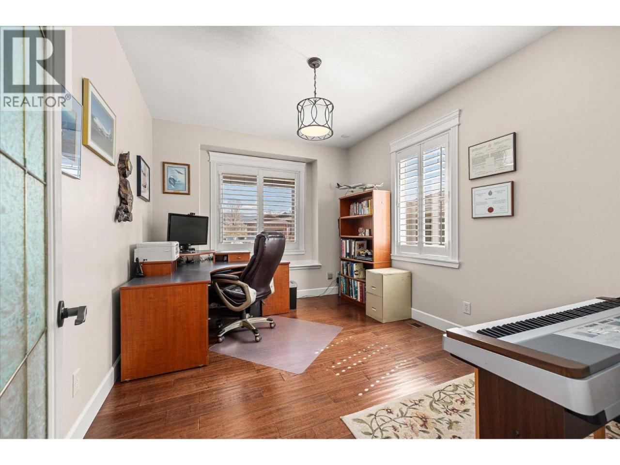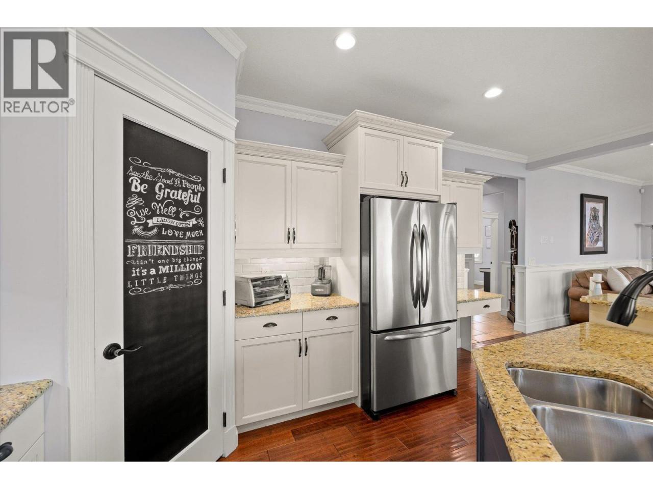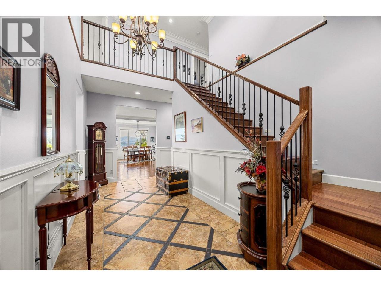 Welcome to this exceptional 4-bedroom + den, 4-bathroom family home, perfectly positioned on a quiet cul-de-sac in the highly sought-after Black Mountain community. Offering a seamless blend of luxury, versatility, and income potential, this property features a beautifully finished 1-bedroom, 1-bathroom in-law suite—ideal for extended family or Airbnb revenue. This home showcases a bright, open-concept layout filled with natural light and big lake views. The inviting living room is anchored by a cozy gas fireplace, while the well-appointed kitchen flows effortlessly into the dining and living areas—perfect for hosting family and friends. The spacious primary suite is a true retreat, complete with a walk-in closet and a luxurious ensuite. Additional bedrooms and a versatile den offer flexibility for growing families. Curb appeal shines with low-maintenance synthetic turf in the front yard. The oversized garage provides ample space for vehicles, tools, and all your Okanagan lifestyle toys. Step out back to your private oasis—featuring a large covered deck, ideal for morning coffee or evening sunsets. The tiered, thoughtfully landscaped backyard offers space to unwind and entertain, and is hot tub ready for year-round enjoyment. Located in a peaceful, family-friendly neighbourhood close to schools, parks, and endless outdoor recreation, this home truly checks all the boxes. Book your private showing today. (id:6769)