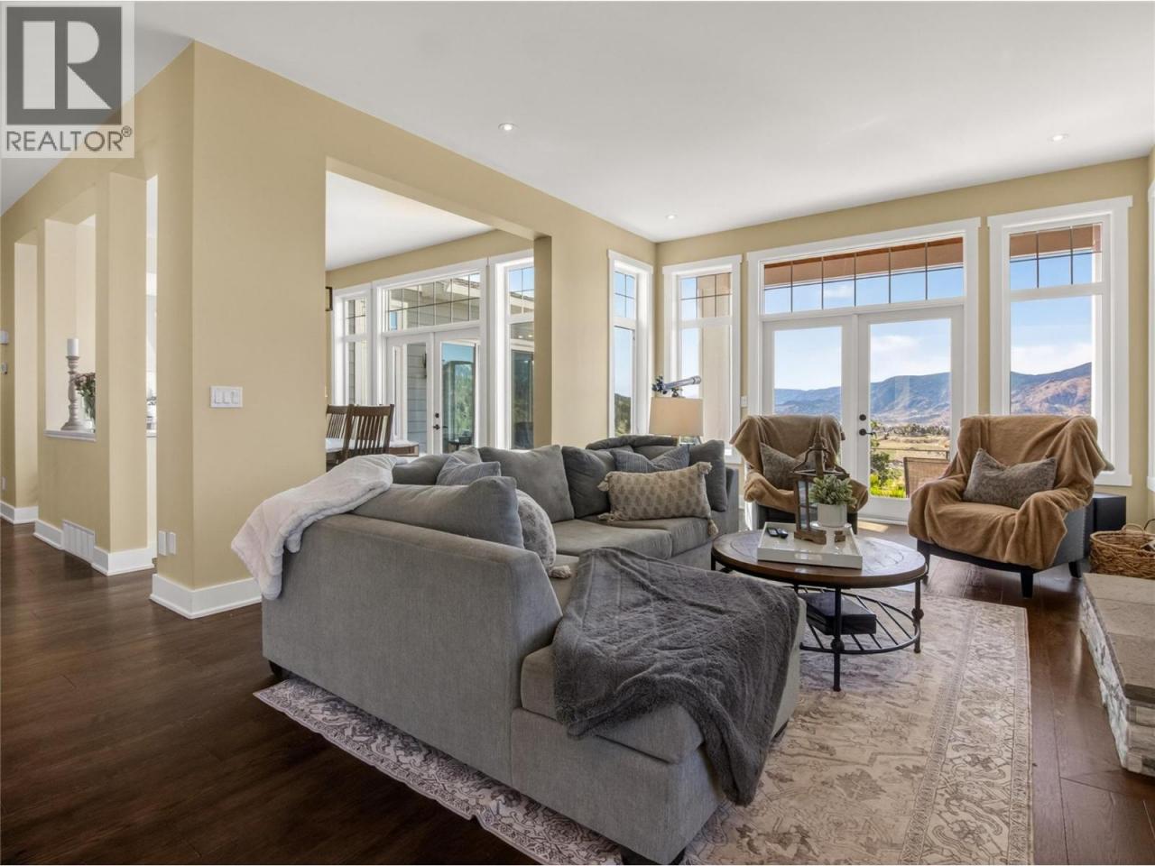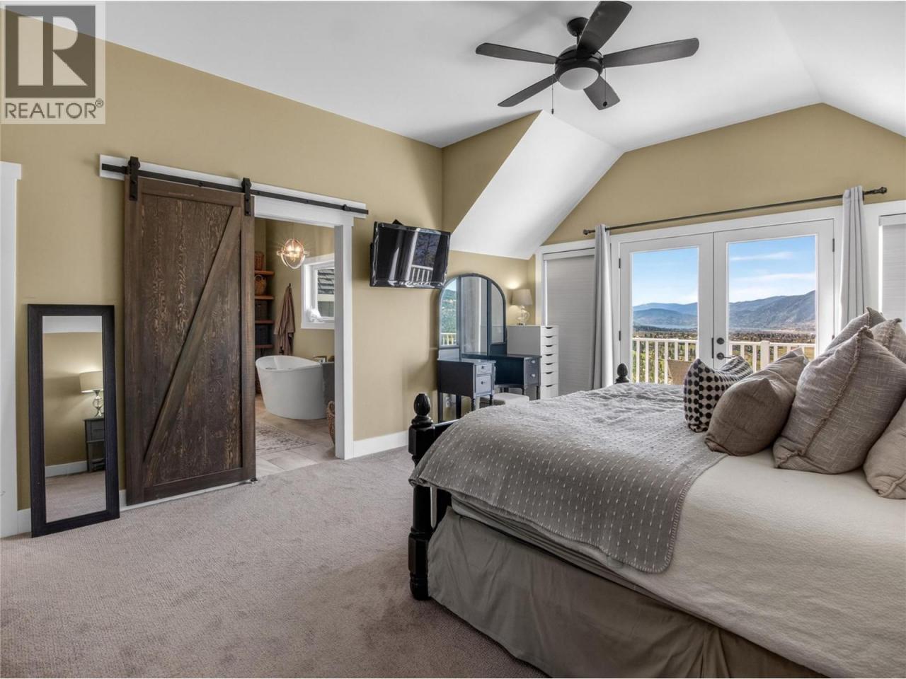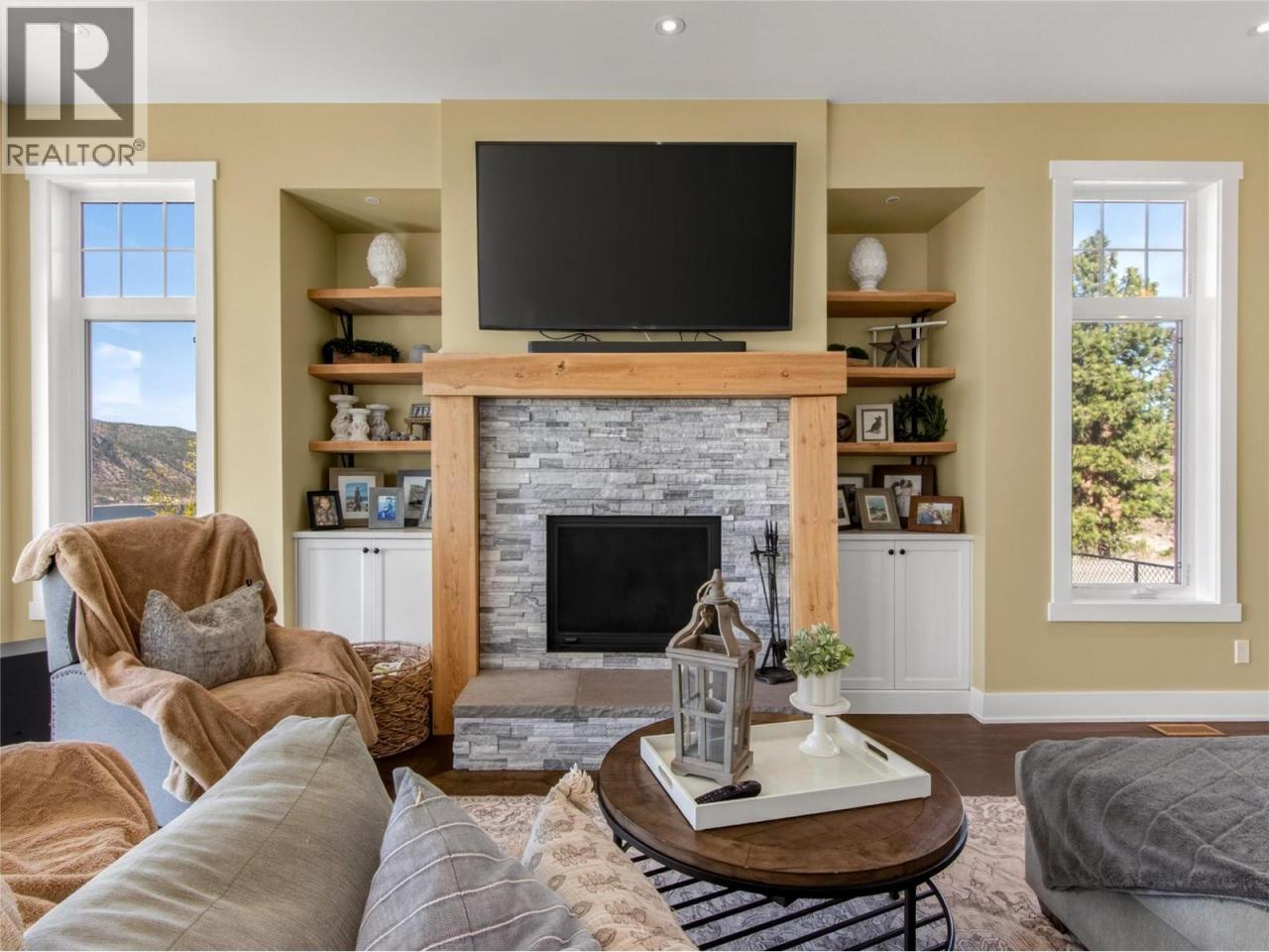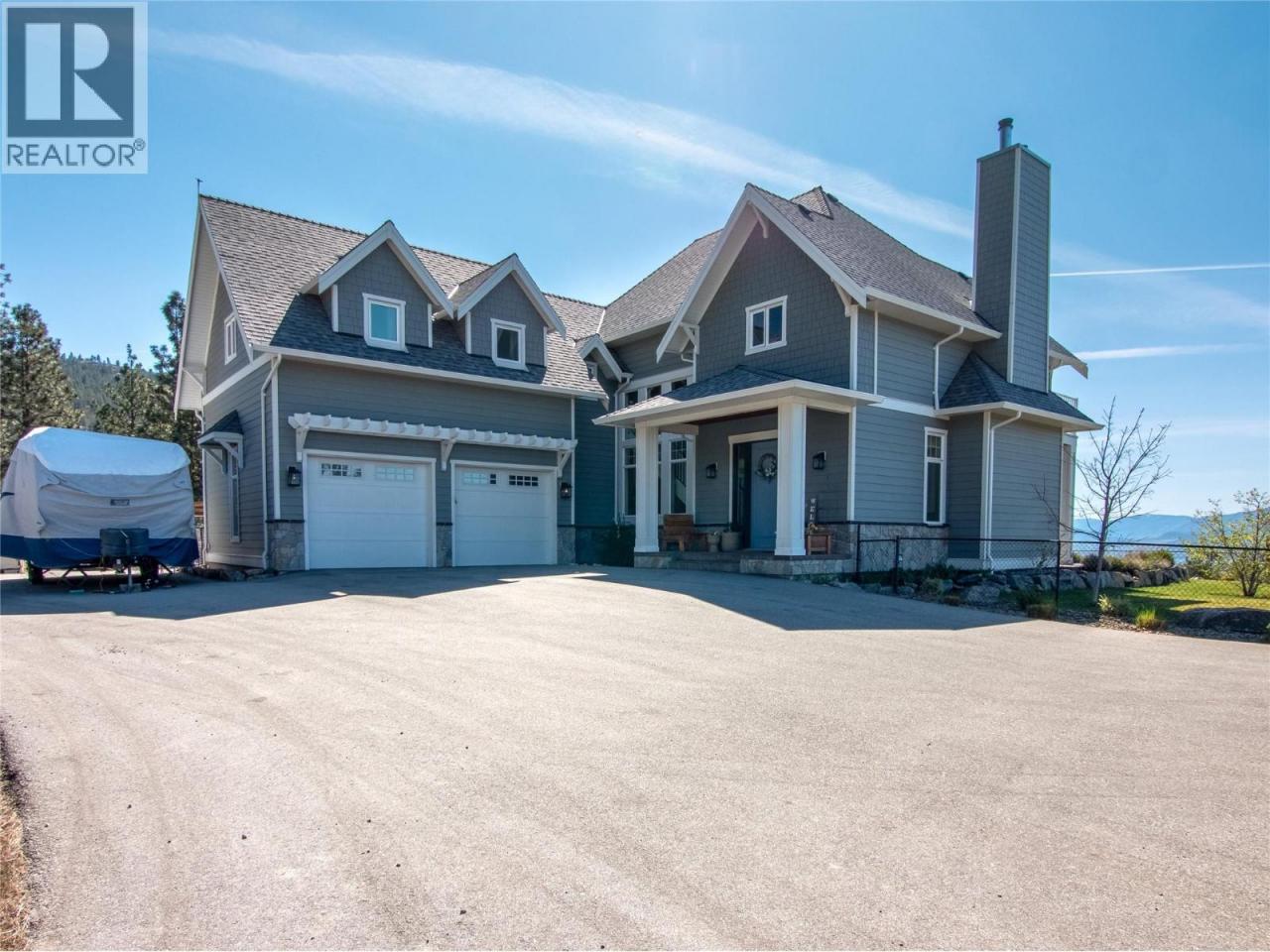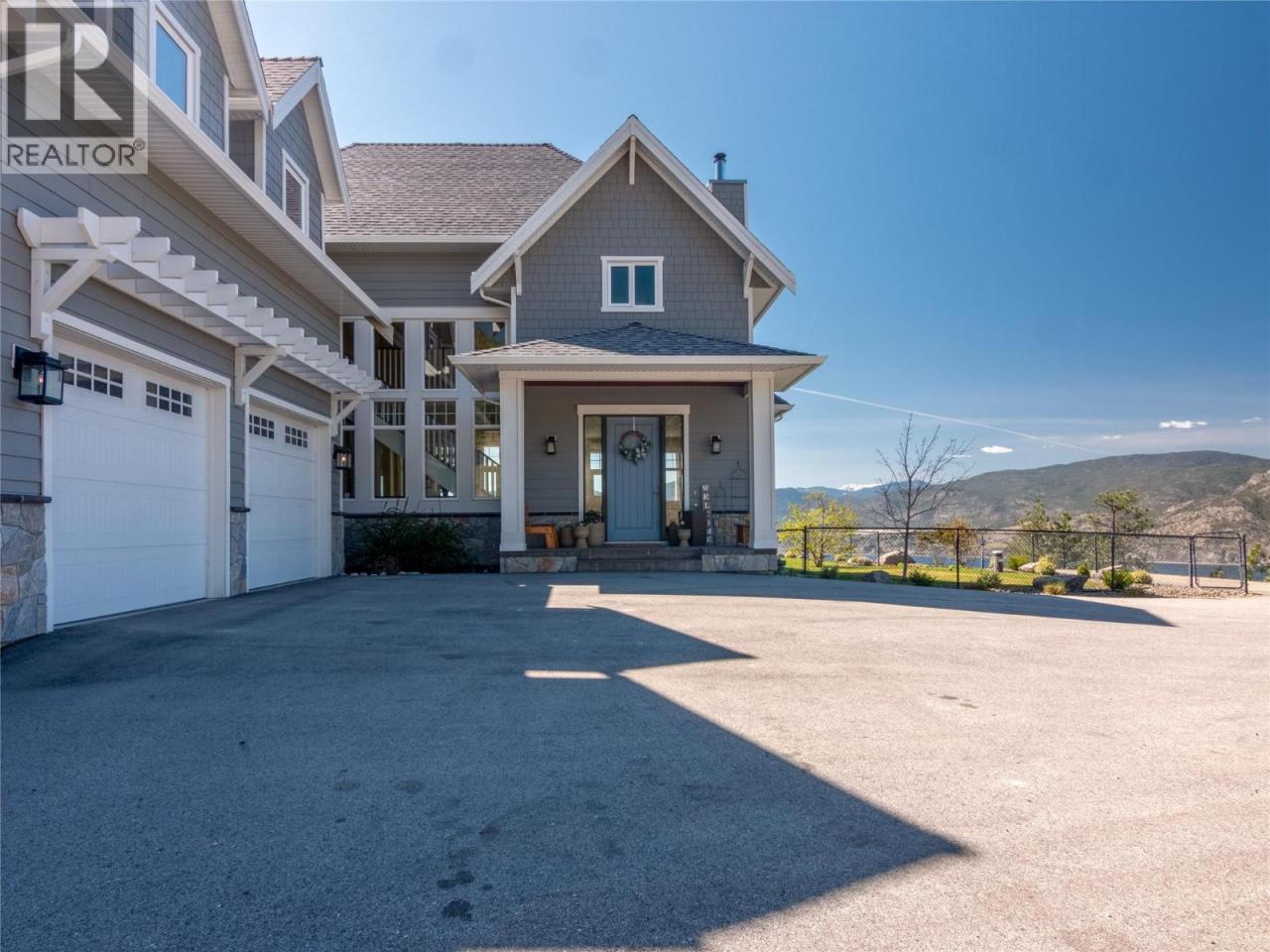 Perched above the Naramata Bench sits this once in a lifetime, completely private, legacy property on 17.15 acres with epic views! Built in 2016 this 4386sqft home has 4 bedrooms & 4 bathrooms with views from every window. As you enter the home you’ll notice the 10’ ceilings, hardwood floors, natural light, & views. The large living room has a stunning Guillotine door wood fireplace, the gorgeous dining room has built ins, & both rooms have doors out to the beautiful front patio. The classic farmhouse style kitchen features quartz counters, gas stove, center island, tons of cabinetry, & access out to the South facing deck with BBQ adjacent to the kitchen garden beds. Off the kitchen is a 2nd family room with a cozy propane fireplace & 2 sets of patio doors for indoor/outdoor living. The upstairs has 10’ ceilings, laundry, a large guest room, huge kids room that could be divided into two, and the stunner primary suite complete with walk in closet, gorgeous ensuite with soaker tub and shower & double vanities + a private deck to take in the sunsets. The ICF basement has 9’ ceilings & features a rec room big enough for a pool table, a blaze king wood stove, & a wine bar. Theres also a 4th bedroom, bathroom, & an office. The irrigated yard has about a .5 acre fenced with garden beds & a chicken coop, plenty of room for a pool, + 2 acres behind the house in a field. Live with total privacy & access to three blind mice bike park, frisbee golf, KVR, 3 Mile Beach & pump track. (id:6769)