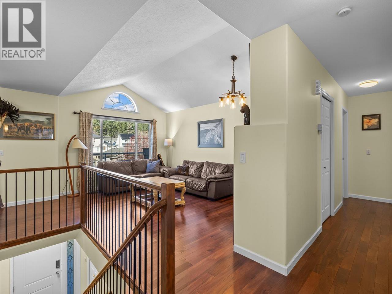 Tucked away at the end of Rio Drive South in a quiet cul-de-sac, this beautifully situated home backs directly onto parkland with access to scenic nature trails and Knox Mountain Park. Offering a bright and open-concept layout, this property features 3 bedrooms plus a den (easily a 4th bedroom), with vaulted ceilings and an abundance of natural light throughout. The main living area is warm and inviting with a cozy gas fireplace, while the kitchen is designed for both function and entertaining, complete with an island and eating bar. The spacious primary bedroom includes charming garden doors leading to the expansive front deck, perfect for enjoying your morning coffee or evening sunsets. The lower level offers a comfortable family room and a generously sized office space, ideal for working from home. Step outside to a low-maintenance yard that seamlessly connects to nearby hiking and biking trails. Additional highlights include a double car garage, ample extra parking with room for an RV, and a sought-after Glenmore location close to schools, shopping, dining, and everyday amenities. A perfect blend of comfort, convenience, and outdoor lifestyle! (id:6769)