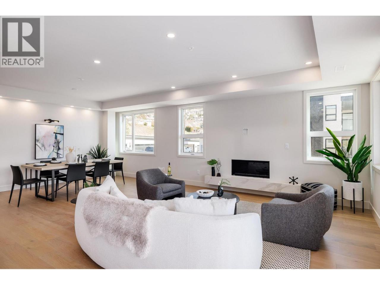 Welcome to McKay Grove, an exclusive collection of lakeview townhomes and condominiums set into the peaceful hillside of Peachland, just steps from Okanagan Lake, beaches, trails, and local shops. This level home has a private outside entrance and offers just under 1,900 sq ft of single-level living with 3 bedrooms and 2 bathrooms, designed for both comfort and function. From the moment you walk in, you’re greeted by warm, modern finishes and a bright, open layout, with expansive windows that fill the home with natural light and showcase stunning lake views. The main living area opens onto a massive covered private deck, creating a seamless indoor-outdoor space for relaxing, entertaining & taking in the beautiful views. Featuring the finest designer finishes, fixtures, and appliances, this home creates an unmistakable sense of comfort, welcome, and luxury. From engineered hardwood floors and Dekton-clad professional kitchens to Italian-imported custom millwork with integrated Fisher Paykel appliances, every detail has been carefully considered. Each home includes its own separate, secure full-size double garage with EV-ready rough in offering true convenience, storage, and peace of mind. Built with durable, low-maintenance materials & offering elevator access, visitor parking, & pet-friendly (2 pets allowed) , . McKay Grove is for the sophisticated buyer who wants better than average. This is a MUST SEE , Move-in ready and designed to make the most of Okanagan living. (id:6769)
