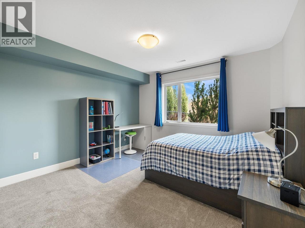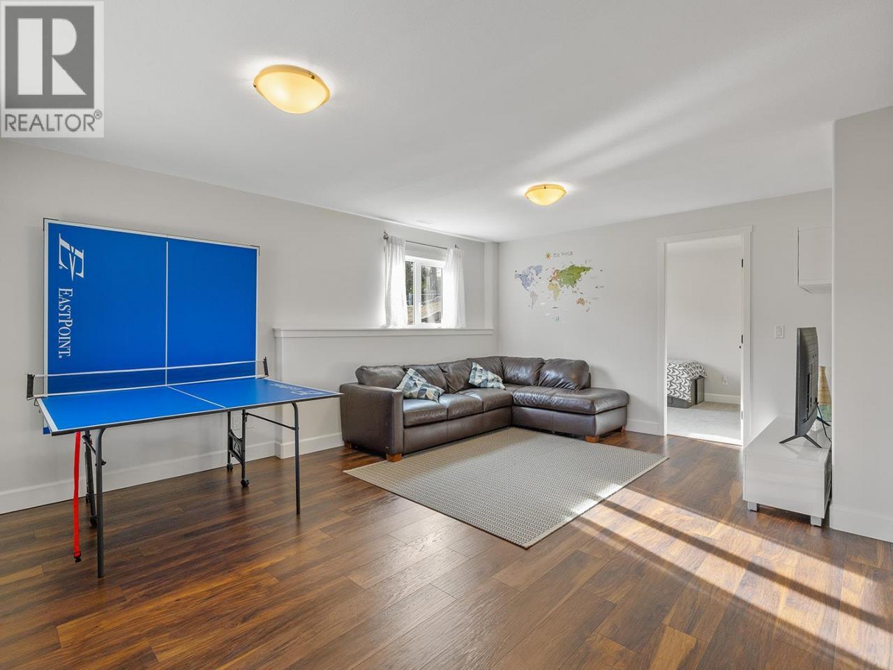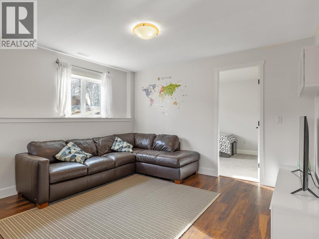 Mountain views and a cul-de-sac address in Black Mountain, this 4-bed, 3-bath walkout rancher in the Blackstone complex delivers low-maintenance living without compromise. The main floor flows through a bright living and dining area with vaulted ceilings and a gas fireplace, opening to a covered deck where the valley and mountain views take centre stage. The kitchen features quartz countertops, a gas range, and an island, built for the way you actually cook and entertain. The primary suite includes a full 4-piece ensuite, with a second bedroom, full bath, and main floor laundry rounding out the main level. Downstairs, the fully finished walkout basement, with its own separate side entrance, adds two more bedrooms, a large rec room, full bath, and generous storage, ideal for guests, teens, or a home office. Outside is a fully fenced landscaped yard with underground irrigation, stone and vinyl exterior, and a double attached garage with two additional uncovered stalls. Steps away from Black Mountain Golf Course, parks, hiking trails, schools, and transit. No thru street. Move-in ready. (id:6769)