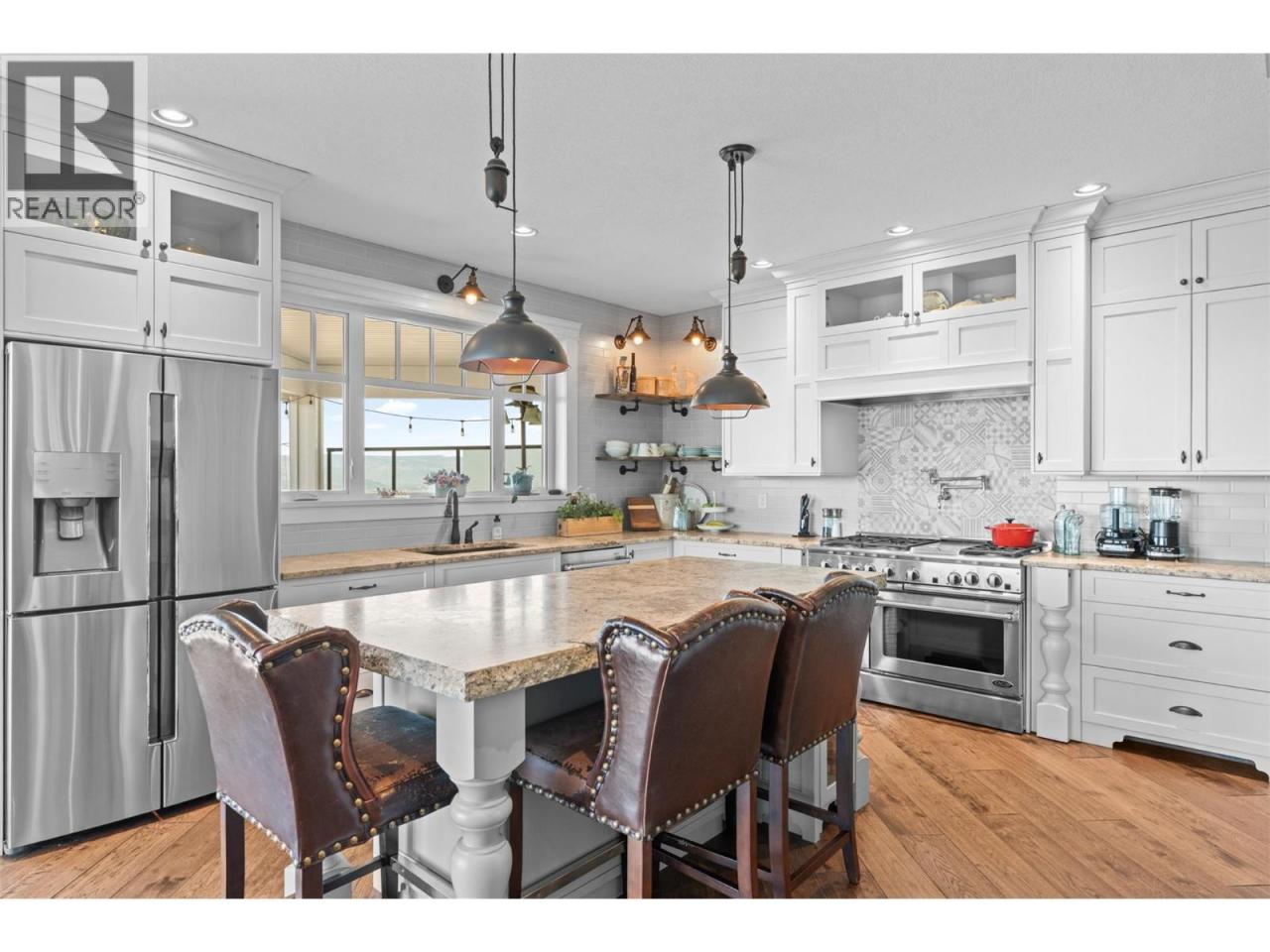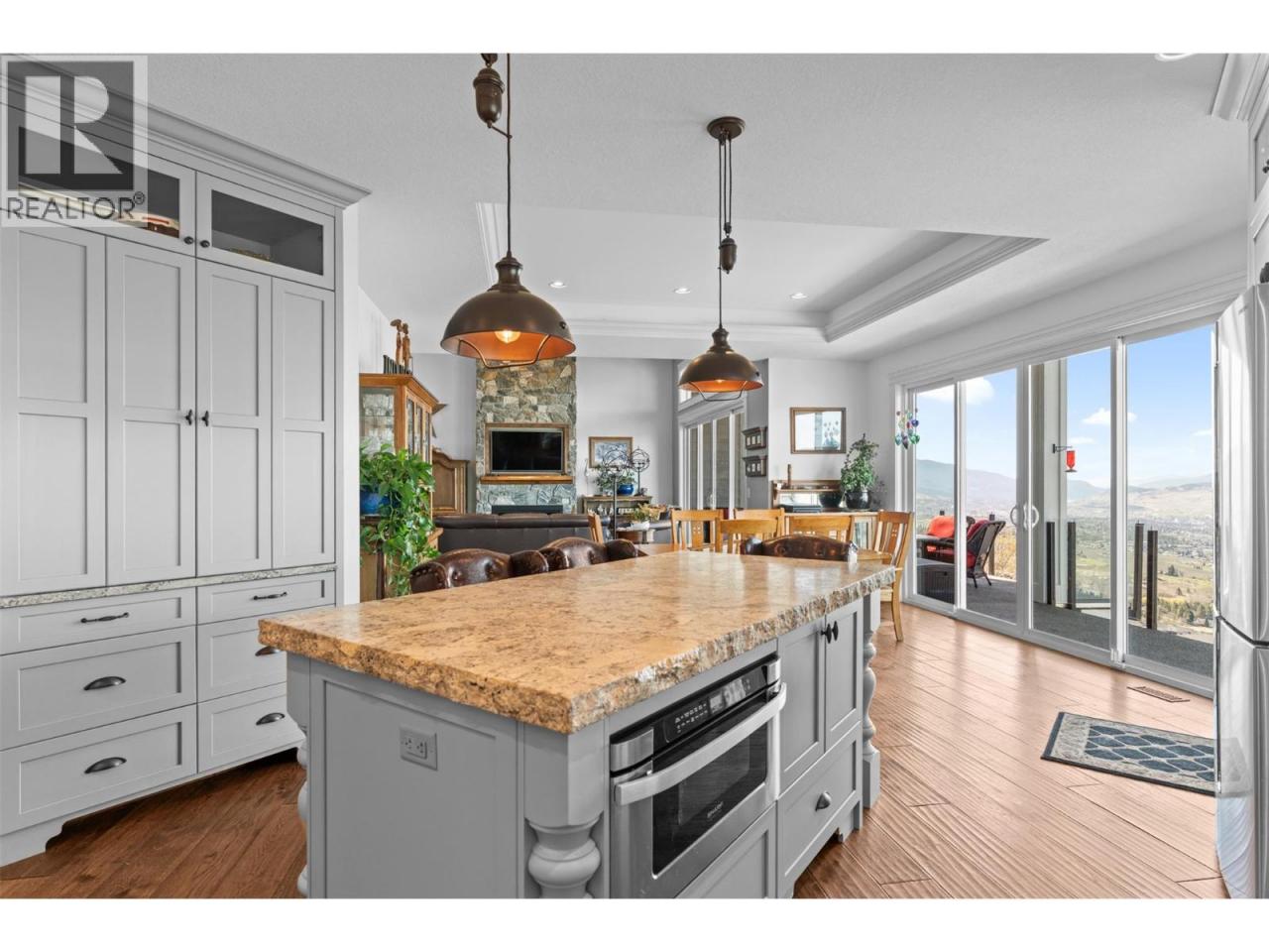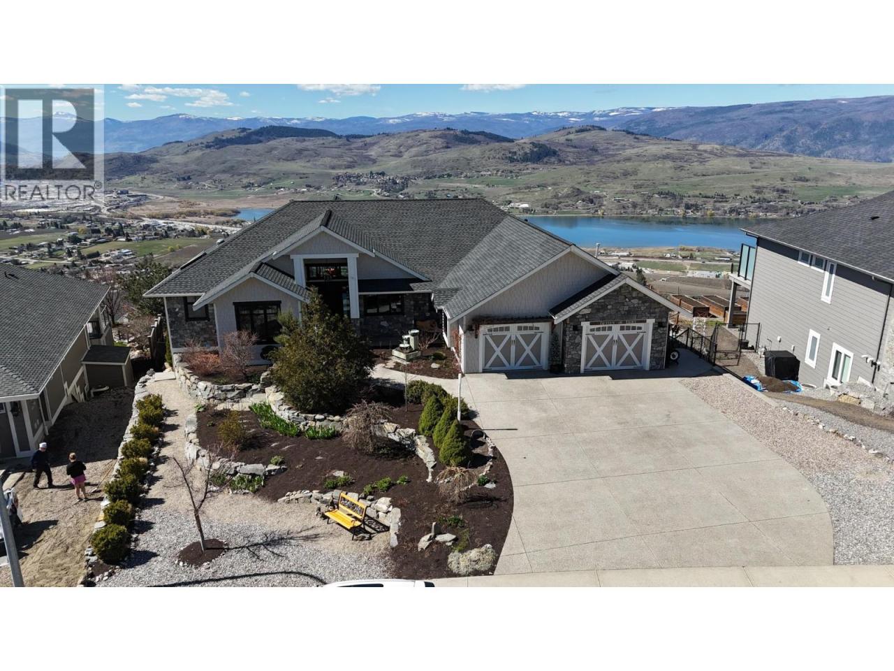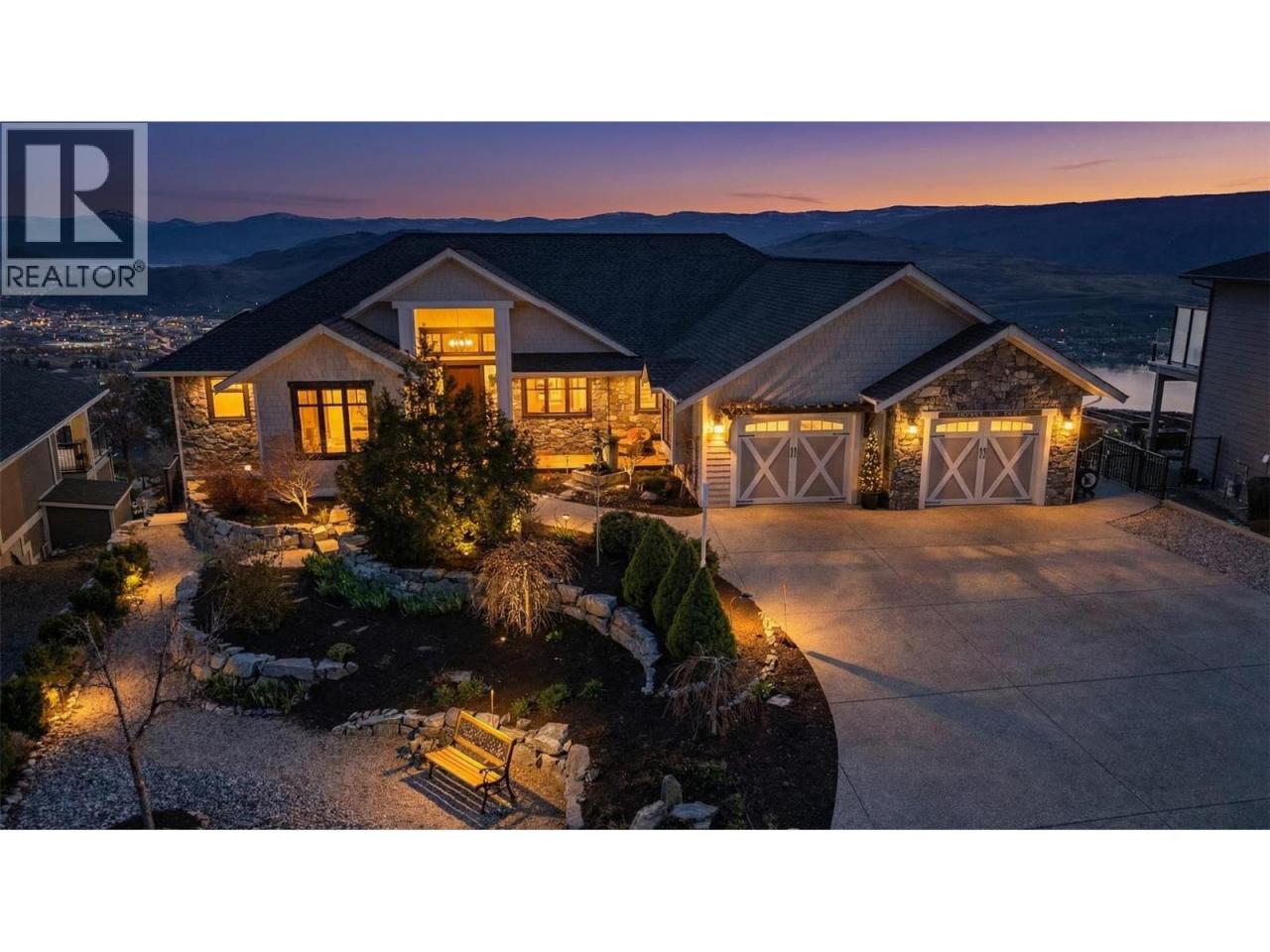 What a Masterpiece! Exceptional 5000sqft, 5 bed, 4 bath home offering stunning views of three lakes, surrounding mountains, and valley from nearly every room. Ideally positioned on one of the most desirable lots, perched away from neighbouring homes to fully capture its elevated setting and panoramic scenery. Bright open-concept design features 16-ft vaulted ceilings in the living room, tray ceilings in the dining area, exposed beams, a wall of windows, and two oversized sliding glass doors showcasing the breathtaking views. Chef’s kitchen includes a 6-burner gas stove, double oven, custom cabinetry, walk-in pantry with stand-up freezer, and built-in spice racks. Spacious living area anchored by a stone fireplace. The master bedroom offers incredible lake views, tray ceilings, large walk-in closet, and a luxurious 5-piece ensuite with heated tile floors. Mudroom includes a dog wash station. Walkout lower level features a rec space, live-edge bar, fireplace, and a soundproofed self-contained 2-bedroom suite that has a license for Airbnb. Low-maintenance landscaped yard with underground sprinklers, Sierra stone decks, and natural gas hookup. OVERSIZED GARAGE 45-ft long! Additional features include LED lighting, heated tile floors, gas dryer hookup, auto exterior lighting, and reinforced trusses with raceway for future solar. Call the listing agent to book your showing today! *OPEN HOUSE THIS SATURDAY APRIL 18TH 12-2* (id:6769)