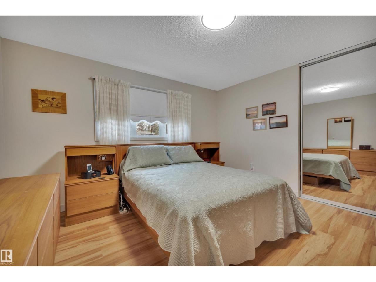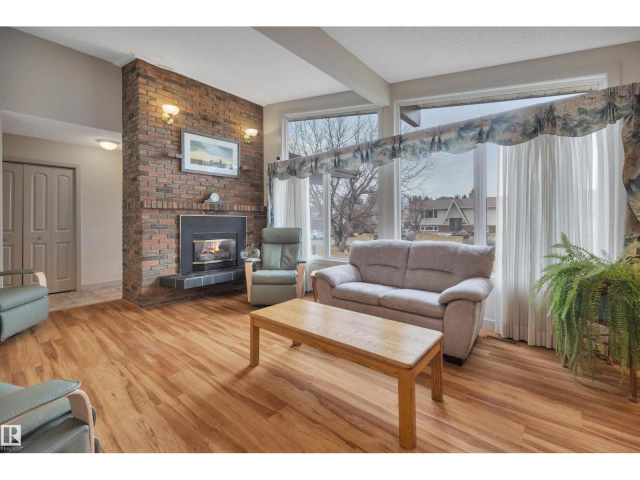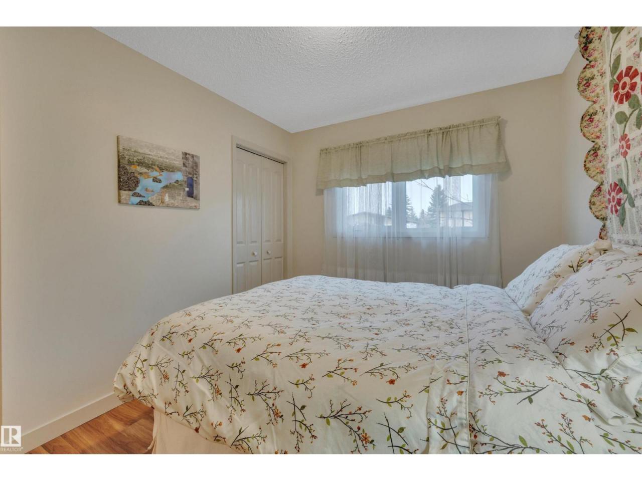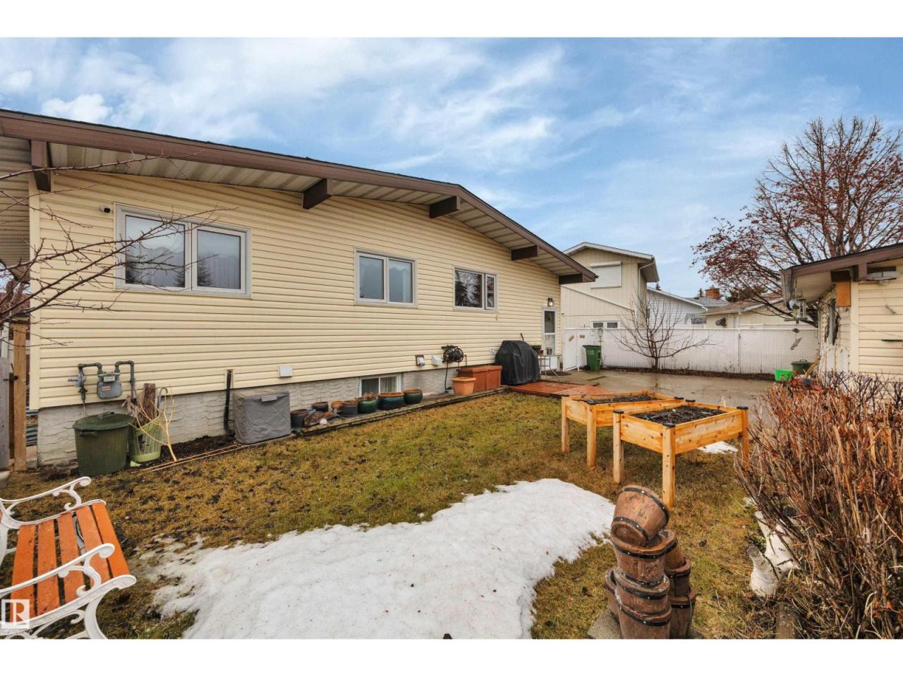 BEAUTIFUL TURN-KEY OPEN BEAM BUNGALOW WITH VAULTED CEILING! FINISHED TOP TO BOTTOM! This home is a TOTAL WOW. 1335 SF of gorgeous living space. Located on a KEYHOLE CRESCENT with an easy quick drive to the ANTHONY HENDAY or the WHITEMUD freeways - a perfect PRIVATE ULTRA CONVENIENT LOCATION. Truly loved - this south facing home has been meticulously upgraded and cared for over the years. EXTENSIVE UPGRADES include: AIR CONDITIONING (2013)/NEWER WINDOWS THROUGHOUT (2013)/TWO GAS INSERTS IN THE BRICK FIREPLACES BOTH UP AND DOWN/HIGH EFFICIENT FURNACE & HOT WATER (2020)/INSULATION & SIDING (2010)/HOUSE AND ROOF SHINGLES (approx. 2021)/BBQ GAS LINE/LUXURY VINYL PLANK AND TILE FLOORING (2017)/FRESHLY PAINTED... OMG! Oversized garage at 23' X 22'. THREE BEDROOMS UP + THREE FULL BATHS including a 3 piece ensuite. You can make two more bedrooms in the basement if you add egress windows. NEW handrails & brick planter. The lower level also offers a lovely rumpus room with loads of storage. This is a RARE GEM. (id:6769)