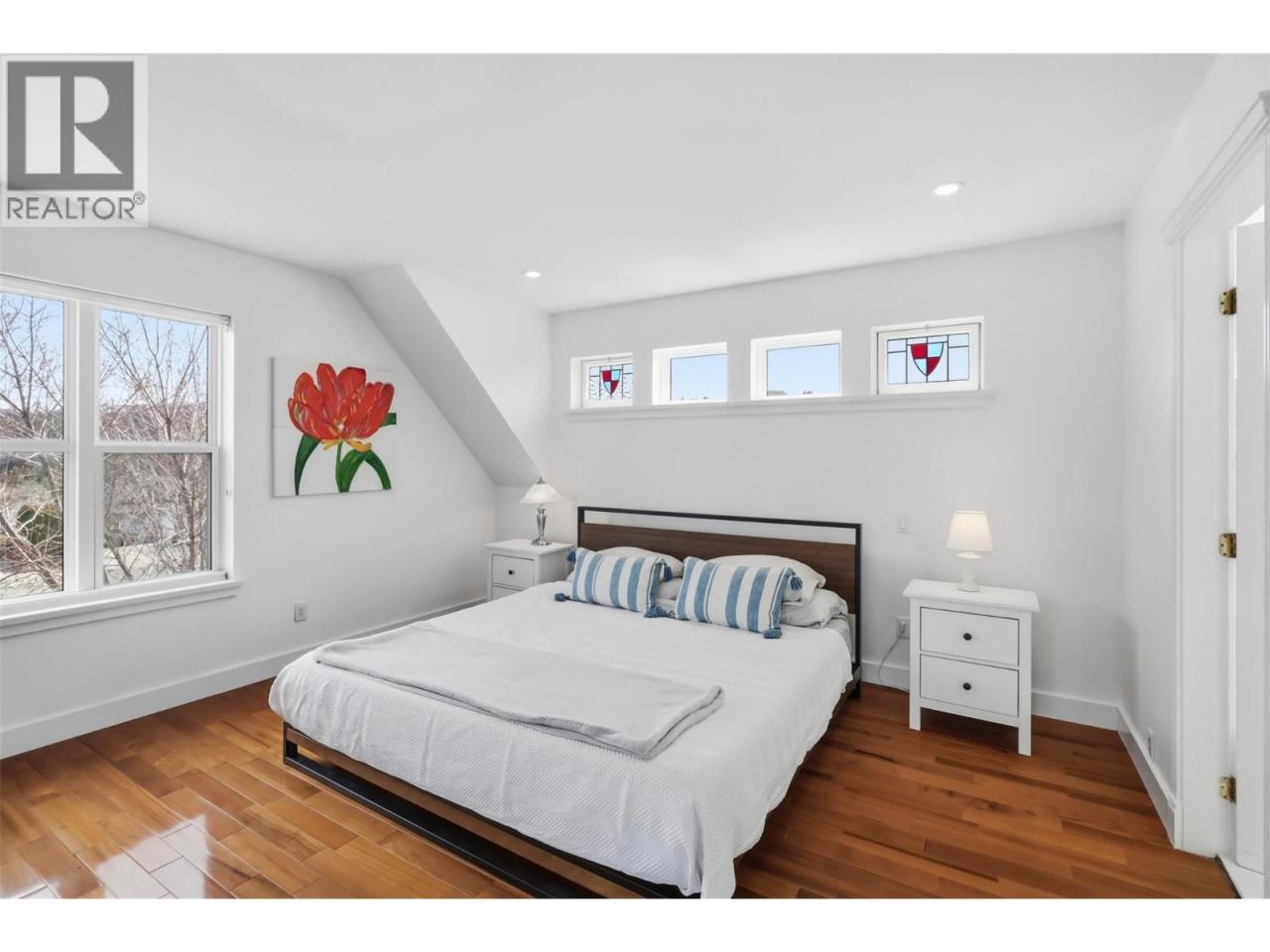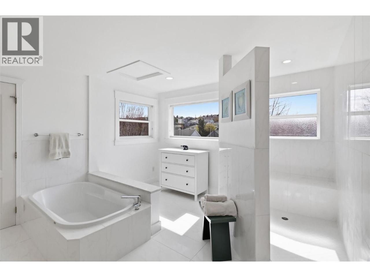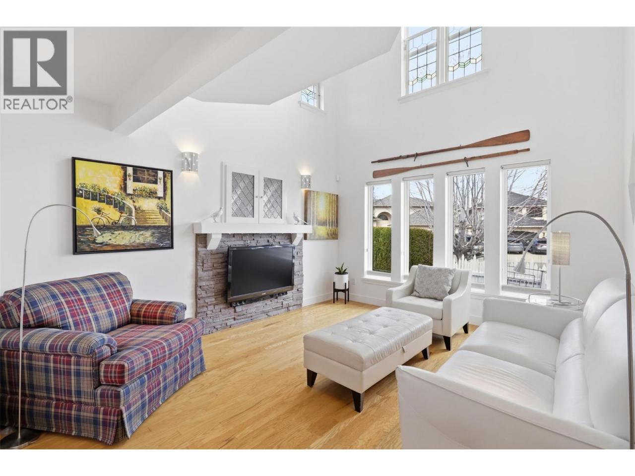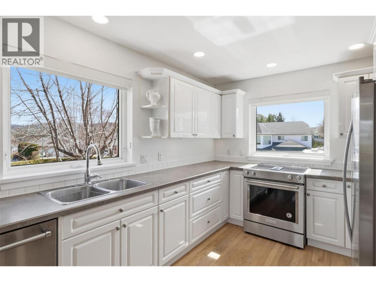 Stunning Upper Sahali home on a quiet cul-de-sac with exceptional curb appeal. Enter through a gate and white picket fence into a bright, window-filled space. Substantially renovated in 2016, the open floor plan connects the kitchen, family room, and dining area seamlessly. The family room overlooks gorgeous park-like landscaping, while the living room boasts a gas fireplace, high ceilings, and stained glass accents. Two large bedrooms and a 4-piece bathroom complete the main level. The top floor features a versatile nook ideal for crafting or a home office, leading to a stunning primary suite with a large ensuite including a soaker tub, walk-in tile shower, and walk-in closet. An adjoining flex room is perfect as a nursery, office, or additional living space with lovely views. The lower level offers a second family room with gas fireplace, laundry, storage, a 2-piece bathroom, and access to the double garage. The professionally landscaped yard by Lyons Landscaping features an 11-zone irrigation system and exceptional privacy - like having your own private park! Walking distance to McGowan Elementary and water park, a 5-minute drive to Sahali Secondary, and steps to the bus stop. Easy access to uptown amenities and shopping. Day before notice required for showings. (id:6769)