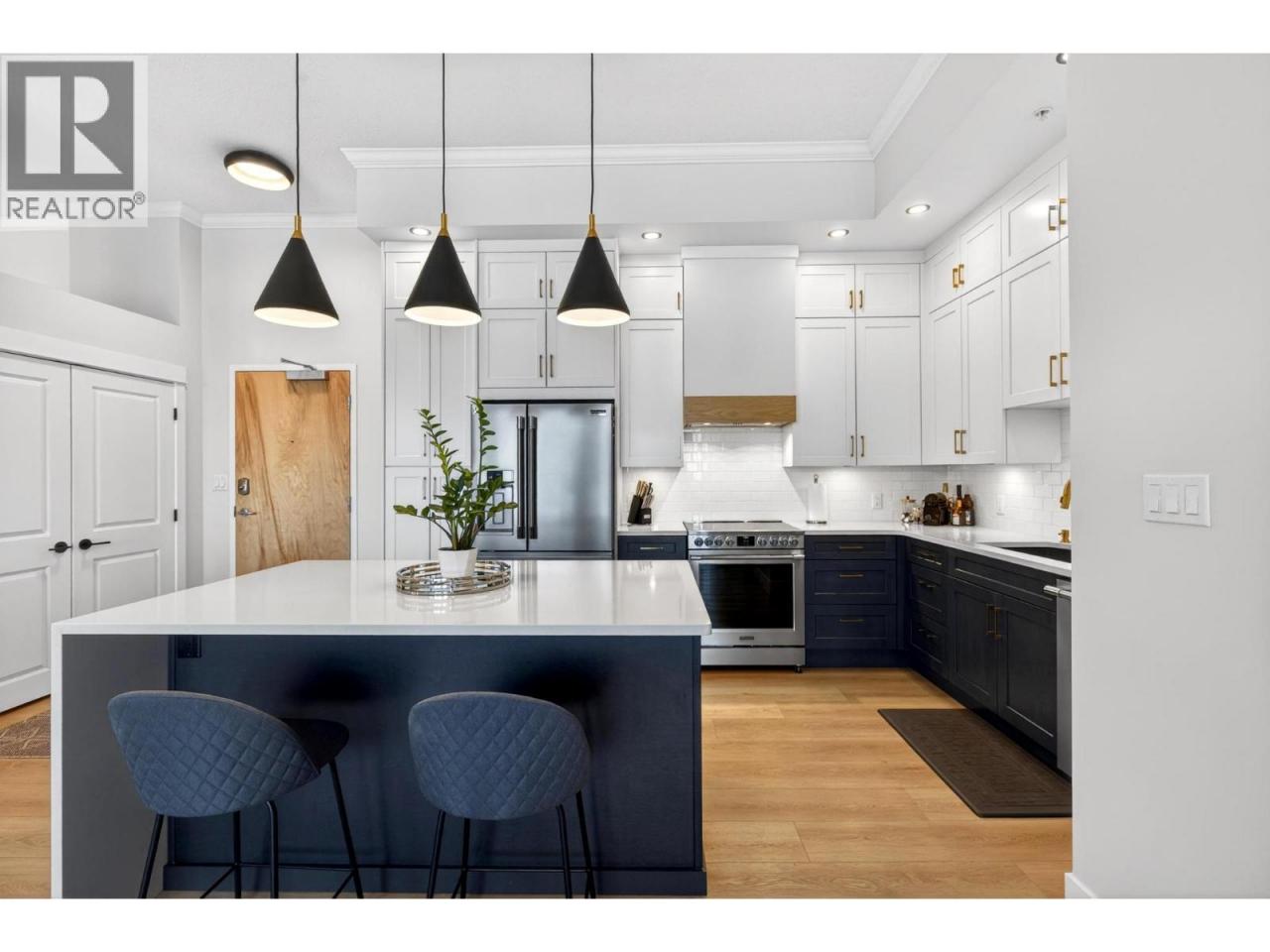 Welcome to #502, an elevated take on downtown living in one of Kelowna’s iconic concrete residences, The Lofts, set in the heart of the Cultural District. This fully renovated 5th-floor residence offers over 1,300 sq. ft. of bright, open living with lake and city views that reflect the Okanagan lifestyle. With only five homes per floor, enjoy a quiet, boutique feel within a vibrant urban setting. Over $160,000 in renovations have transformed this home into a refined, move-in ready space. The redesigned kitchen features new cabinetry, updated appliances, and a quartz island with matching countertops—blending function with a clean, modern aesthetic. New lighting, paint, baseboards, and fully redone bathrooms—including the main and ensuite—carry a consistent level of finish throughout. The primary suite is complemented by a custom walk-through closet with built-ins. Soaring 11-foot ceilings, exposed concrete, and expansive windows create a bright, airy space that feels both modern and timeless. The layout offers flexibility for both everyday living and entertaining. Step outside and enjoy walkable access to beaches, restaurants, cafes, and the waterfront. Residents of The Lofts enjoy a fitness centre and social room, along with secure parking, a storage locker, and generous in-unit storage. A rare opportunity in a building known for its design, scale, and location. Book your showing today! (id:6769)