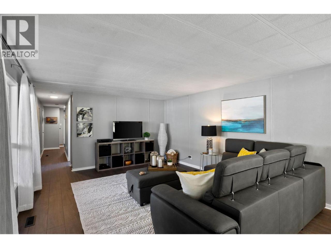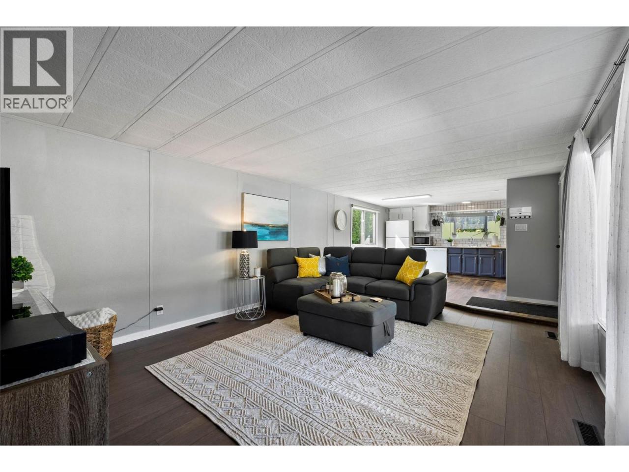 Great floor plan! Spacious over 900 sq.ft. home featuring an open-concept layout with a bright kitchen. Generous living room is perfect for everyday living and entertaining. This well-designed home offers 2 bedrooms and a large, functional bathroom with great overall flow. Recent updates include new wide-plank flooring in the living room, hallway, and a primary bedroom. Situated on the largest lot in the park. Enjoy ample parking, a spacious yard, and a raised garden area at the back. Ideally positioned as the first lot with added privacy on one side next to open space. The fully fenced yard is perfect for children or your dogs. Relax year-round on the large, covered sundeck - rain or shine! This is a fantastic opportunity & must see! Measurements to be verified by buyer. (id:6769)