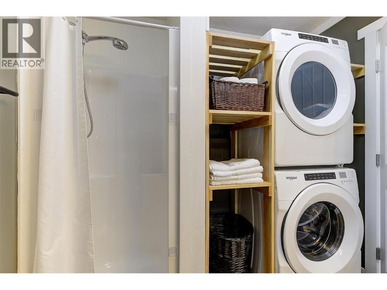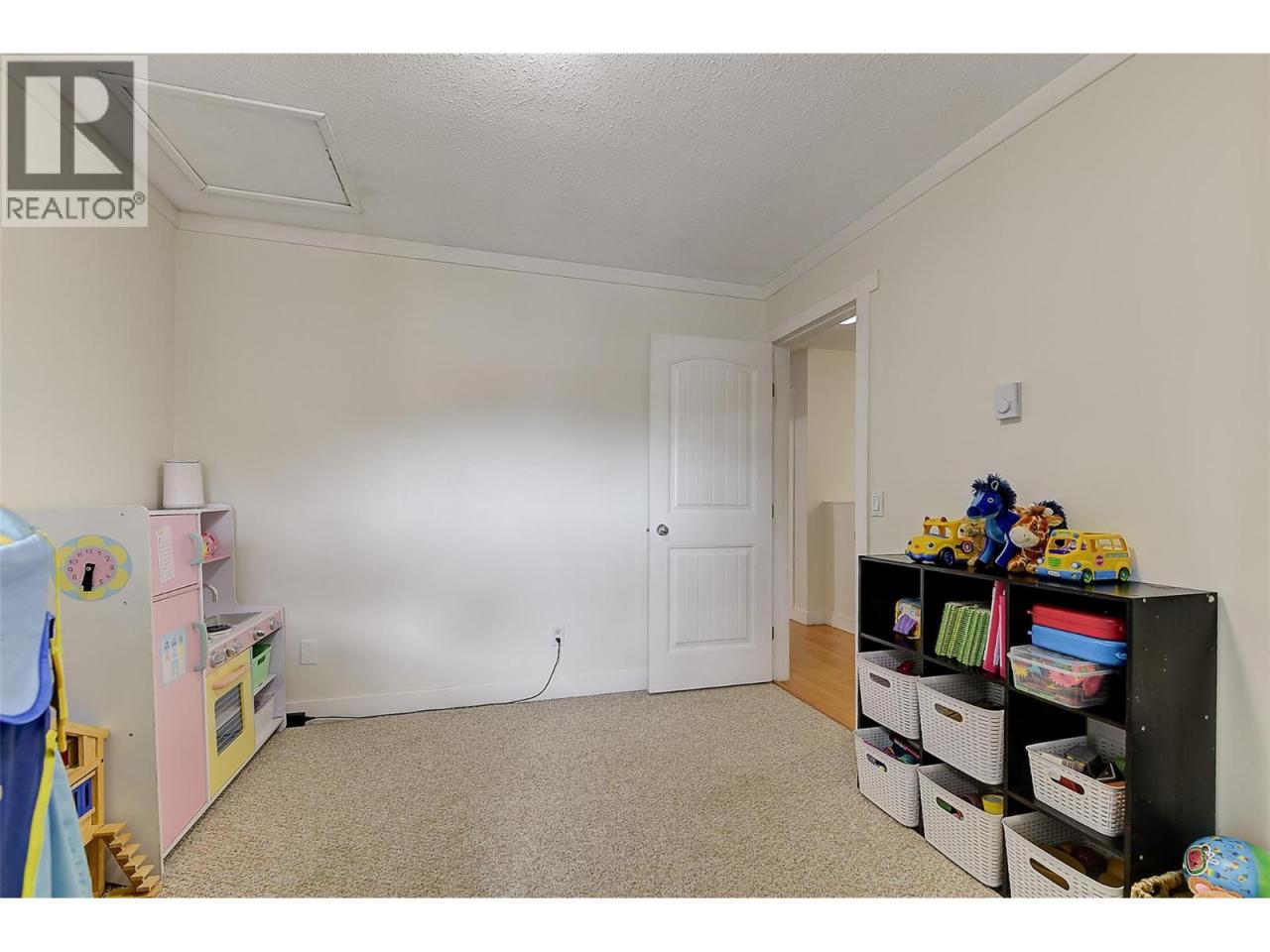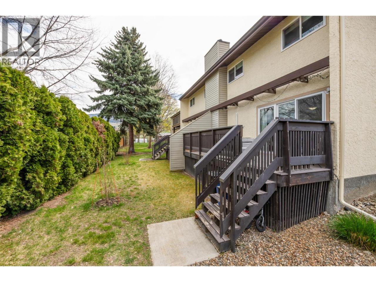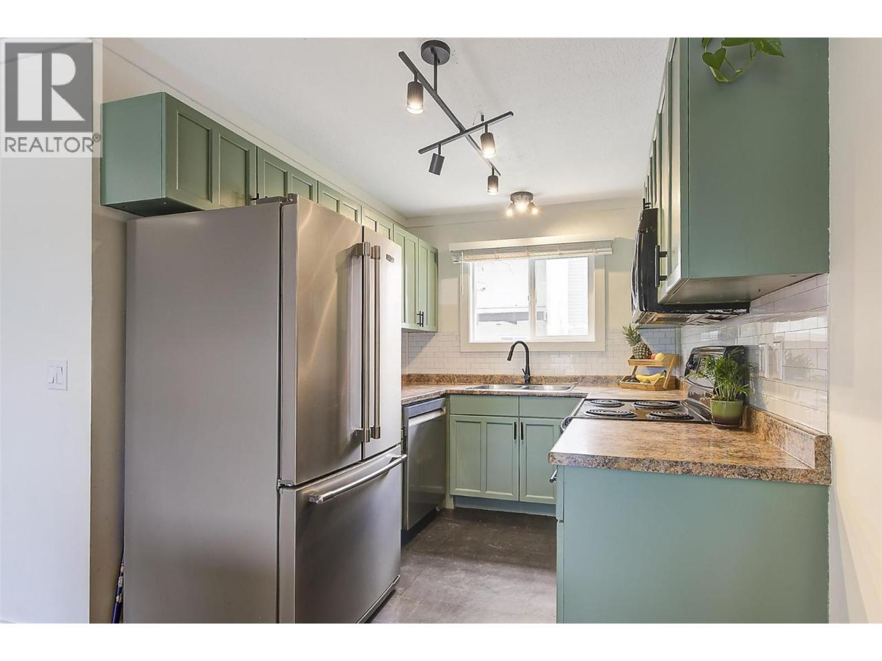 UPDATED 4 BED FAMILY TOWNHOME in Desireable Rosewood Estates - walking distance to schools, shopping, YMCA Pool, soccer fields and transit! Bright & updated with vinyl and laminate floors, newer windows, fresh warm paint and more! Front fenced courtyard greets you with room for bikes and small play. As you walk in the door, the ingenious opened closet area let's you know this home is special! Open spacious living-dining room area is tastefully updated with neutral warm white decor, a feature corner brick fireplace with electric insert, classy updated low maintenance vinyl plank floors, and wide glass sliding doors leading to a big private deck for BBQ, lounging and play! Painted shaker kitchen is sooo cute, with a sunshiney south facing window and white subway tile backsplash, full set of appliances...it has all you need. Generous sized & convenient main floor laundry room combined with a 3 piece bathroom with lovely white cabinets with tons of storage, bullnose counters, and wide mirror. 3 Big carpeted bedrooms up with huge primary bedroom, plus a 4th bedroom down(armoire)- great for young and growing family! Good sized 4 piece main bathroom up is beautifully modernized. Massive Family Room features laminate floors, & 2 shiplap feature walls - tons of space for entertaining and play. Big storage room area for all your extra stuff too! 2022 hot water tank. 1 Yr old Ductless split heat/cooling added. End unit is convenient to covered parking. Just move in and enjoy! (id:6769)