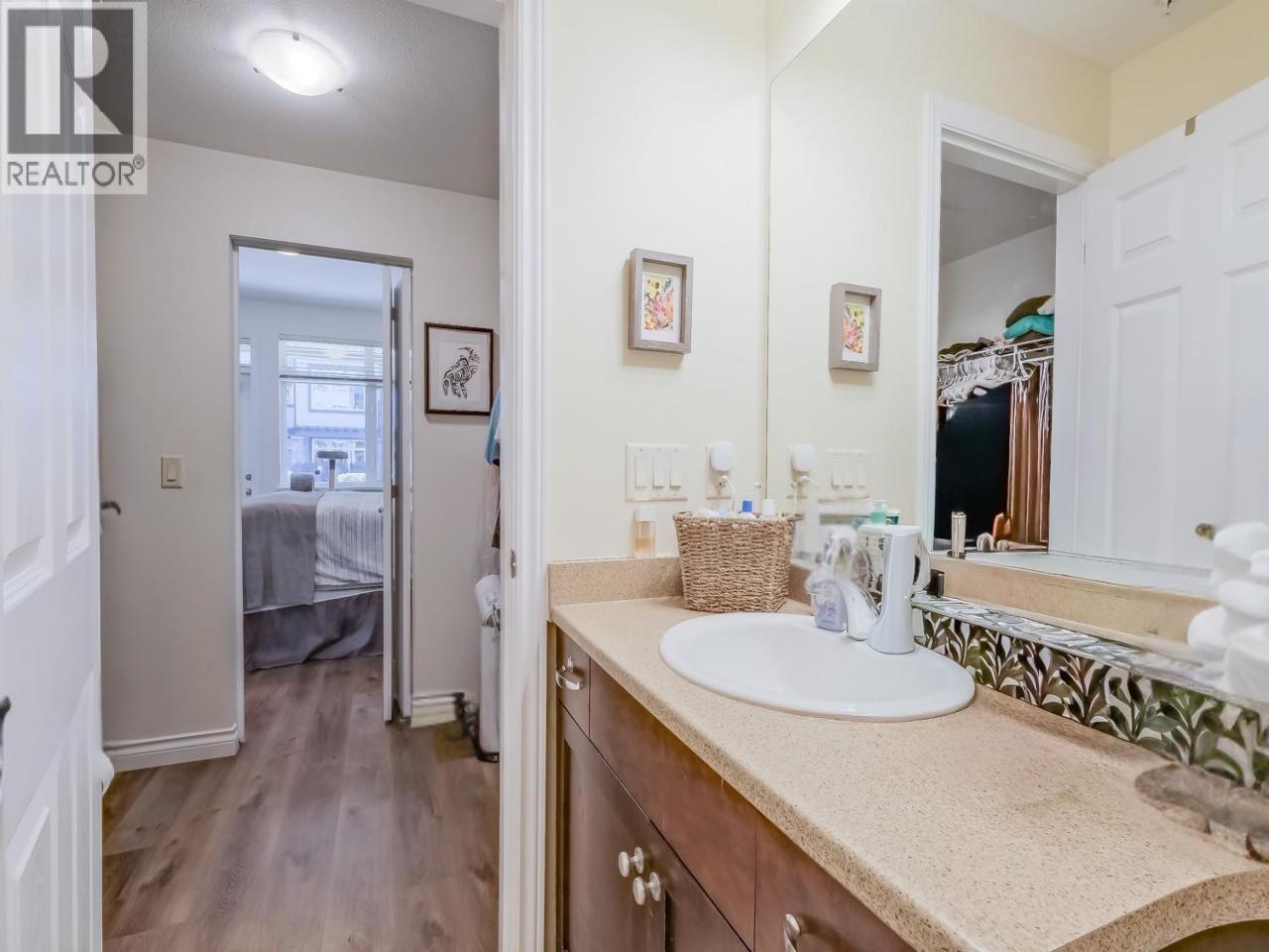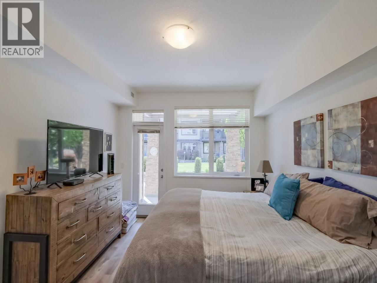 Sought after and hard to find in this popular complex, a 2 bed, 2 bath corner unit with lake views. This bright home features floor to ceiling windows and two large patios. One with a lake view. The two patios are ideal for entertaining, relaxing, gardening, or barbecues. Located at the end of the complex, the home offers excellent privacy while still being just steps from the outdoor pool, hot tub and games room Inside the home you’ll find newer appliances, laminate flooring throughout, and a large primary bedroom with a walk-in closet and access to the patio. The second bedroom also enjoys lake views, making it a great guest room or workspace. Walk to shopping, restaurants, and more. Pets are welcome, adding to the flexibility and convenience of this well-located home. (id:6769)