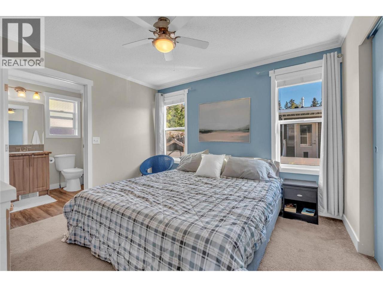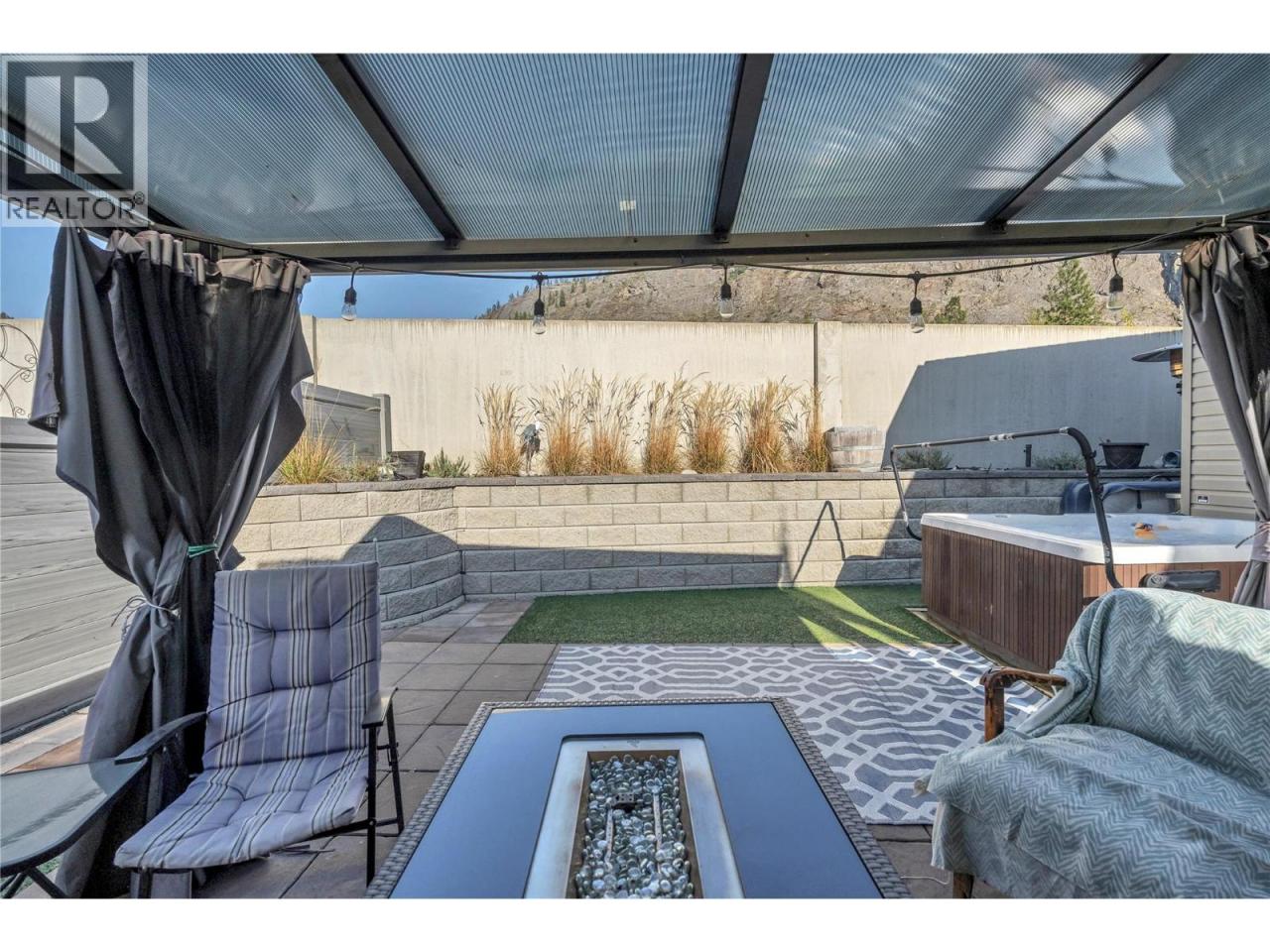 Visit REALTOR website for additional information. Bare land strata in Deer Park Estates, one of Oliver's most established 55+ communities, minutes from Gallagher Lake, the Okanagan River Trail, and the District Wine Village. Built in 2019, this 1,152 sq ft double-wide stands out as one of the few homes in the community with a private hot tub and a fully finished outdoor living space already in place. The layout is designed for both privacy and function — the primary suite sits at the rear with a custom glass ensuite shower, while two additional bedrooms are positioned at the front. The main living area is open and centred around a large island kitchen with solid wood soft-close cabinetry, gas range, pendant lighting, and wine cooler, built for everyday use not just appearance. Gas heating, central A/C, on-demand hot water, and an asphalt shingle roof provide year-round comfort and efficiency. Outside, the space is already complete — a private hot tub, 10x12 gazebo with weatherproof sliding panels, premium artificial grass, vinyl fencing, Rain Bird irrigation, gas BBQ hookup, front patio deck, new composite stairs, 8x12 shed, and additional storage all in place. Monthly strata of $55 covers roads, clubhouse, and street lighting. Rentals permitted with strata approval. Pets welcome with restrictions. For buyers comparing 55+ homes in Oliver, this is one of the few move-in-ready options where the lifestyle is already built in. (id:6769)