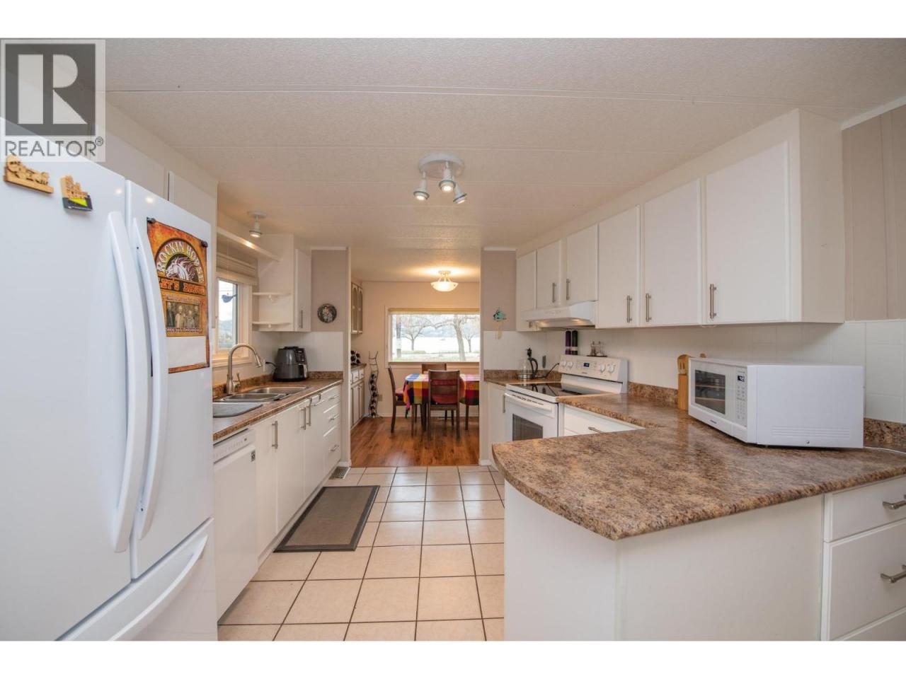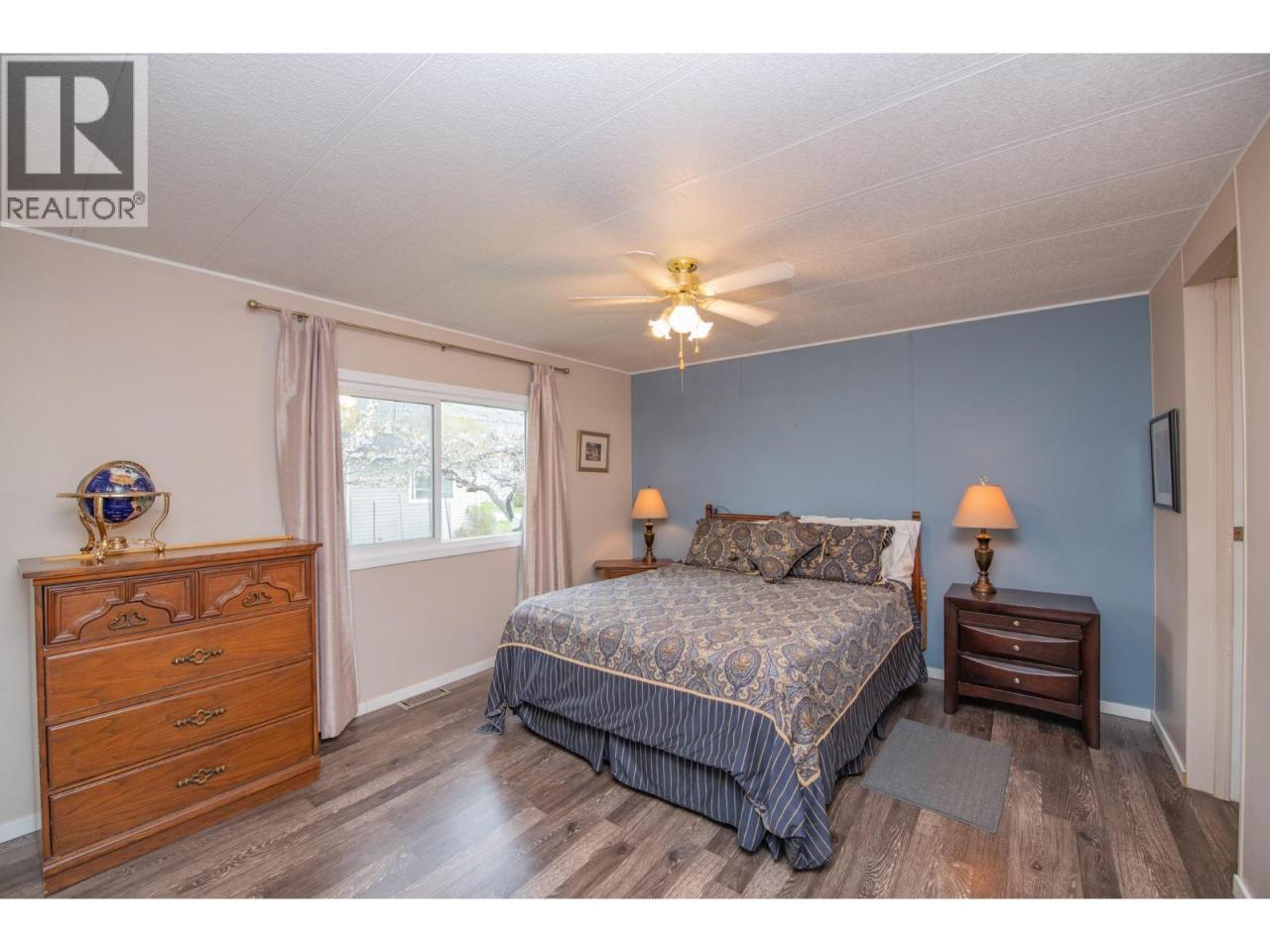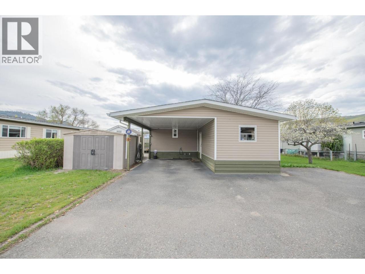Wake up every morning to a million dollar view, without the million dollar price tag. Perfectly positioned in the 55+ community of Holiday Park, Unit 48 sits directly across from Kin Beach, Lakeshore Park, and the sparkling waters of Okanagan Lake. This is a location that truly delivers on lifestyle, morning walks along the beach, afternoons in the park, and evenings spent soaking in the view. Proudly owned and lovingly maintained for the past 25 years, this 3 bedroom, 2 bathroom home offers a bright, open concept layout with large windows that capture the lake from your main living space. Easy care laminate flooring flows throughout, while the spacious kitchen provides plenty of cabinetry and prep space. The primary bedroom comfortably fits a king-sized bed and features a convenient ensuite. A heat pump ensures efficient heating and cooling year round, and a built-in water softener ensures good water quality. Step outside to enjoy two covered decks, including a private sitting area perfect for relaxing, along with a 10x20 attached workshop that offers excellent space for hobbies or storage, plus two additional sheds. The yard is both functional and charming, highlighted by a unique cherry tree producing four varieties of cherries, along with plum and apricot trees. For pet lovers, the park allows up to two pets with approval, including dogs up to 20 inches at the shoulder.This is your chance to enjoy lakeside living in one of Vernon’s most desirable areas without compromise. (id:6769)