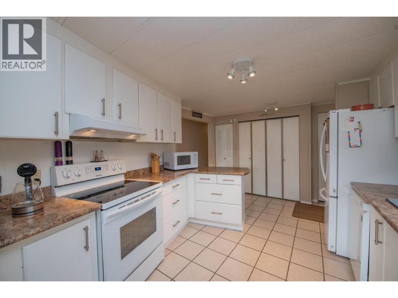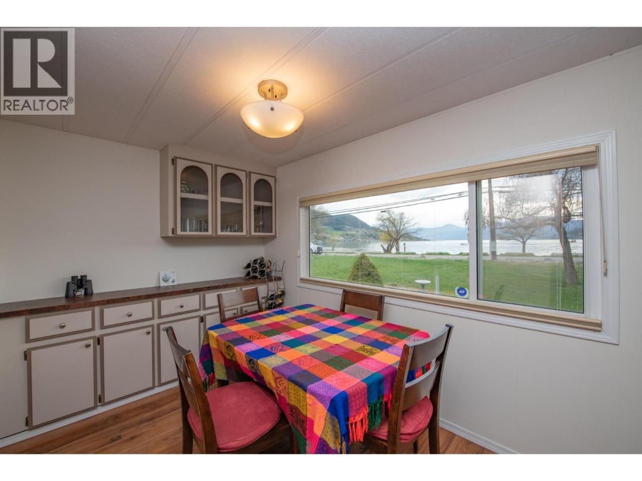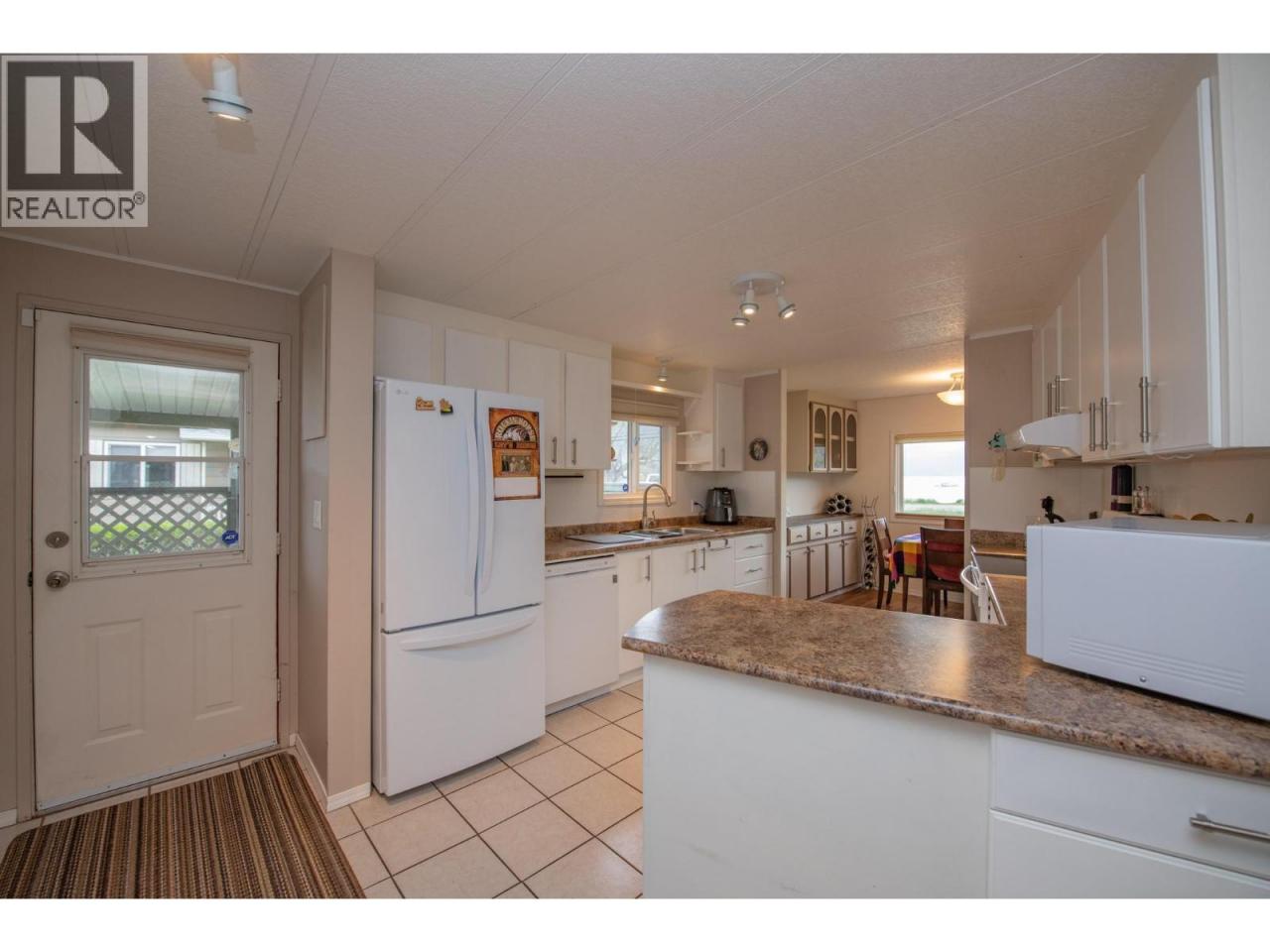 Wake up every morning to a million dollar view, without the million dollar price tag. Perfectly positioned in the 55+ community of Holiday Park, Unit 48 sits directly across from Kin Beach, Lakeshore Park, and the sparkling waters of Okanagan Lake. This is a location that truly delivers on lifestyle, morning walks along the beach, afternoons in the park, and evenings spent soaking in the view. Proudly owned and lovingly maintained for the past 25 years, this 3 bedroom, 2 bathroom home offers a bright, open concept layout with large windows that capture the lake from your main living space. Easy care laminate flooring flows throughout, while the spacious kitchen provides plenty of cabinetry and prep space. The primary bedroom comfortably fits a king-sized bed and features a convenient ensuite. A heat pump ensures efficient heating and cooling year round, and a built-in water softener ensures good water quality. Step outside to enjoy two covered decks, including a private sitting area perfect for relaxing, along with a 10x20 attached workshop that offers excellent space for hobbies or storage, plus two additional sheds. The yard is both functional and charming, highlighted by a unique cherry tree producing four varieties of cherries, along with plum and apricot trees. For pet lovers, the park allows up to two pets with approval, including dogs up to 20 inches at the shoulder.This is your chance to enjoy lakeside living in one of Vernon’s most desirable areas without compromise. (id:6769)
