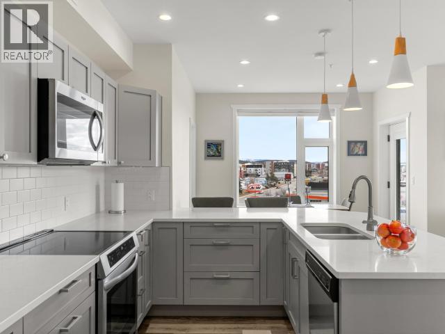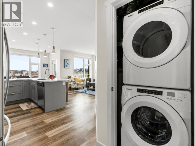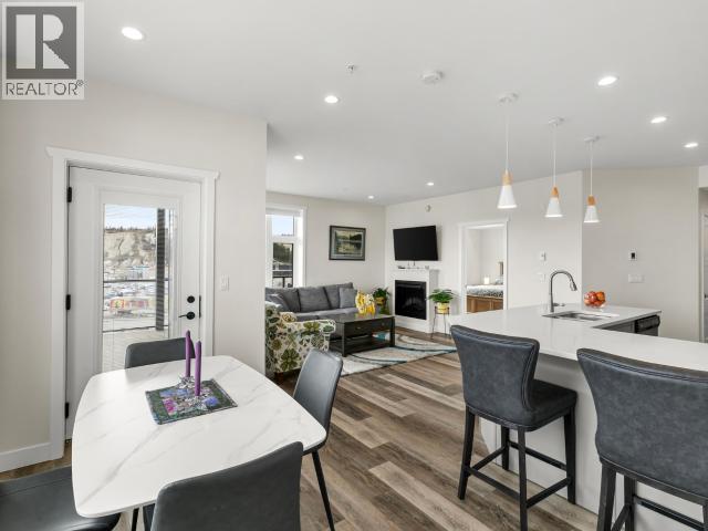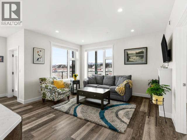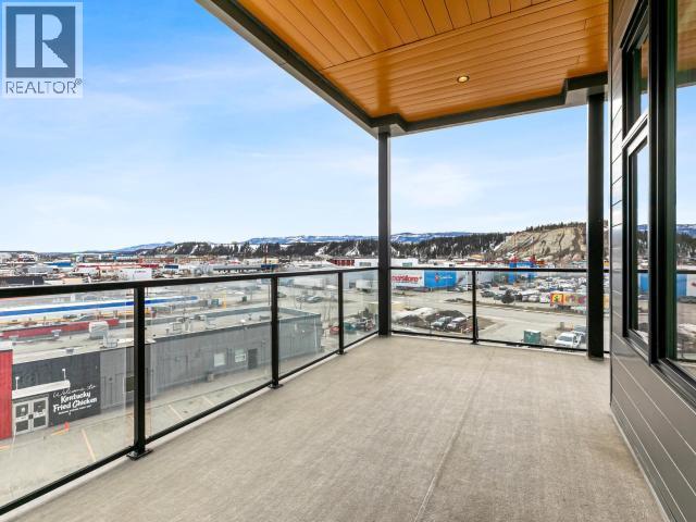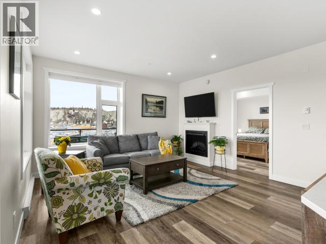Enjoy the convenience of living in the heart of downtown Whitehorse in this 879 sq foot luxury condo. This south facing unit has 2 bedrooms, 1 3/4 baths. Kitchen is the hub of unit with quart counters, island with eating bar, and lots of counter space. Spacious living area with electric fireplace. Master bedroom with ensuite, second bedroom tucked off dining with river glimpses. 9 ft ceilings, custom blinds, and great natural light. Expansive 246 sq ft deck corner deck with views of clay cliffs and Shipyards park and Yukon River. This unit boasts secure heated underground parking space and designated storage. Quick possession is possible. (id:6769)