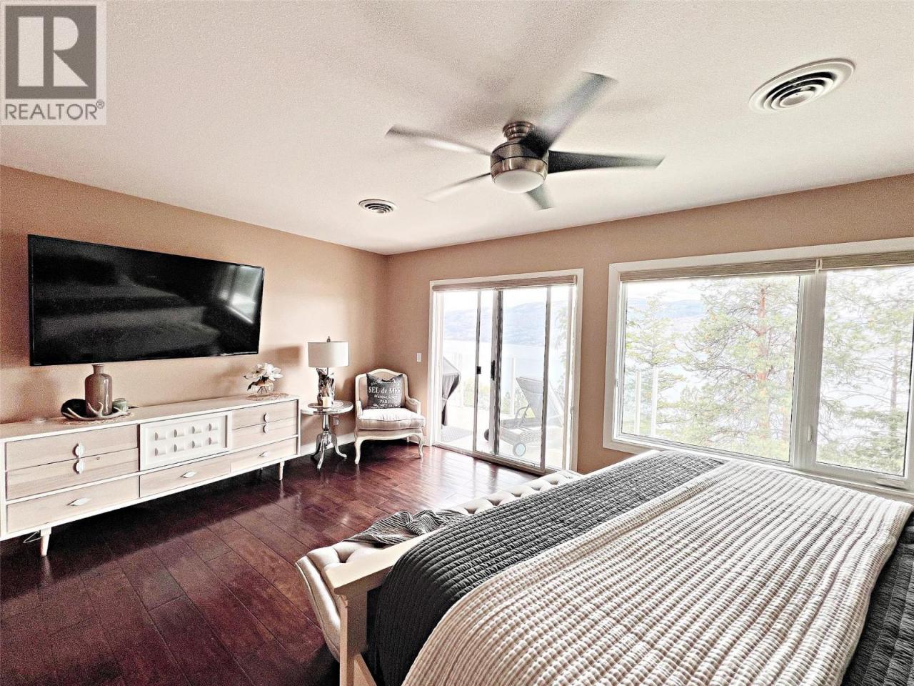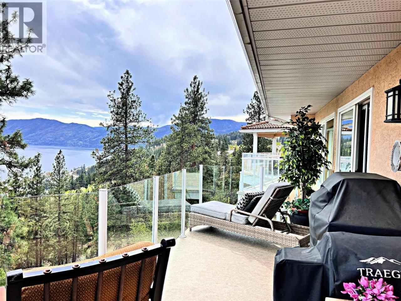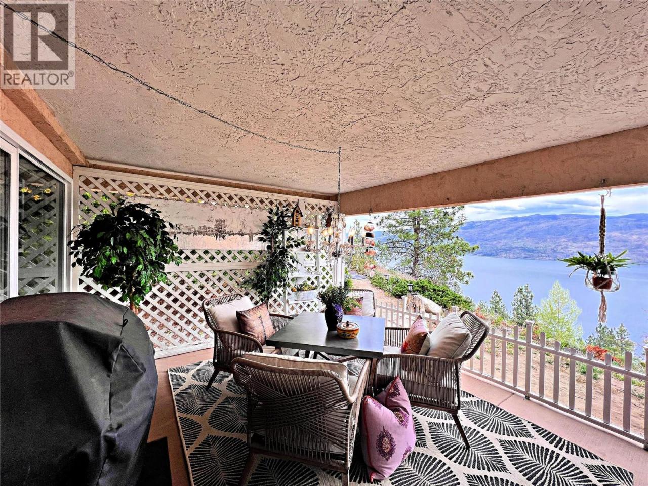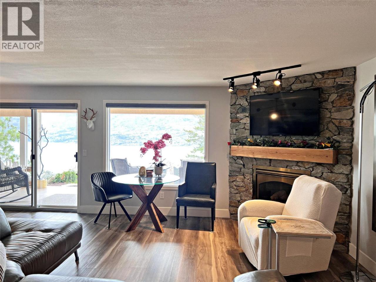 This exceptional walk-out rancher townhome in Peachland, has breathtaking 180-degree views of Okanagan Lake set the stage for a truly remarkable lifestyle. Offering close to 3,200 square feet of beautifully designed living space across two levels, this 3-bedroom, 3-bathroom home seamlessly blends luxury, comfort, and effortless living. The main floor features a bright, open-concept layout ideal for both everyday living and entertaining. A stunning chef-inspired kitchen with granite countertops, modern appliances, and an expansive dining area overlooks the lake, creating an unforgettable backdrop. Two inviting living rooms, each with a cozy gas fireplace, provide flexibility and warmth. The primary suite on the main level is a private retreat, complete with a spa-like ensuite and a spacious walk-in closet. Thoughtfully designed with upscale finishes throughout, this home showcases hardwood flooring, skylights, designer blinds, and quality craftsmanship at every turn. The lower level is equally impressive, featuring a spacious family room with summer kitchen, two bedrooms —perfect for guests or extended family. The strata fee covers an extensive list including in-floor hot water heating, gas for the stove, fireplace, and BBQ, water, landscaping, and major exterior components—ensuring true lock-and-leave living. Enjoy a low-maintenance lifestyle without compromising on space, style, or scenery. Experience the best of Peachland living—where every day feels like a getaway. (id:6769)