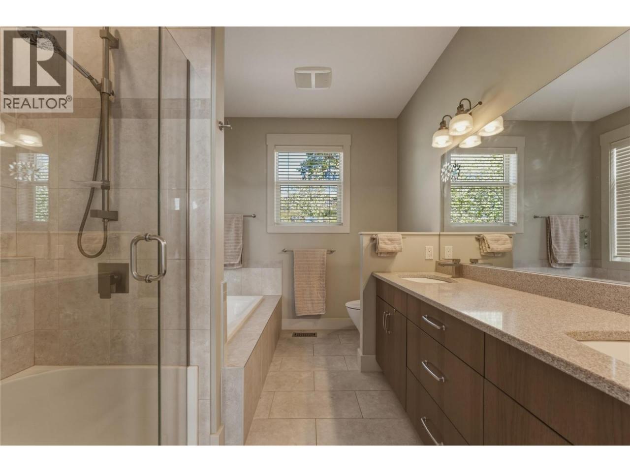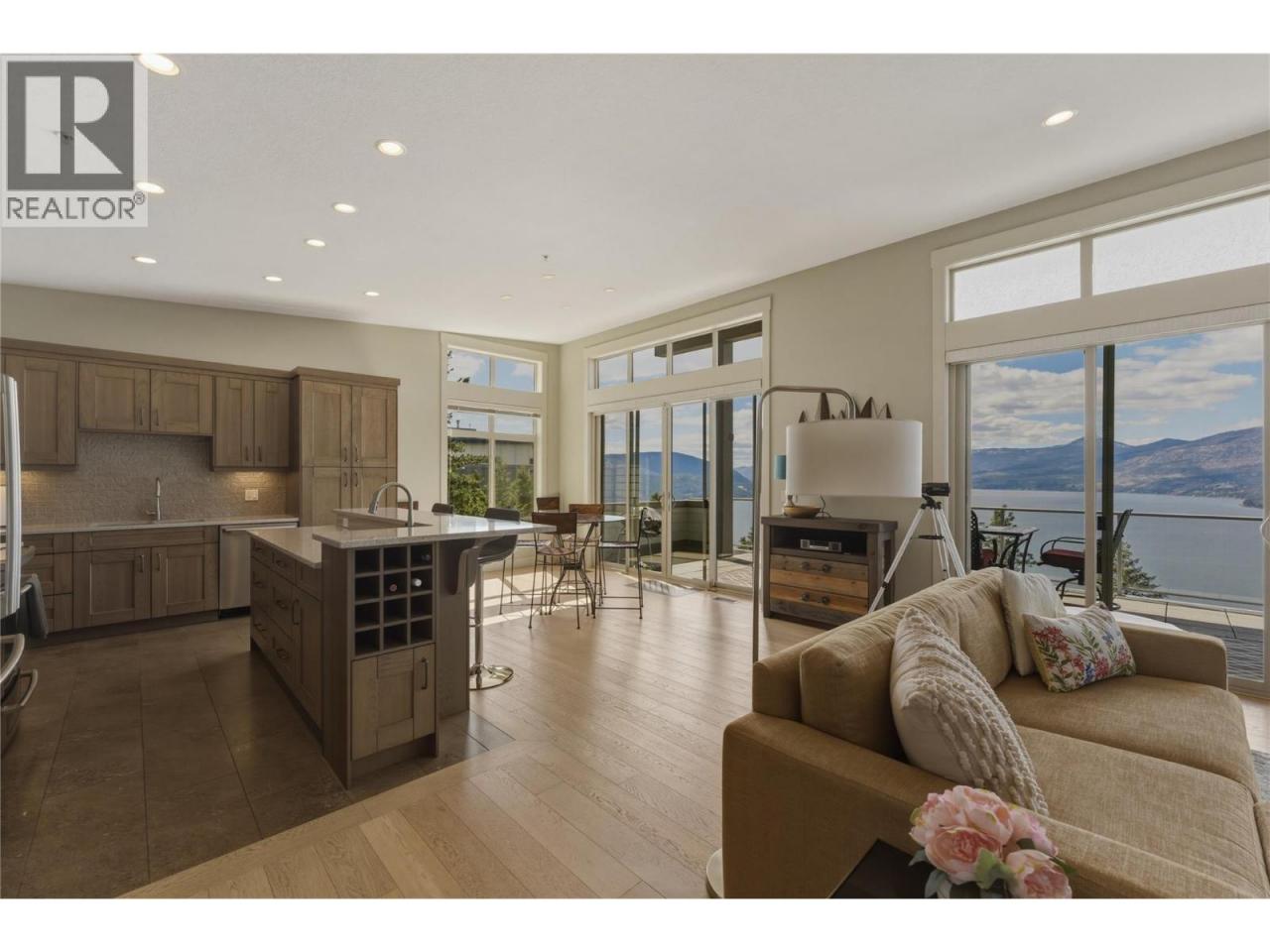 Perched above sweeping panoramic views of Okanagan Lake, this pristine home offers a rare blend of privacy, serenity, and understated elegance. Set on 1.1 acres surrounded by nature, the setting feels peaceful and secluded, yet remains within easy reach of town. The long driveway at the end of a quiet cul de sac gives way to a thoughtfully designed rancher with basement layout, with the primary bedroom and ensuite on the main floor making it ideal for all ages. Inside, you’ll find three generously sized bedrooms, open-concept living spaces, double garage with 2 EV chargers and large patio doors and windows that frame the lake and landscape from nearly every angle. Features include scraped oak and cork flooring, quartz countertops, airjet tub and vaulted ceilings. Whether you’re enjoying quiet mornings on the covered deck (with gas bbq hookup) or hosting family and friends, this home is designed to take full advantage of its breathtaking surroundings. A perfect fit for those seeking space, views, and a connection to nature without sacrificing comfort or style. The upscale neighbourhood and amenities offer walking trails, tennis/pickleball courts, private community beach access, culinary club, crib club, pickleball, community liaison, block watch, Christmas elves, bluebird houses and book club. (id:6769)