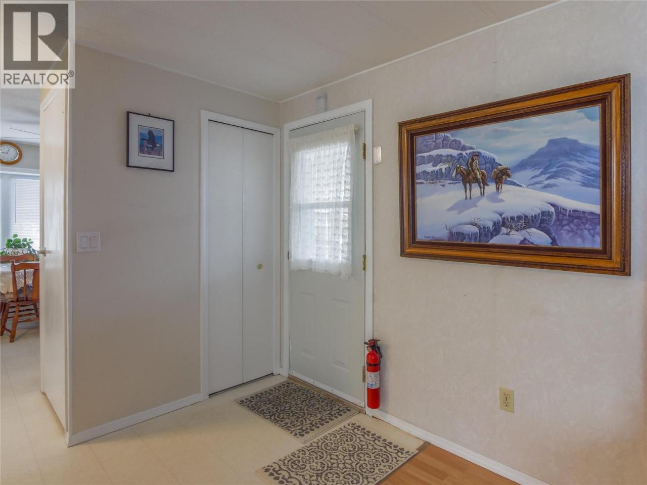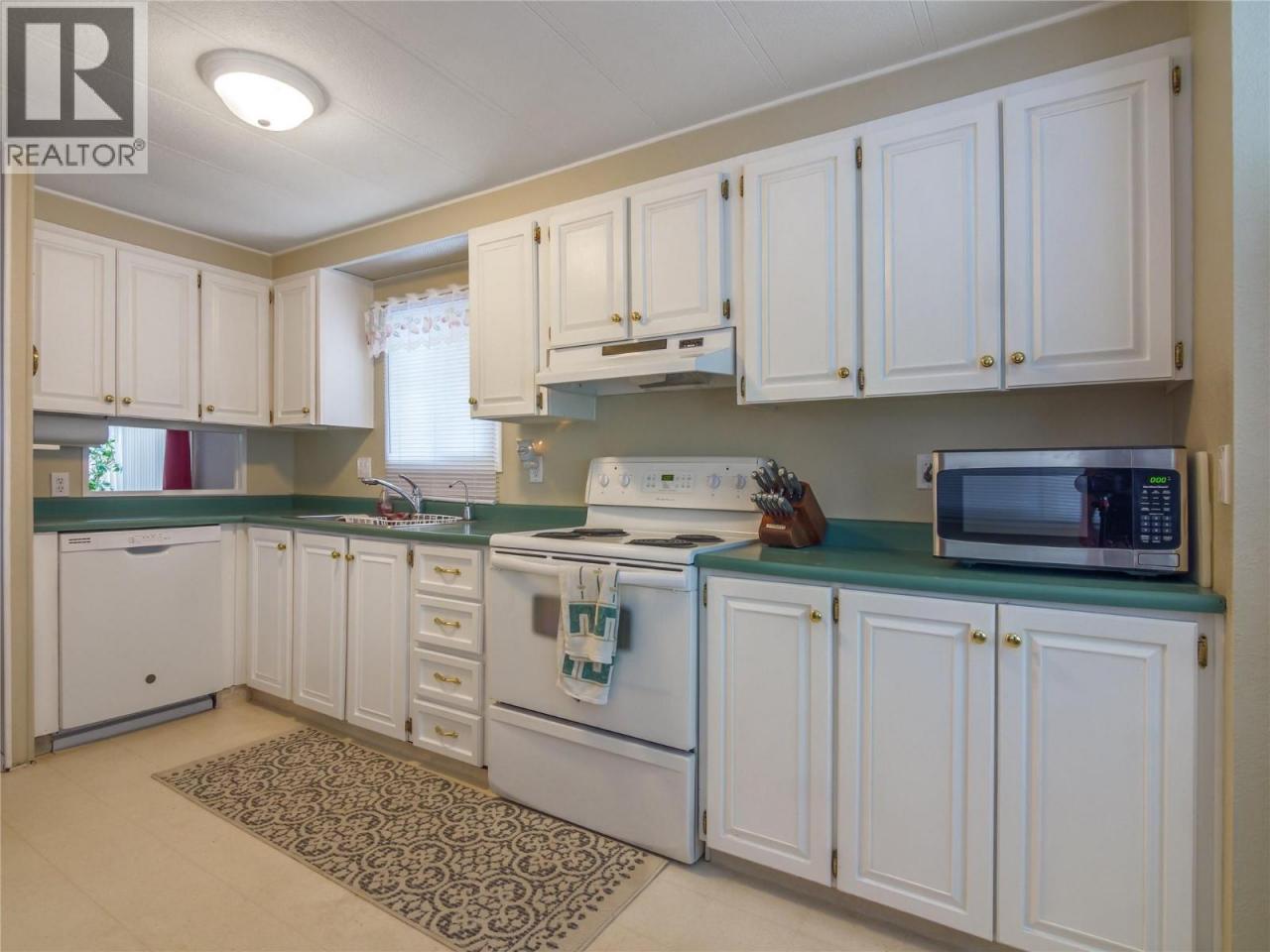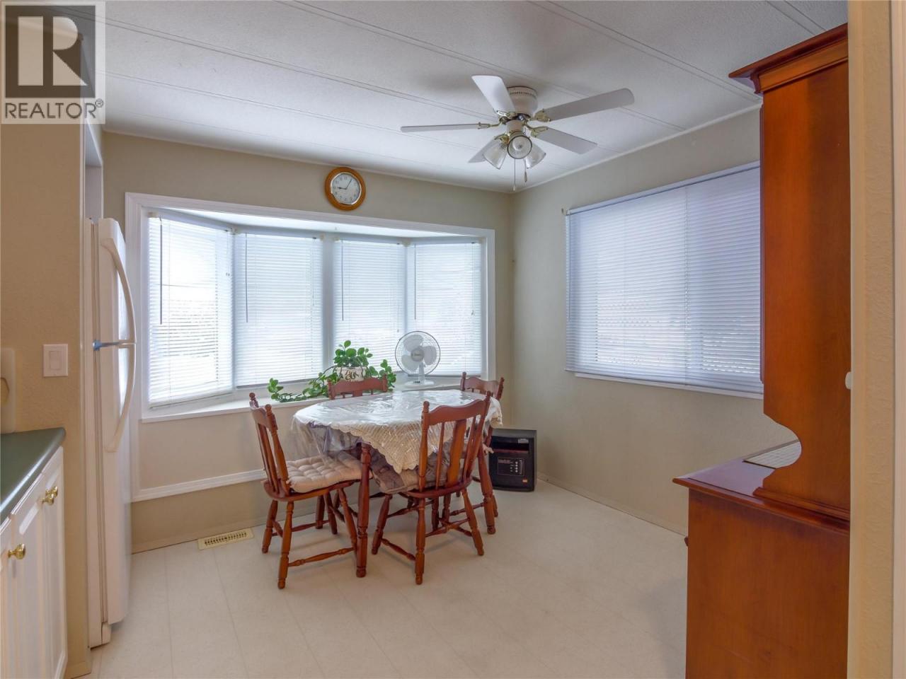 Welcome to Dauphin Mobile Home Park—an inviting 55+ community offering an affordable and peaceful lifestyle. This well-kept 797 sq ft home features 2 bedrooms and 1 bathroom, with a bright white kitchen, cozy eat-in area, and a spacious living room with easy-care laminate flooring—perfect for relaxing or entertaining. The second bedroom works beautifully as a guest room, den, or hobby space, while the primary bedroom offers great closet space and comfort. Enjoy excellent storage throughout, including a generous laundry room. Outdoor living is a highlight, with a private deck off the primary bedroom, a sunny enclosed sunroom, and a welcoming front deck. Ideally located in a flat, walkable area close to shops, amenities, the senior center, and Skaha Lake, this is a fantastic downsizing option for those seeking comfort and convenience. (id:6769)