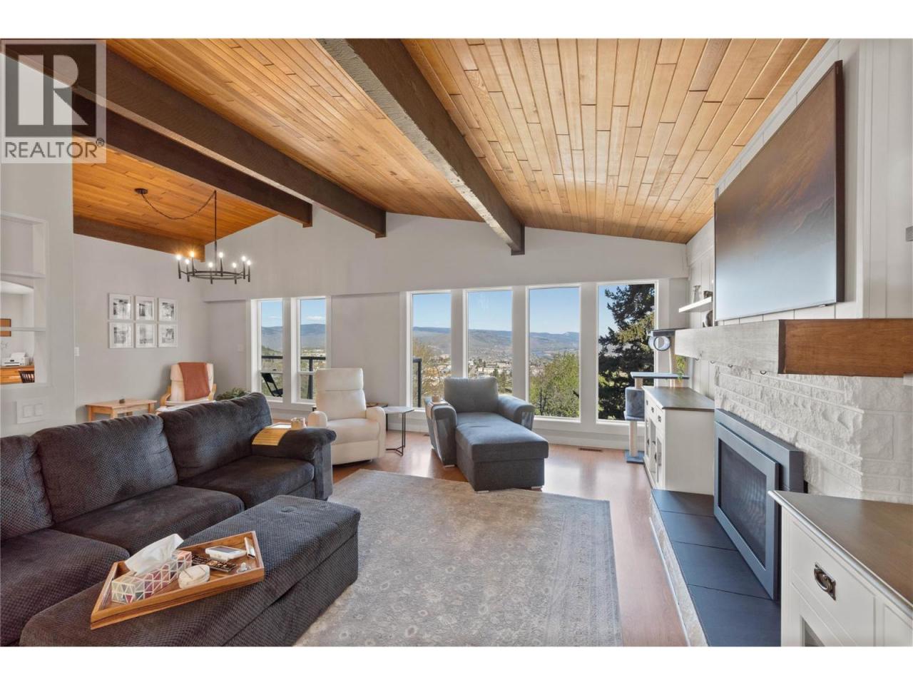 Beautiful views, flexible space and a layout that just works. This 5 bedroom, 3 bathroom Sahali home offers sweeping city views, a bright main floor and a flexible layout. Upstairs, vaulted wood ceilings and large windows create a sense of space and bring in natural light throughout the main living area. The kitchen is both spacious and functional, with a dining area, full height pantry, office nook & access to the front balcony & backyard patio. The primary suite includes a walk in closet & 2pc ensuite, while two additional bedrooms & a full 4pc bath complete the level. The lower floor includes two generous bedrooms, a bright living area & a full kitchen, along with a 4pc bath & separate access through the laundry. Ideal for extended family, guests or a mortgage helper, this level adds flexibility & real value. Outside, the yard is private & fully fenced, with mature landscaping throughout. The large patio offers plenty of room for outdoor dining & entertaining, while enclosed storage & a separate shed keep things organized. The above ground pool sits in its own dedicated space, creating an easy spot to enjoy. A functional yard that works year round. Recent updates to the furnace, heat pump and A/C mean the major components are already in place. While additional features like underground sprinklers and central vac help reduce upkeep & add everyday convenience. Located in one of Sahali’s more desirable pockets, this home brings together views, privacy and practical living. (id:6769)
