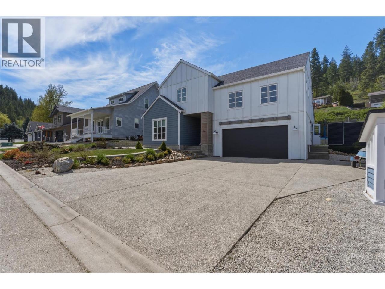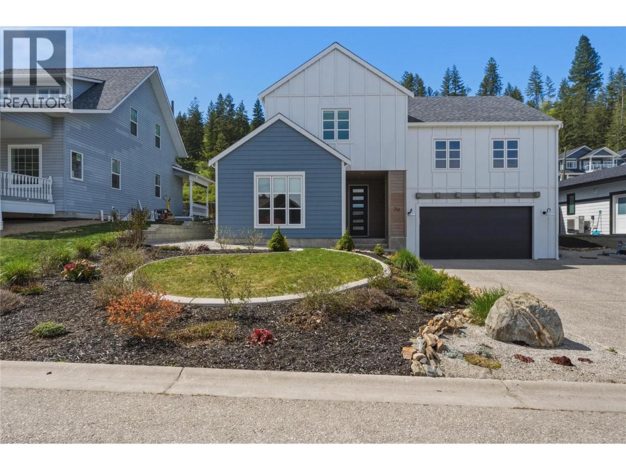 Next to new, modern 3 bed+den/3 bath family home with attached double garage and mortgage helper potential over the garage! This well designed/built home is located in a quiet cul-de-sac in a newer family friendly neighbourhood. The open concept floor plan is designed for main floor living with the primary bedroom and convenient laundry room on this level. The bright kitchen comes with SS appliances and has a large island with quartz countertops. It is roughed in for a dishwasher as well. The dining & living room opens via sliding glass doors onto the covered patio and fully landscaped backyard. The primary bedroom comes with a 4 piece ensuite with double vanity and a large walk-in closet. The den/office is designed for working from home, paying the bills or enjoying a quiet space to read (currently used as a children's bedroom). The half bathroom, laundry/pantry/utility room, mudroom off the double garage and large foyer makeup the remainder of the main floor. Upstairs has 2 large bedrooms and a 4 piece bathroom, great for larger families or guests. The roughed-in bachelor suite above the garage has a separate entrance from the side of the house and offers additional unfinished space of 538 sq ft. This would be a great space for a college student to have some independence or as a 1 bed/1 bath rental suite once complete. The home also comes with professionally installed permanent outdoor lighting for ambience and security. Don't miss out on this terrific Enderby home! (id:6769)